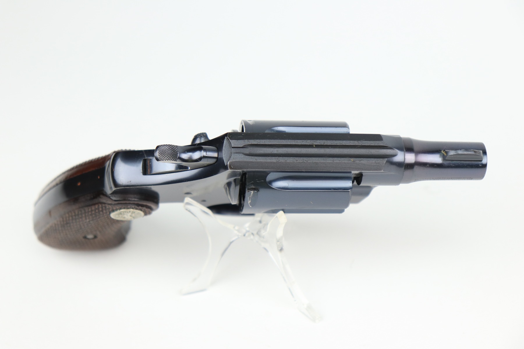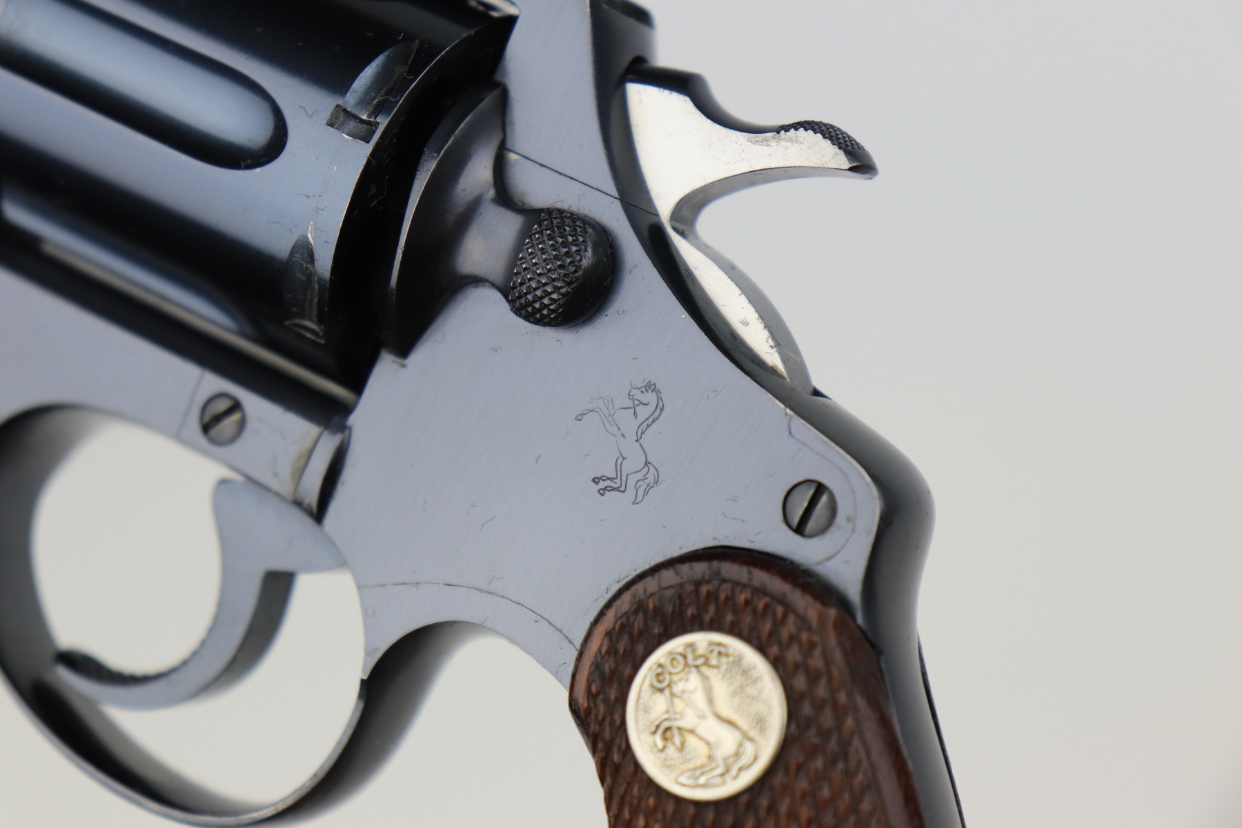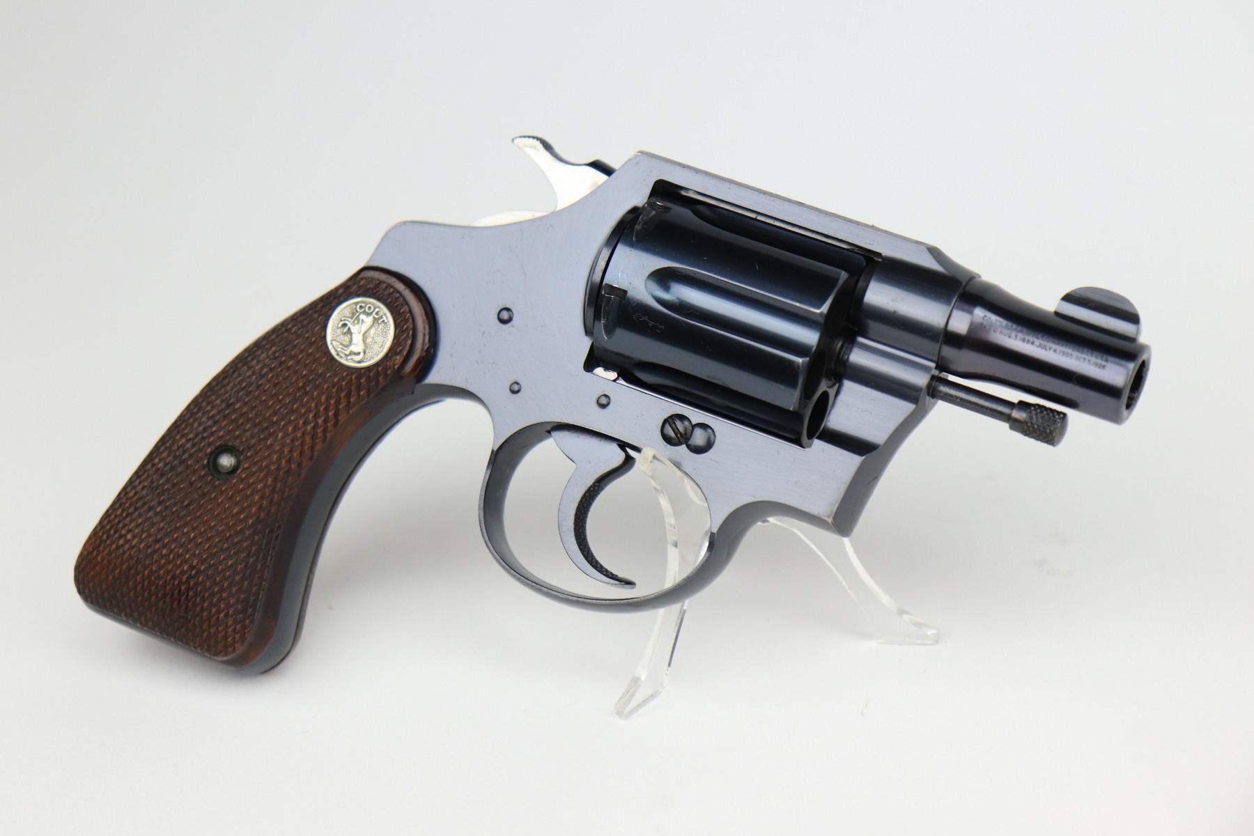 1/11/21 – This is a mint example of a Colt Detective Special revolver, chambered in .38 Special. Manufactured in 1938. 2 inch barrel. The gun is in mint condition with just a hint of a roll mark on the cylinder. The cylinder is tight and the action is smooth. The bore is mint. Comes with minty grips.