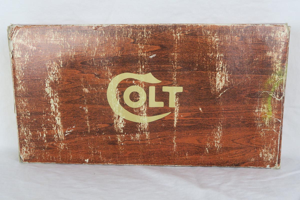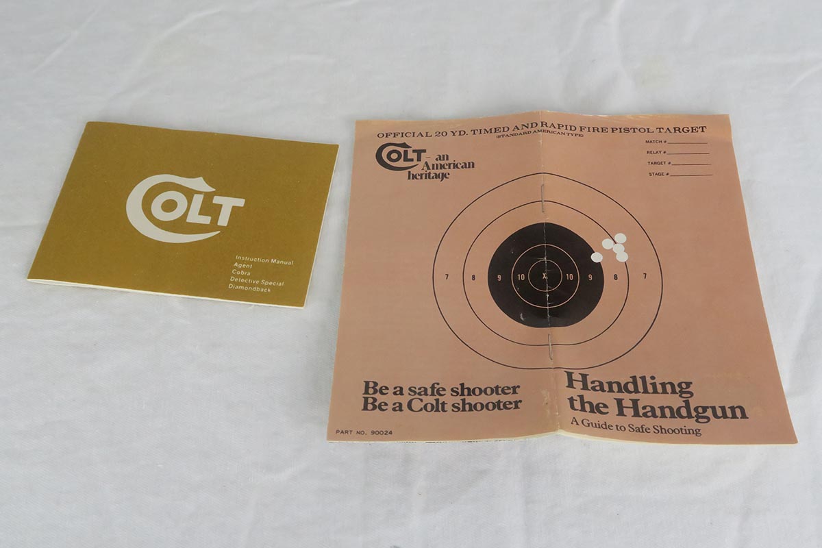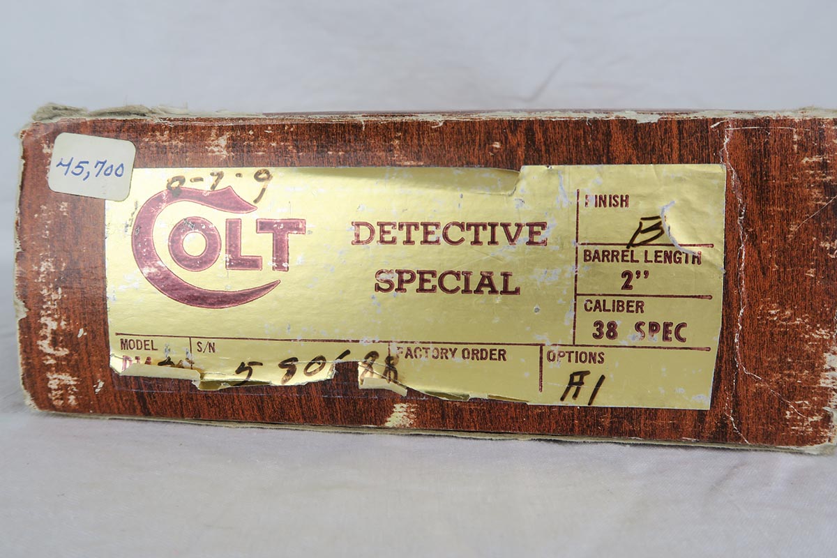 12/6/17 – This is a mint Colt Detective Special in the original matching box. Manufactured in 1978, this revolver has no wear but the grips are not original to the gun (numbered to a different revolver). The original box is included and is numbered to the gun. Comes with a couple small Colt manuals/pamphlets. Mint bore.