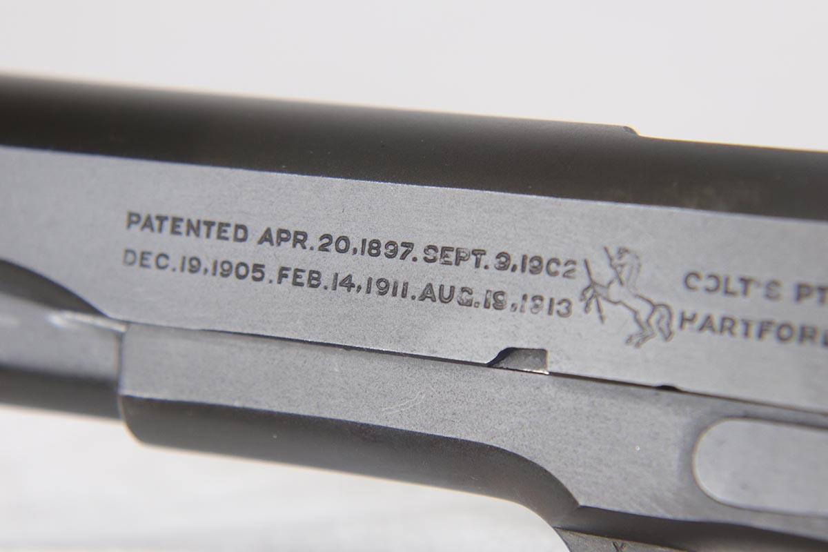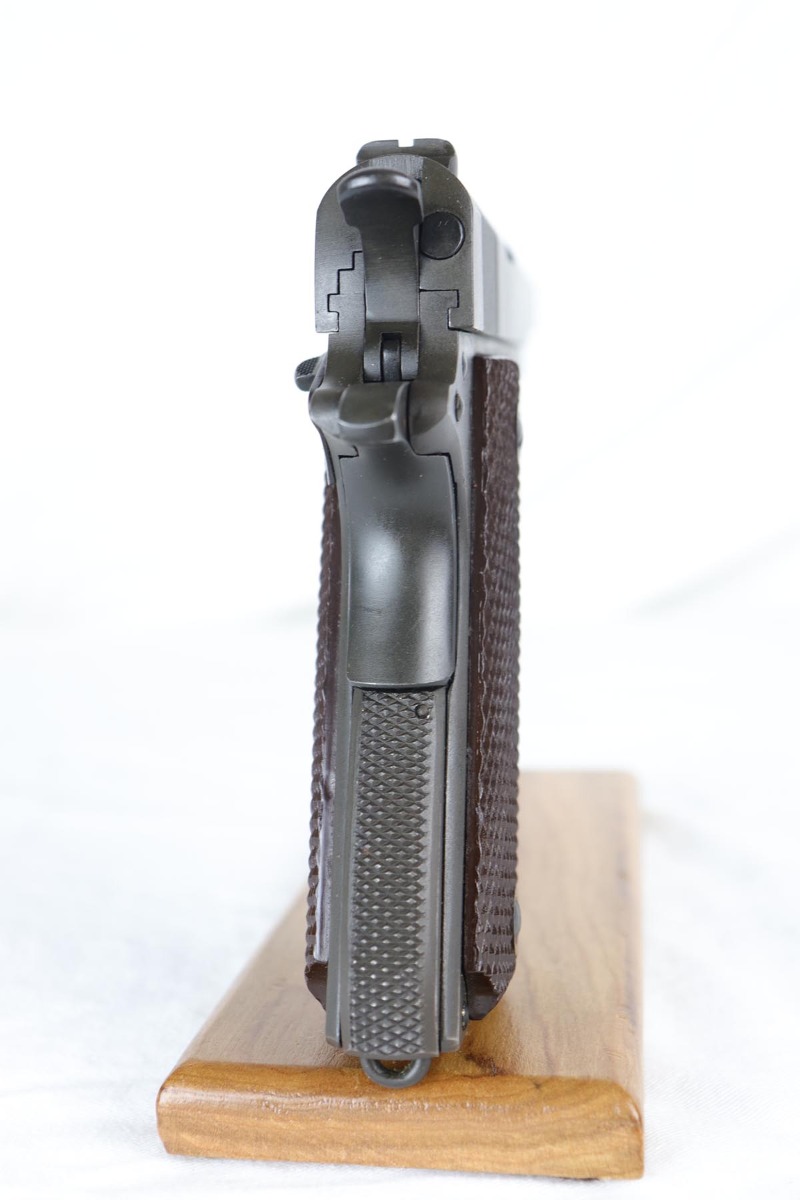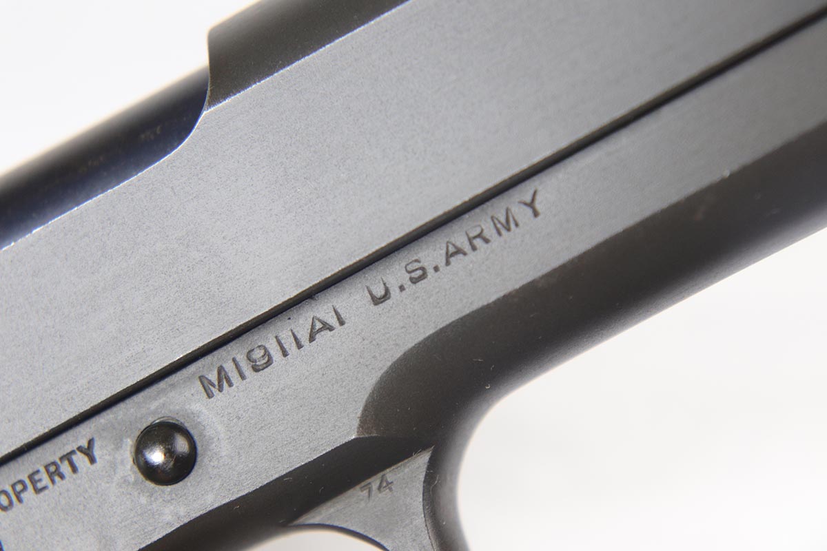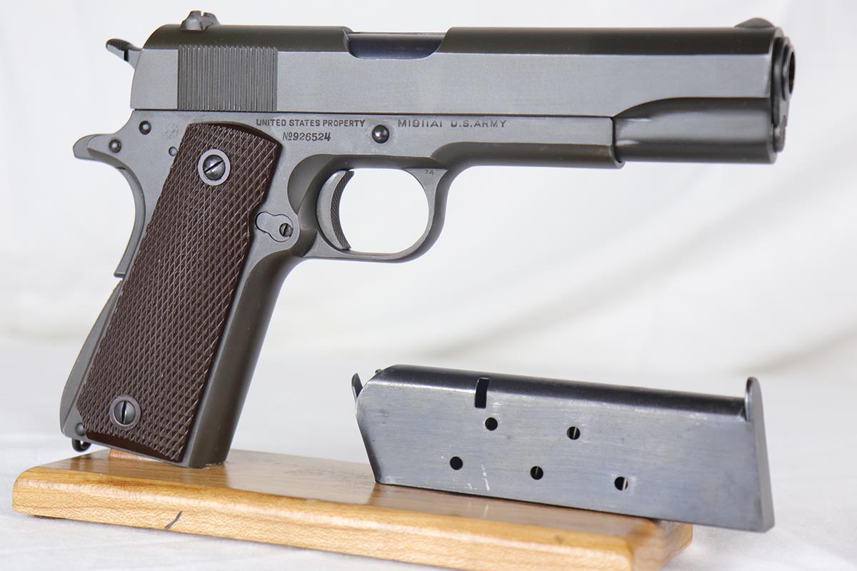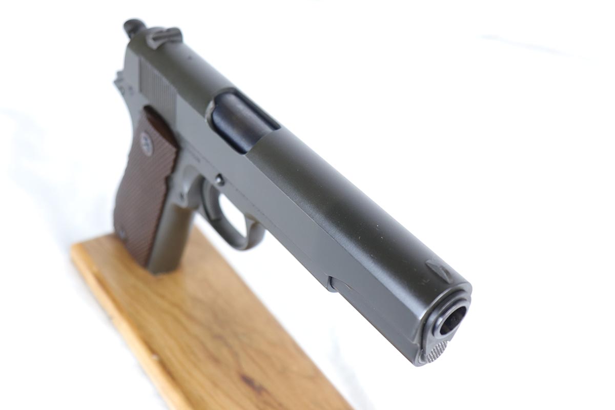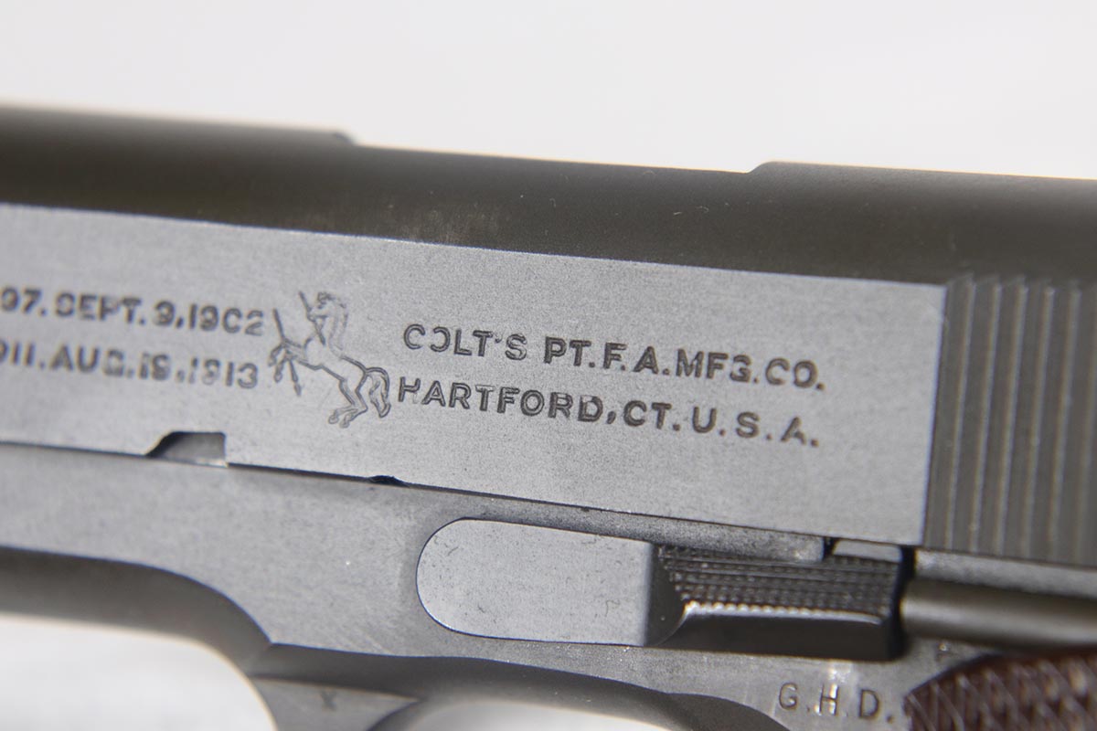 7/19/18 – This is a mint US Army issued Colt M1911A1, manufactured in 1943. It is all original and correct with 99+% original parkerized finish remaining. There is only a spot of wear where the frame meets the slide. Correct inspectors marks and ‘G’ marked Colt barrel. Slide is numbered to the frame. Minty grips and bore.