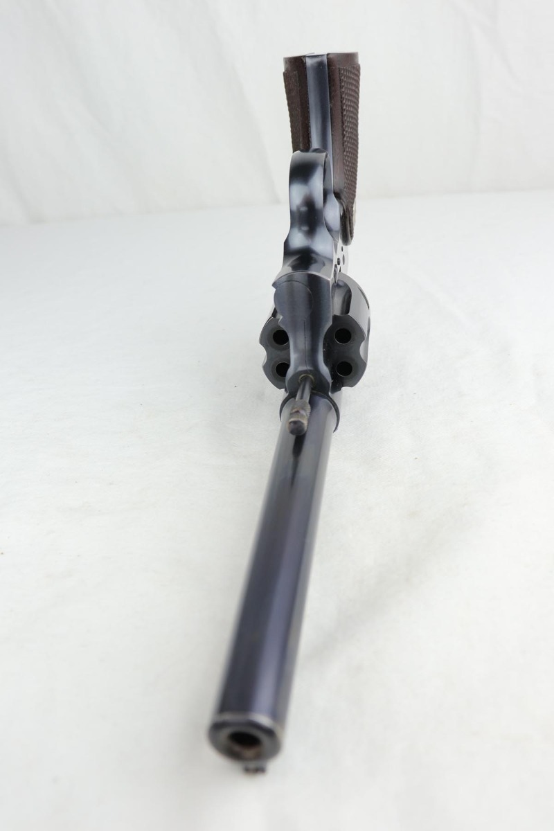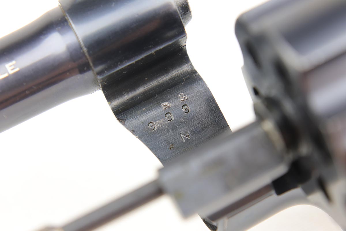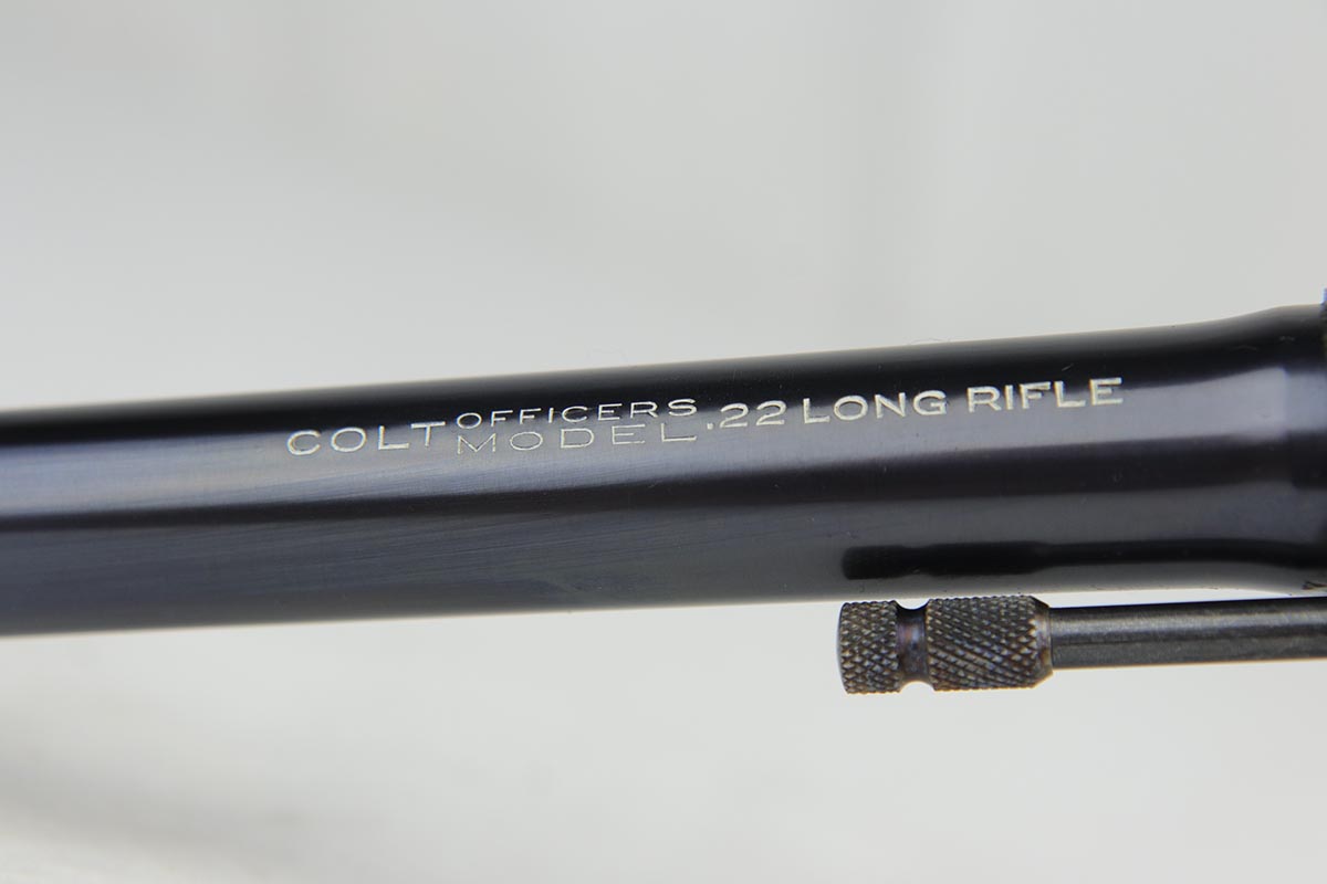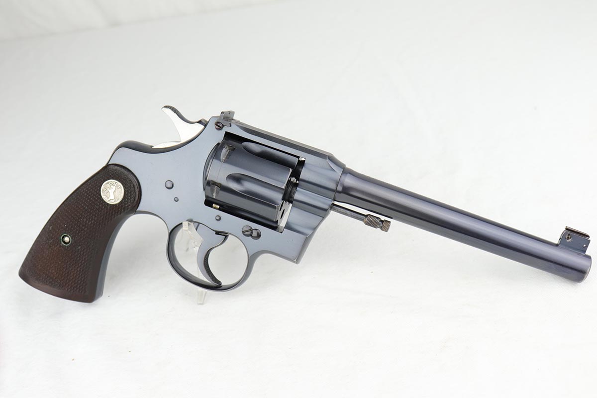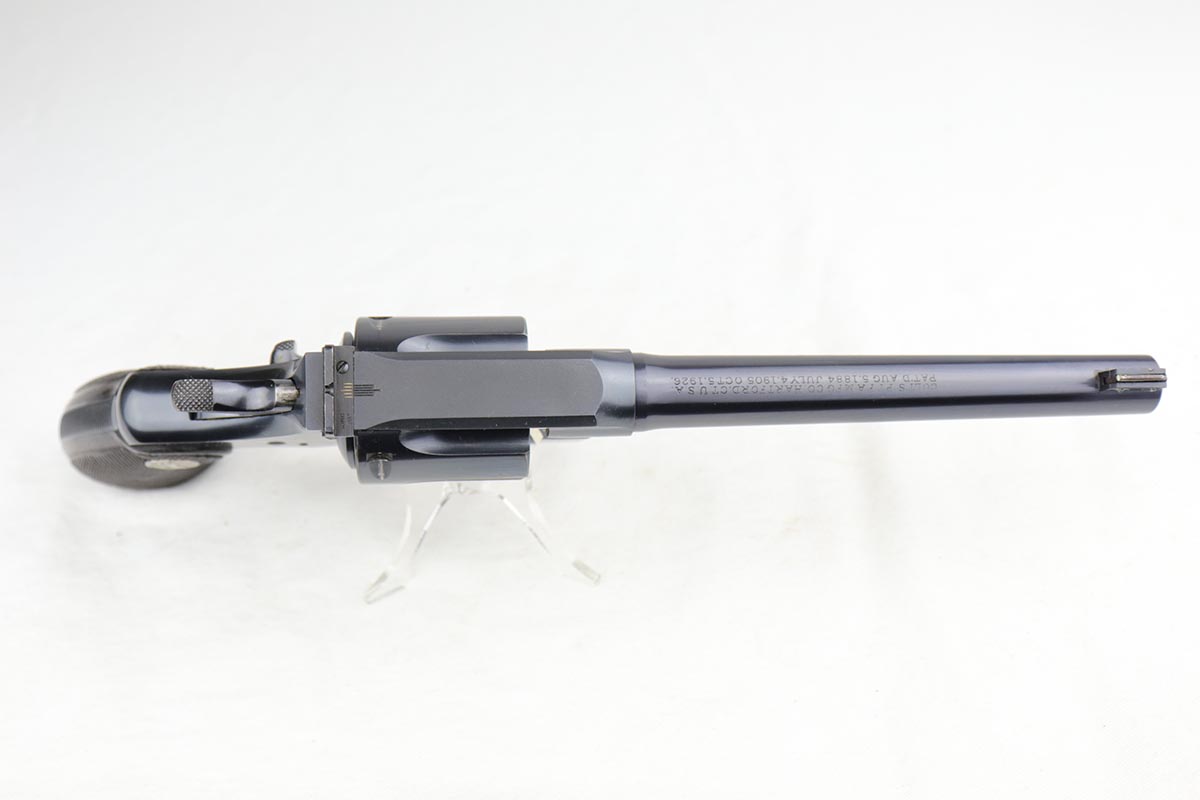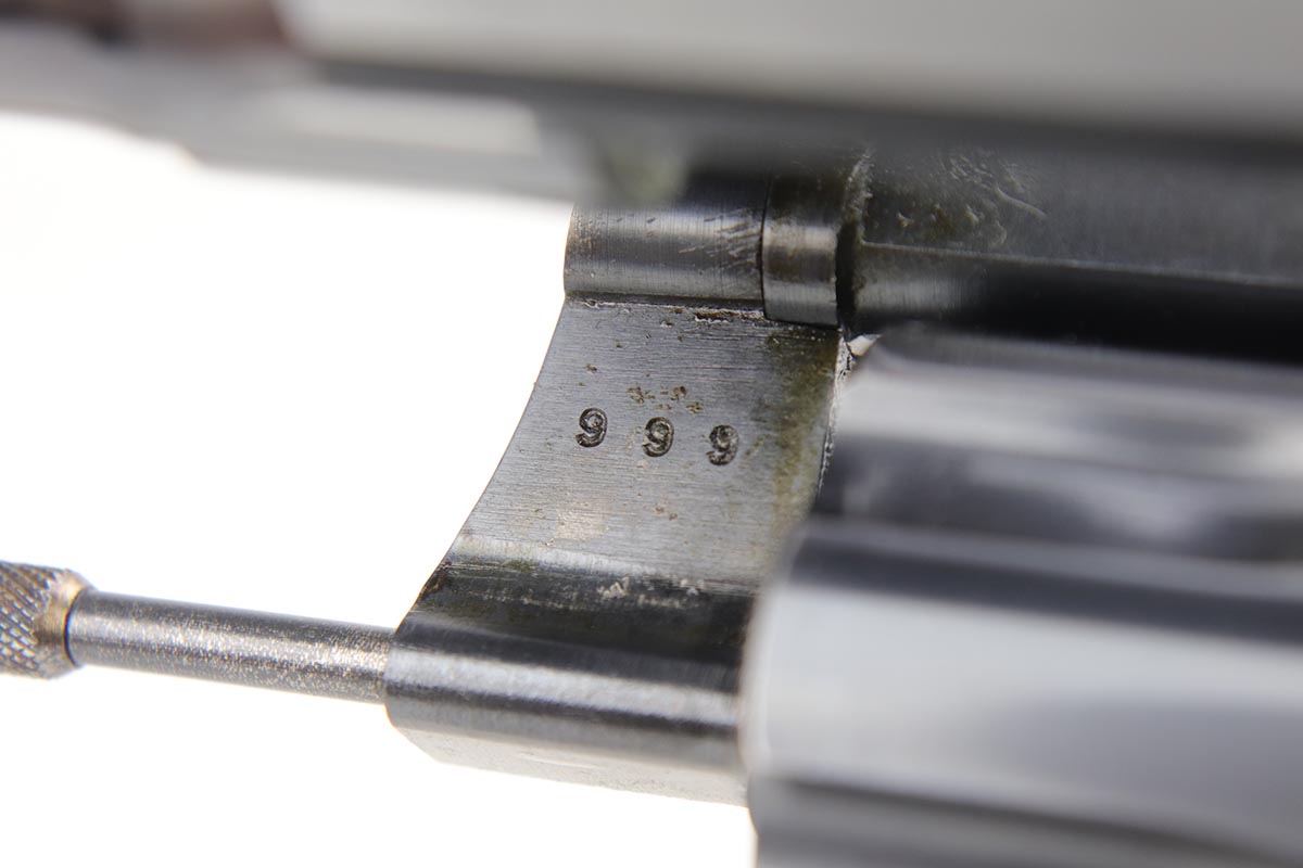 1/8/19 – This is a Colt Officer’s Model Target revolver in .22 LR in mint, original condition. Production of the Target Model began in 1930, and this gun is the 999th ever made. The gun shows only minor handling wear and has a mint bore. Fantastic grips, too. It has the name ‘EDW. R. ZALINSKI’ inscribed on the frame. There are a couple noted Zalinski’s from the time period, but we have no documentation or proof as to which one this belonged to.