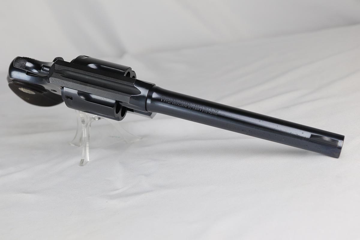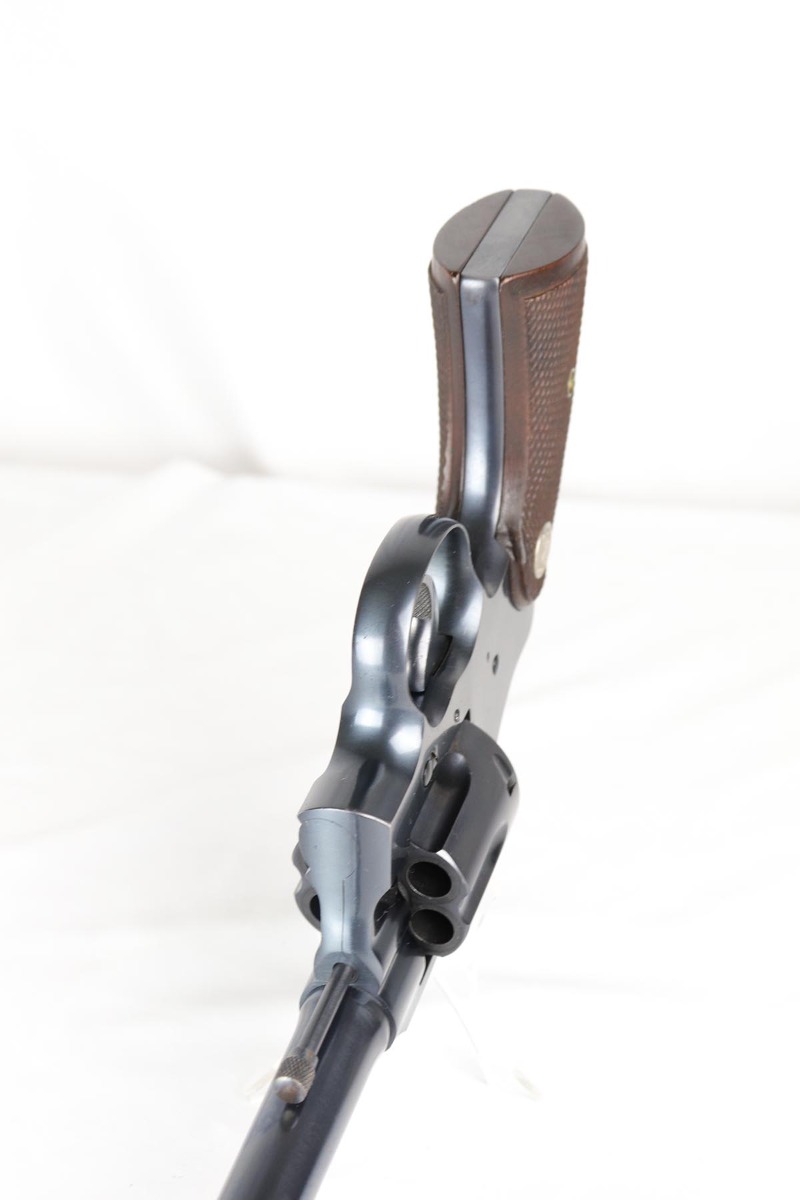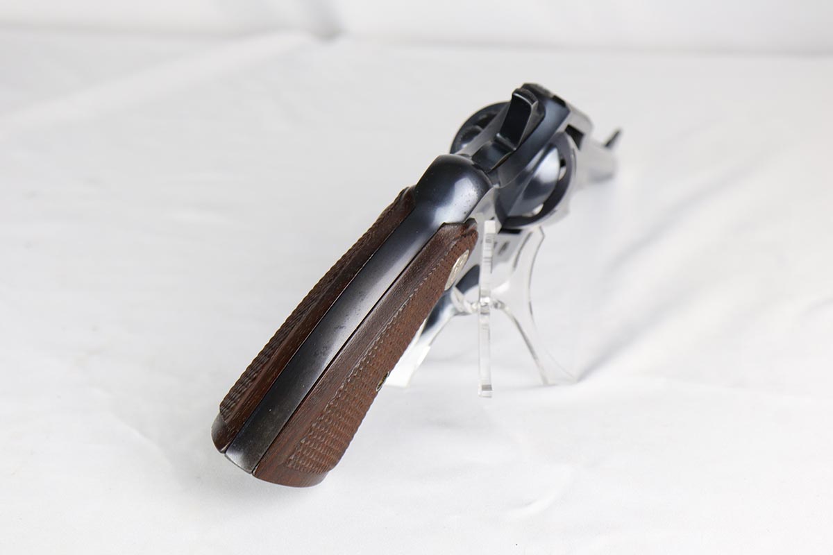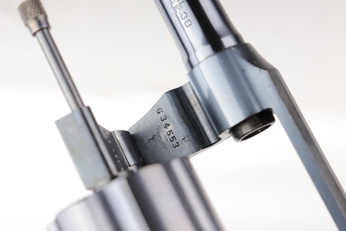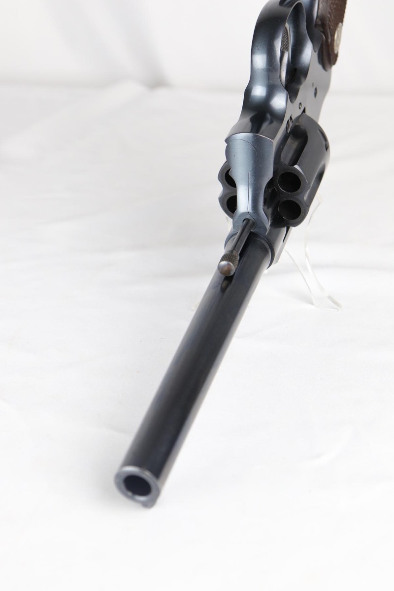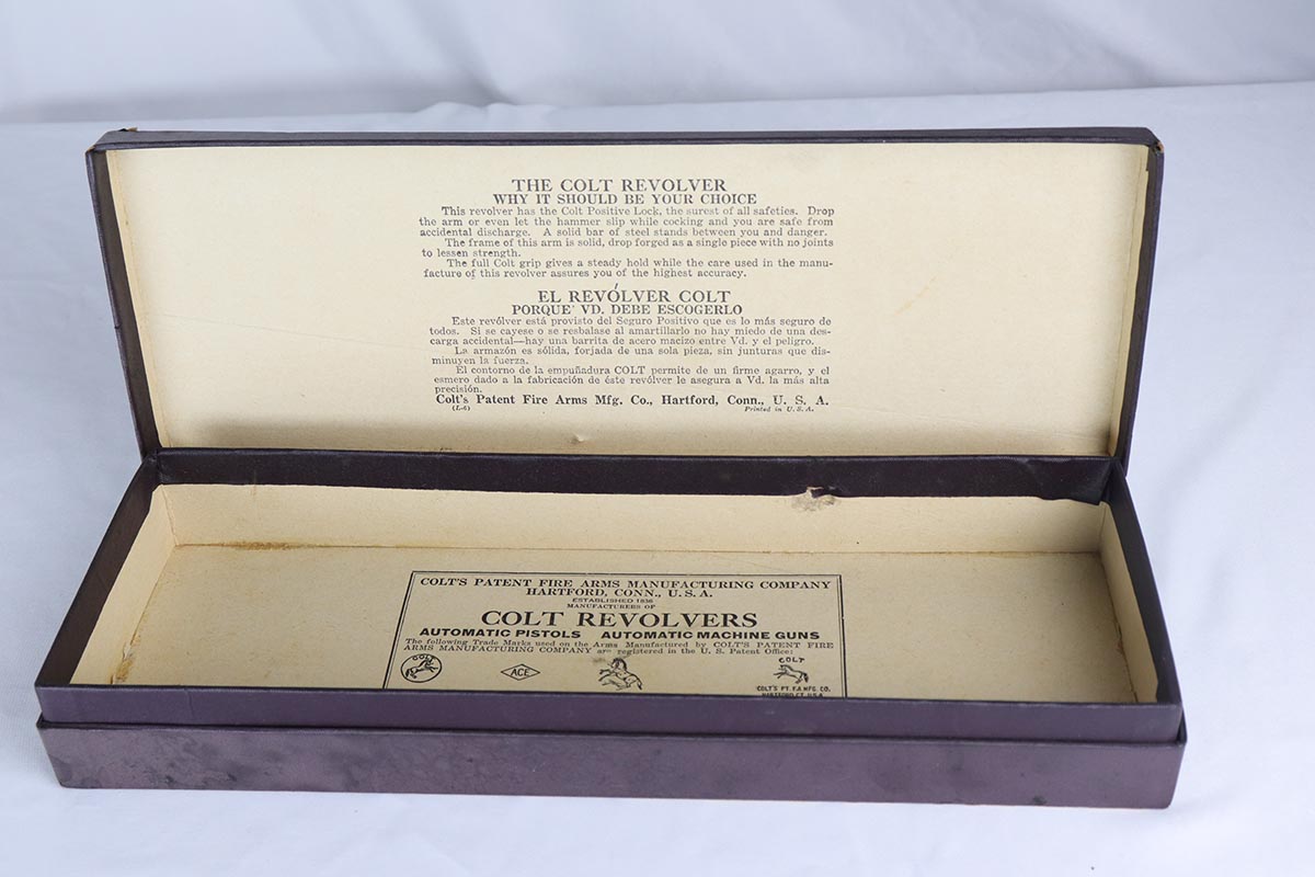 3/20/18 – This is a near-mint Colt Official Police in .38 caliber. The original finish rates at 99%, and comes in an excellent original box. The box is correctly hand numbered but to a different revolver. I don’t think this combination could be upgraded. The gun was made in Dec. of 1940 or January of 1941, just before the US involvement in WW2, so the quality of production is high. Bore is excellent. A 9+ out of 10. Excellent condition wood grips.