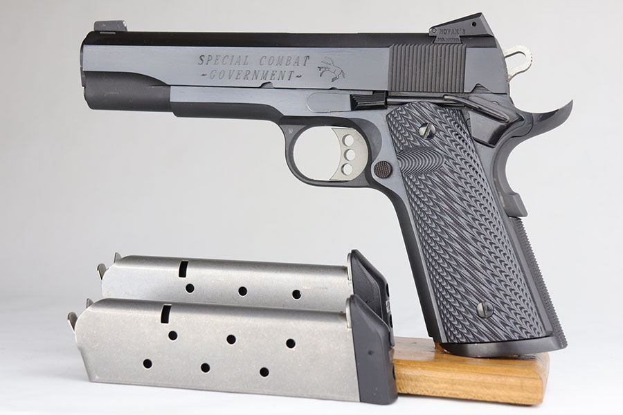 5/27/20 – This is a beautiful Colt Special Combat Government Model O that was manufactured in 2014, and is in nearly the same condition it left the factory. It has a minuscule takedown scratch on the left side of the frame, but otherwise hardly looks used. This is a blued variant, which was discontinued. It has a 5 inch throated barrel, supplied with two 8 shot magazines, flared ejection port, cut-out hammer, skeletonized trigger, Trijicon front sight and Novak’s rear. Minty bore and grips. FFL required.