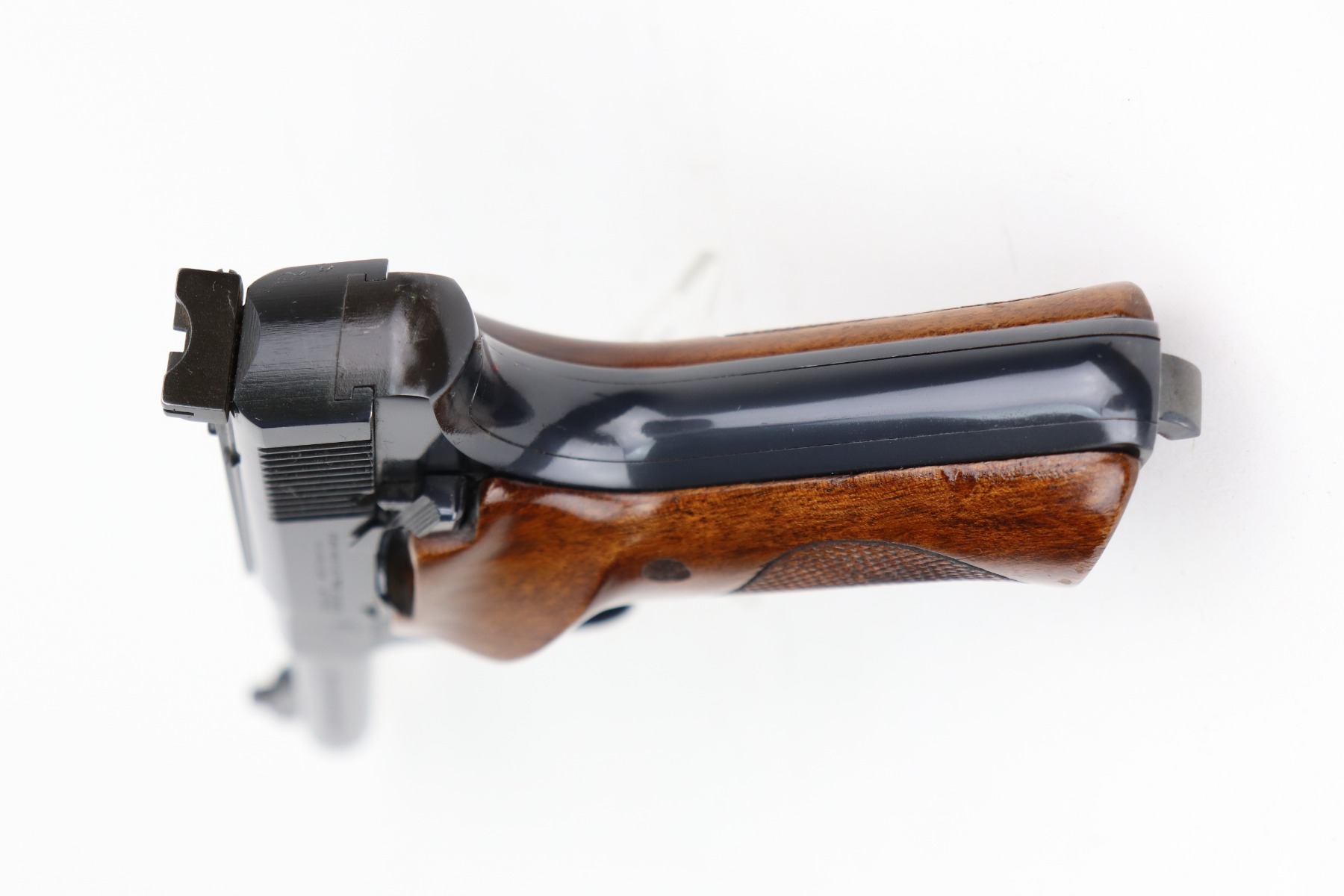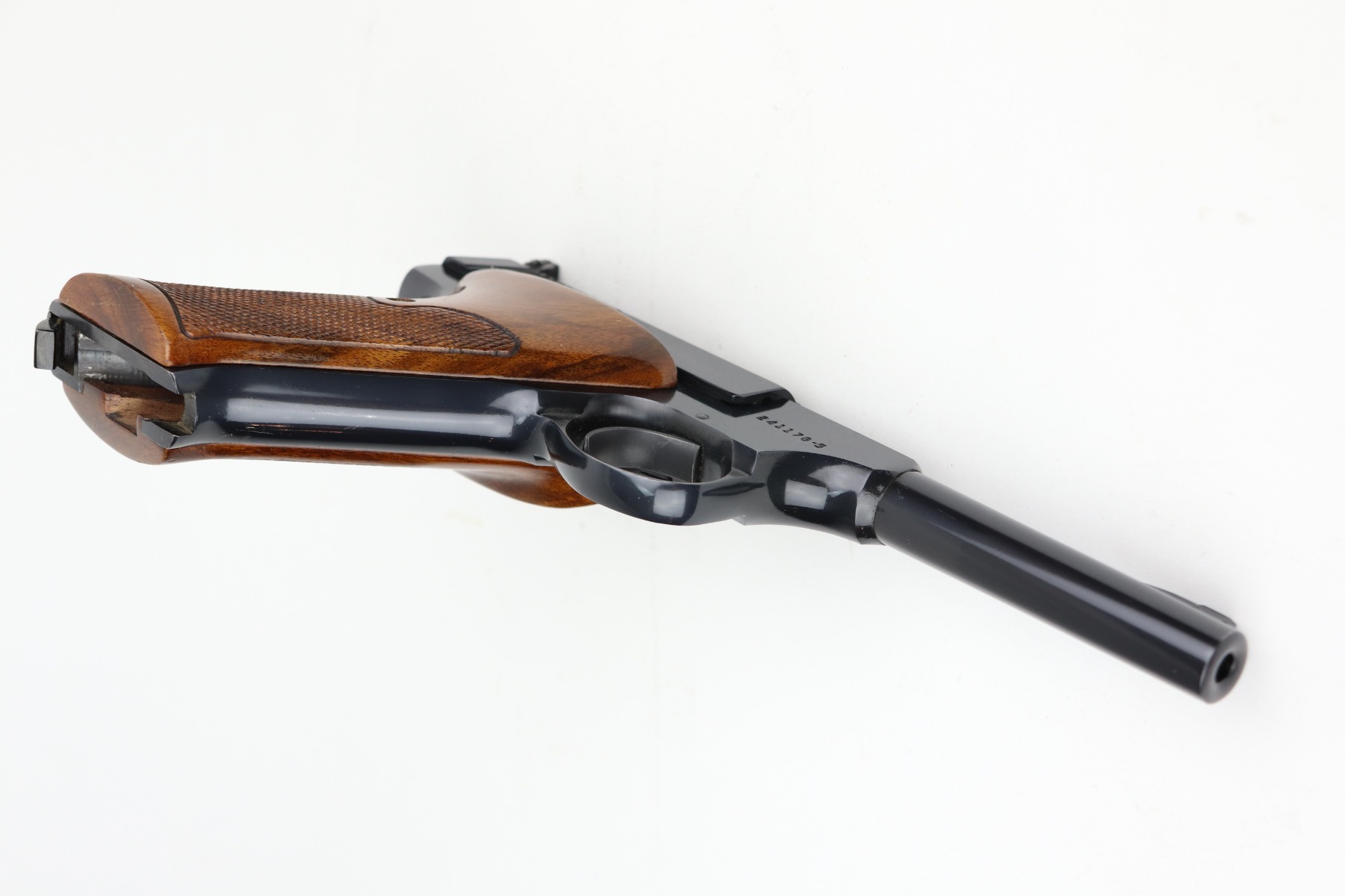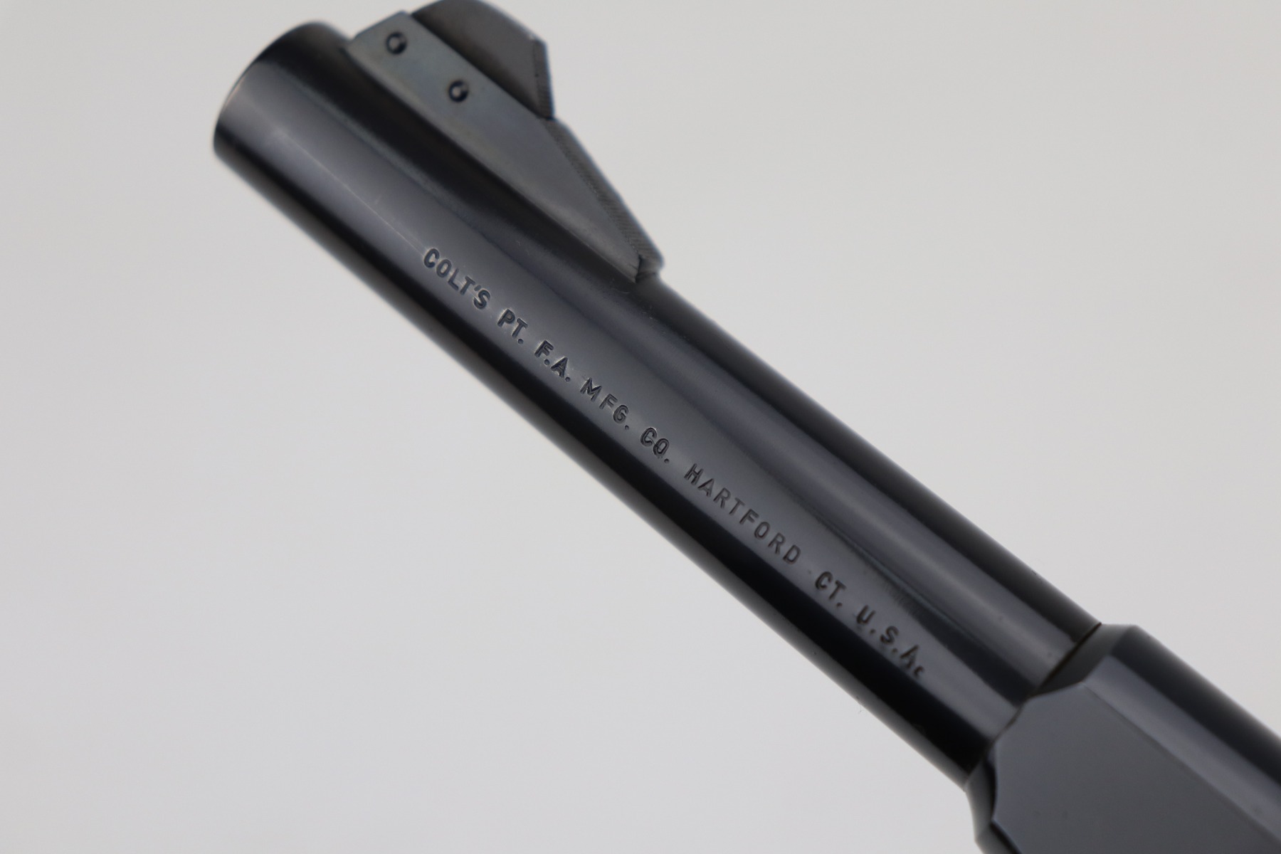 4/7/21 – This is a mint example of a 3rd Series Colt Woodsman Sport manufactured in 1968. Chambered in .22 LR. The gun has retained about 99% of its original bluing with just a few very small handling marks on the front strap. Comes with excellent grips and a proper magazine. The bore is mint.
