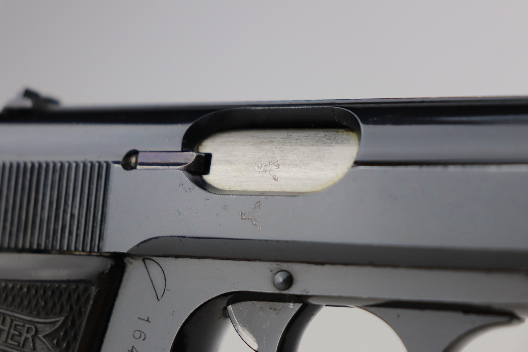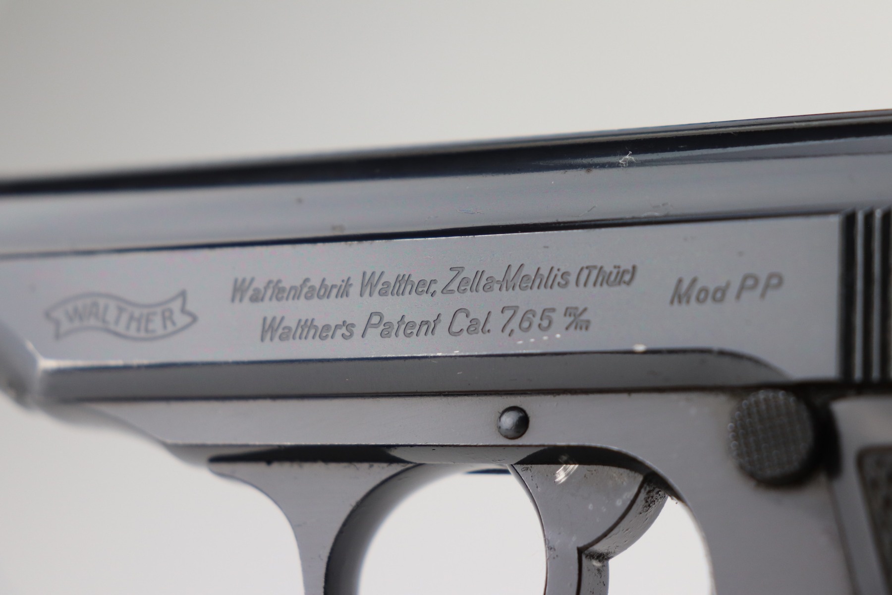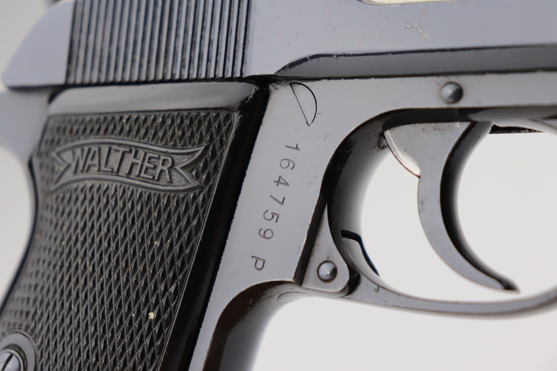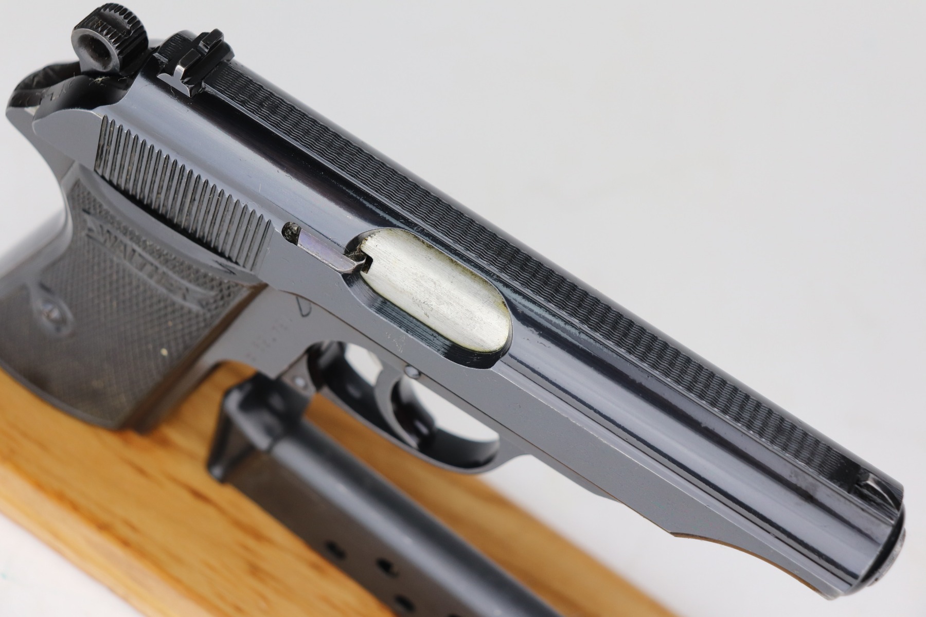 3/1/21 – This is a mint example of a Walther PP sold in the commercial market in 1940. It is all matching and has the proper “Eagle N” proofs. It has retained more than 98% of its original high polish finish. There is just a hint of wear around the muzzle and at the base of the back strap. Comes with excellent grips and a period-correct finger extension magazine. Minty bore.