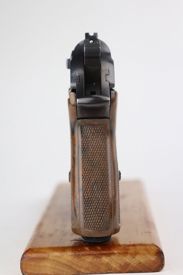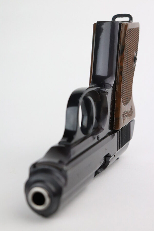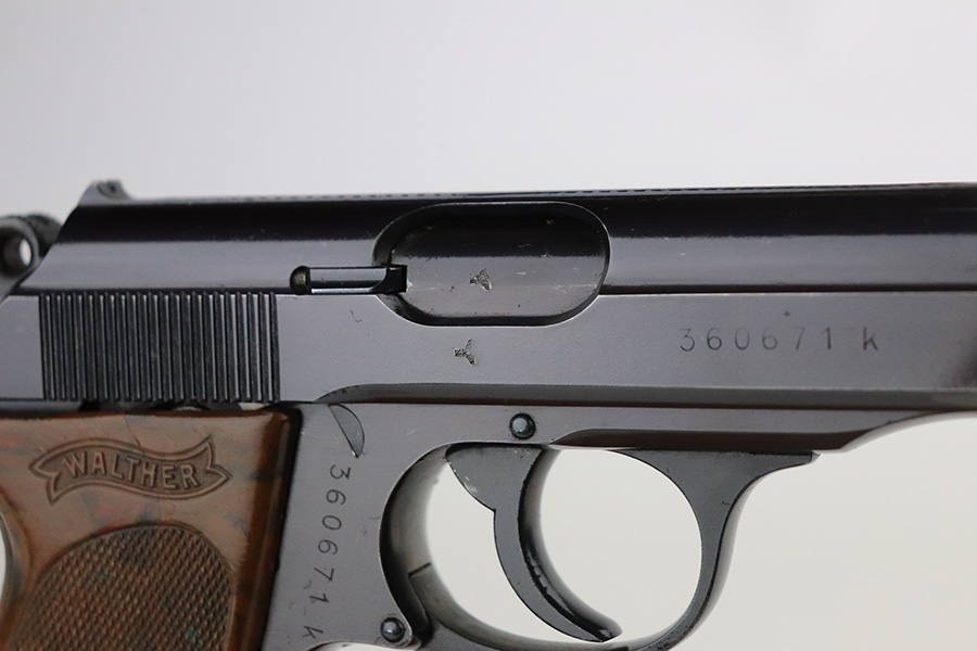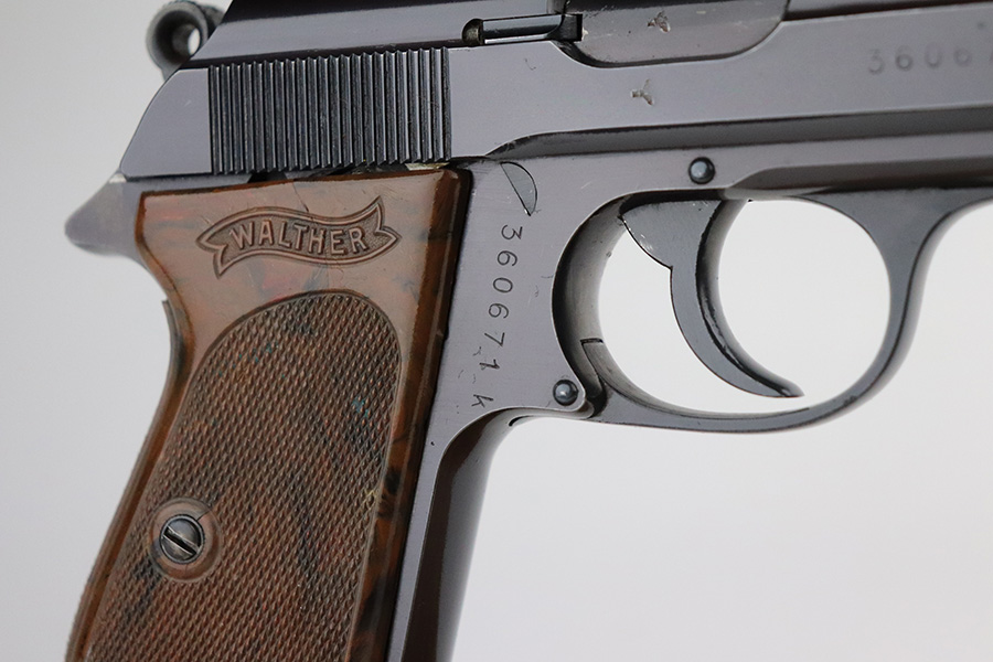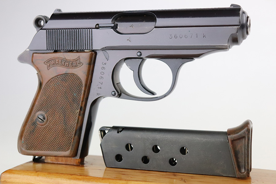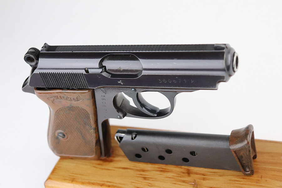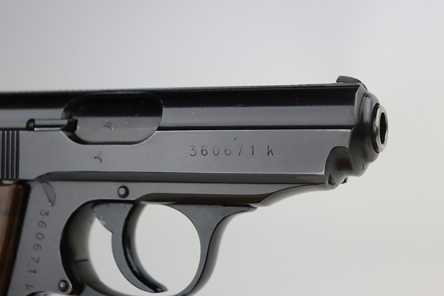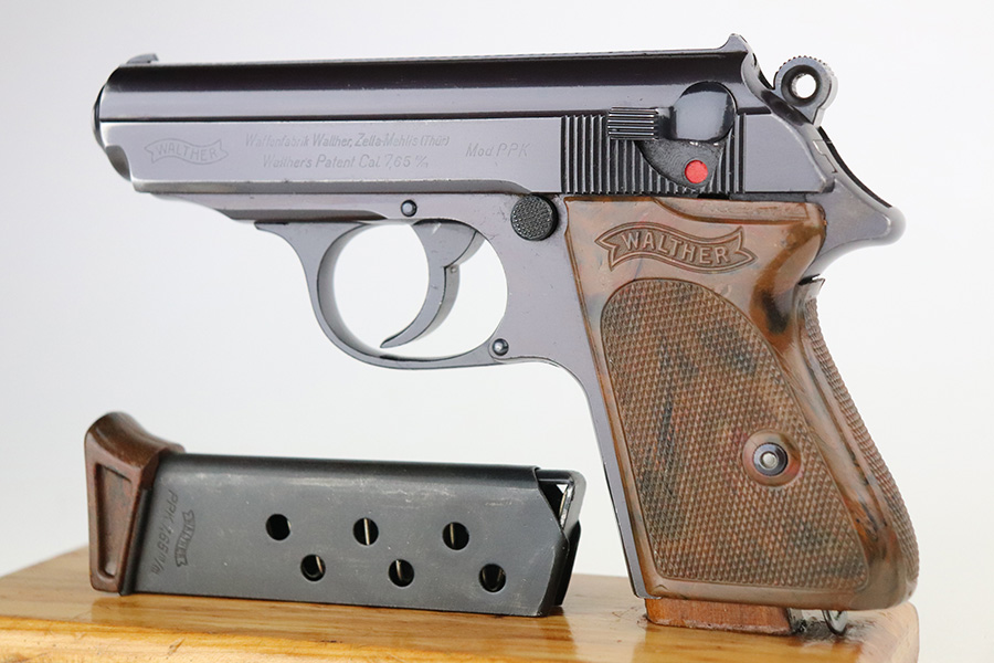 7/16/21 – This is a mint example of a Walther PPK sold in the commercial market in 1942. It is all matching and has the proper “Eagle N” proofs. It has retained more than 98% of its finish with just hints of wear on the high edges of the slide and around the muzzle. Excellent grip with a small crack on the right side. Also comes with a wartime brown finger extension magazine. Stone-mint bore.