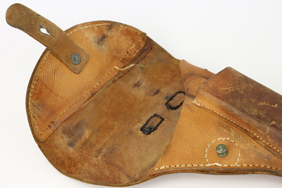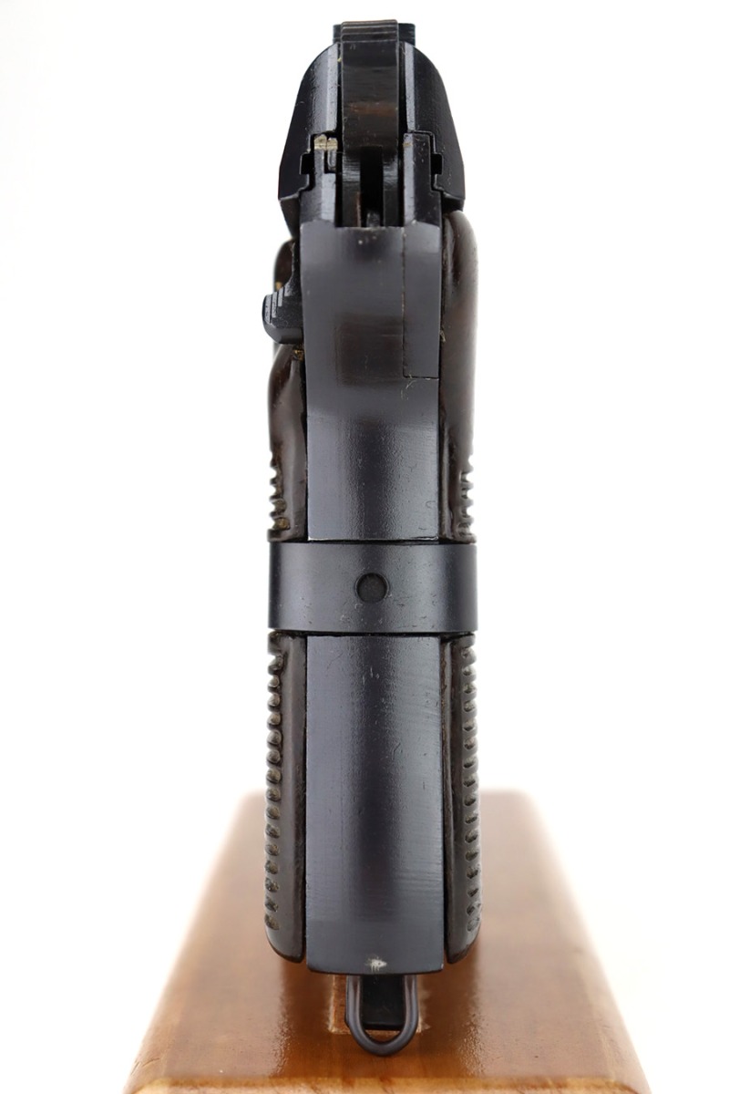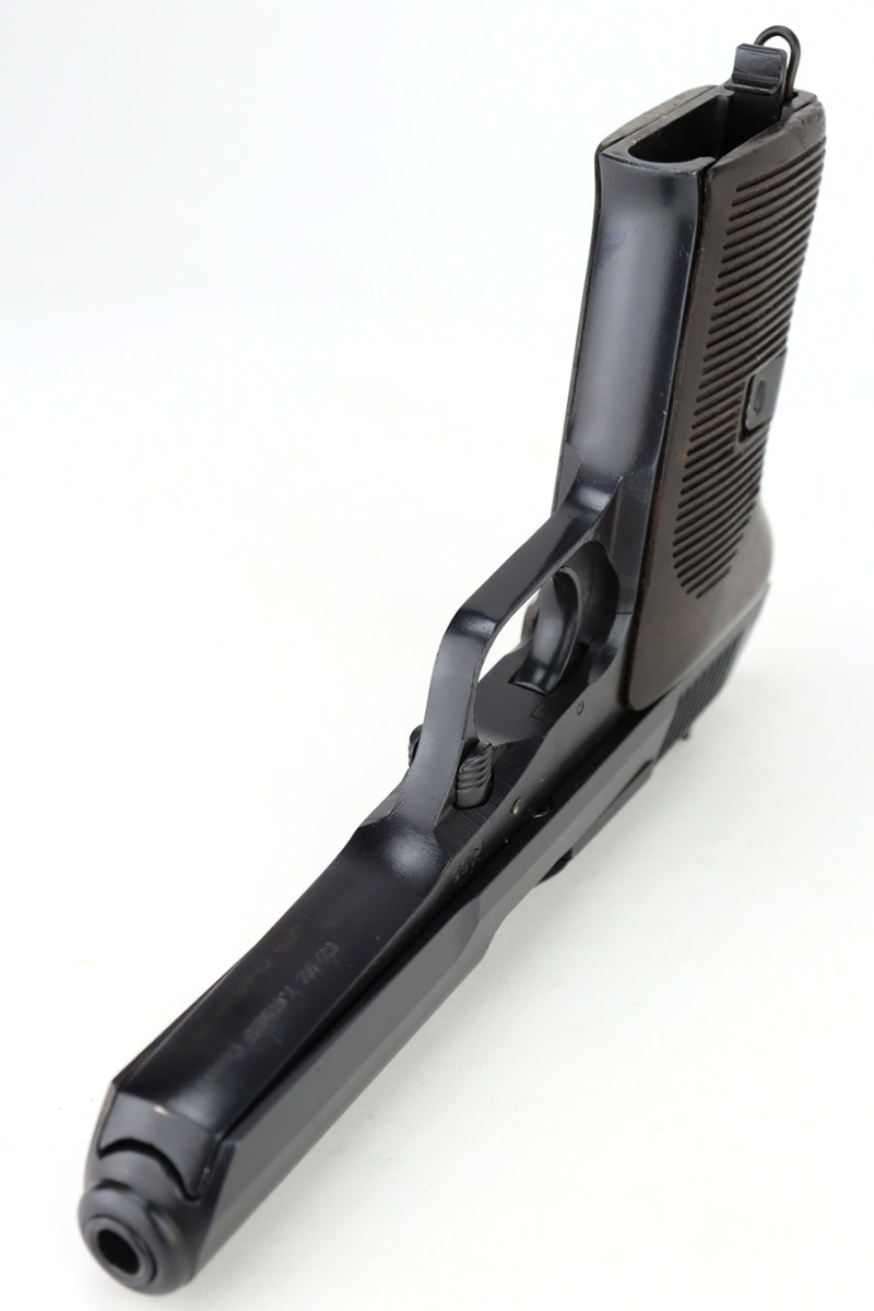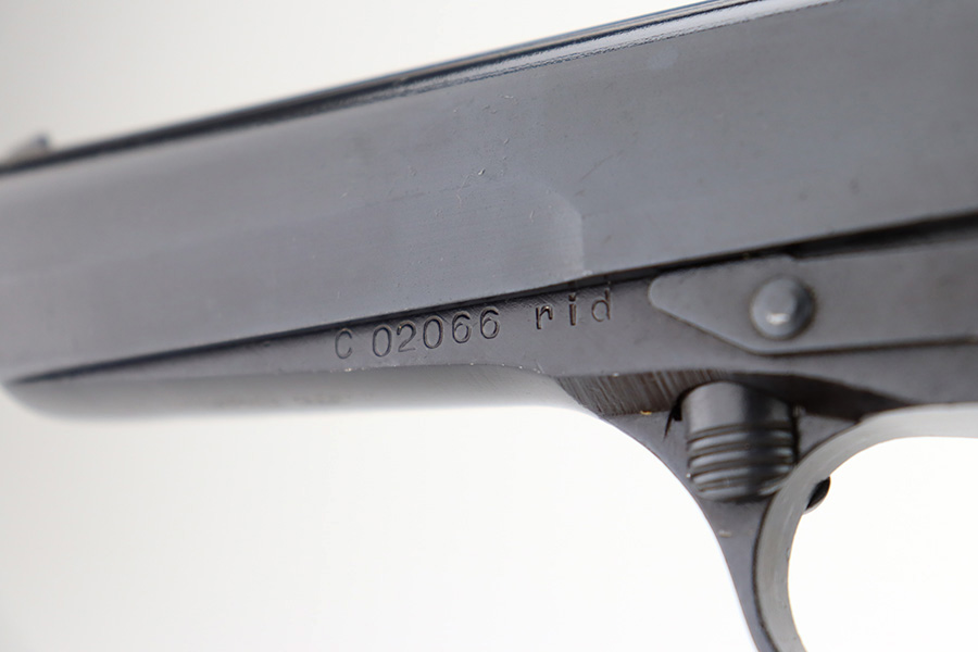 12/14/23 – This is a mint example of a Czech CZ Model 52 pistol manufactured in 1953. It is all matching and bares an import mark on the underside of the frame. It comes as a rig with a tan leather holster, cleaning rod, and two proper magazines. The gun has retained essentially all of its finish with no signs of wear. Fitted with brownish bakelite grips. The bore has strong rifling, but there is very light pin-pricking throughout.