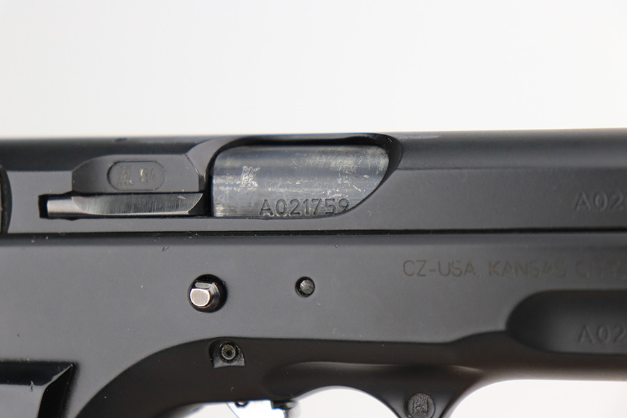 4/27/22 – This is a mint example of a Czech CZ Model 75 manufactured in 2004 and chambered in 9mm Luger. The gun is all matching and has the proper Czech lion proofs. The gun is in like-new condition. The only sign of wear is a few tiny handling marks on the top of the slide and on the back strap. Comes with excellent black plastic grips and one proper magazine. Mint bore. Fully functional.