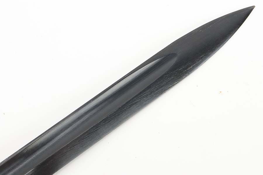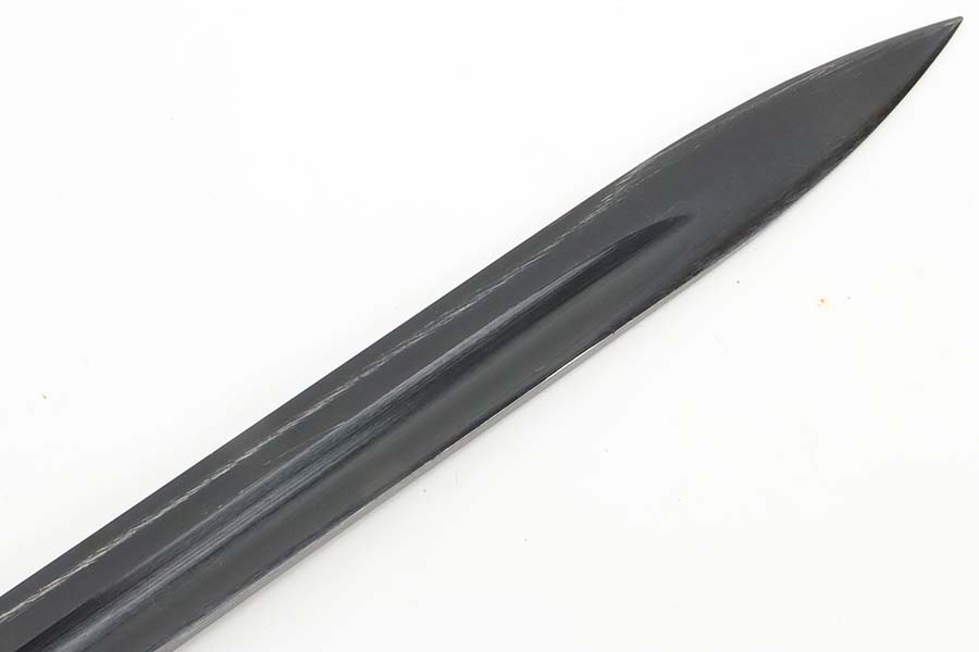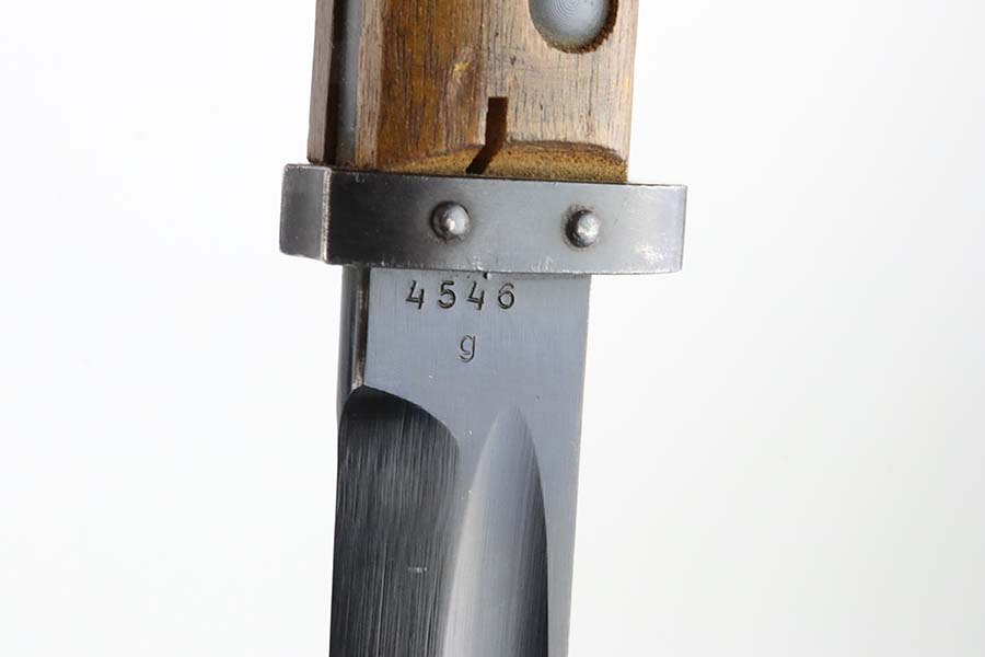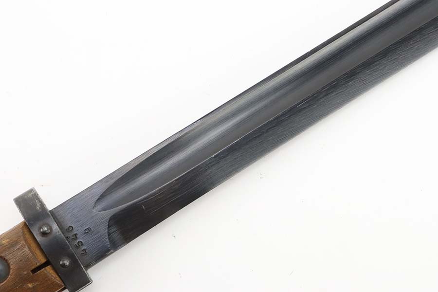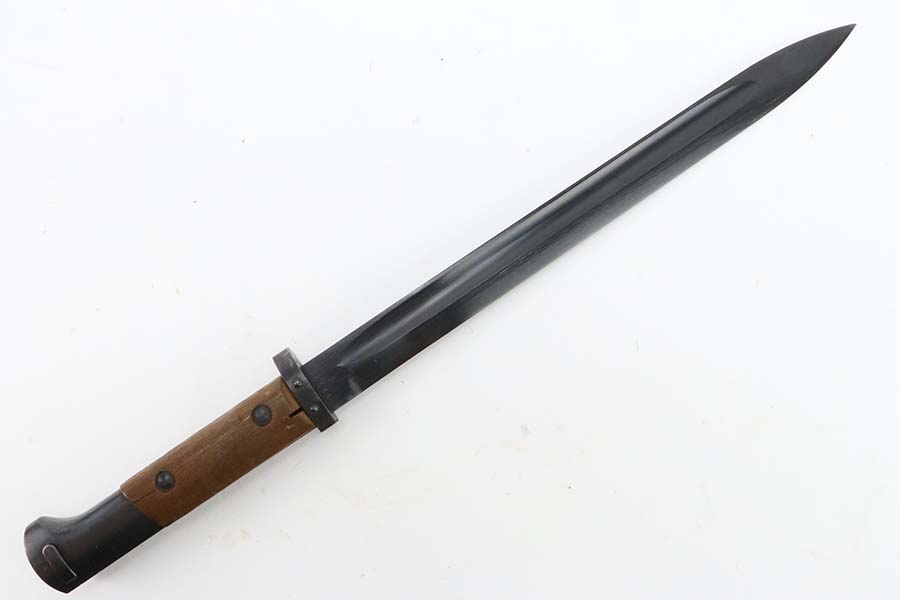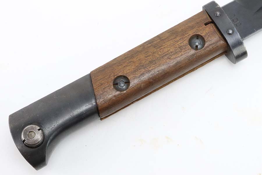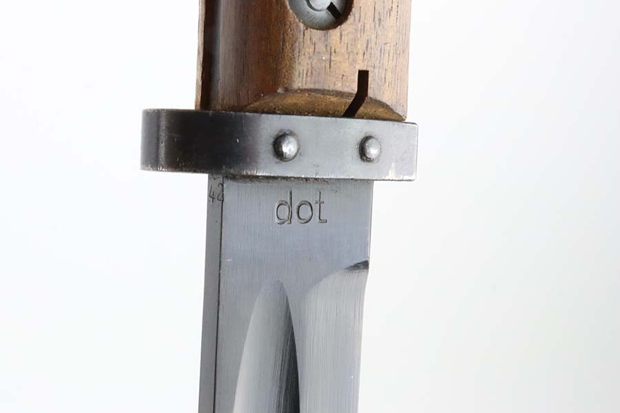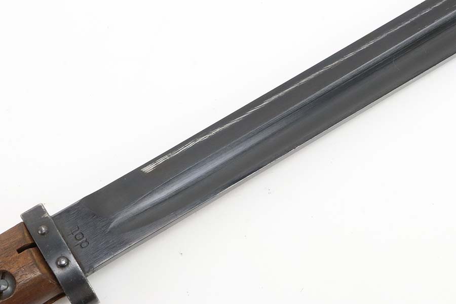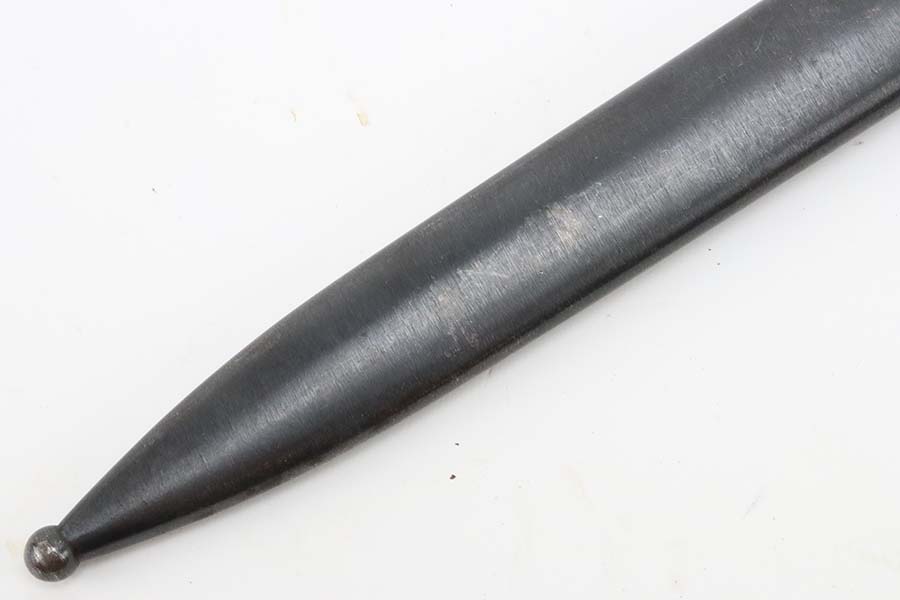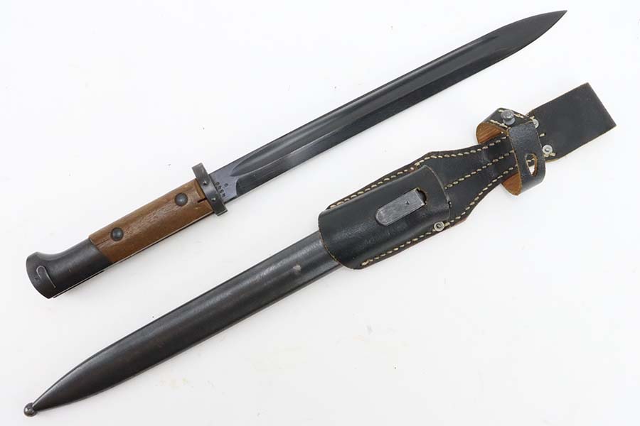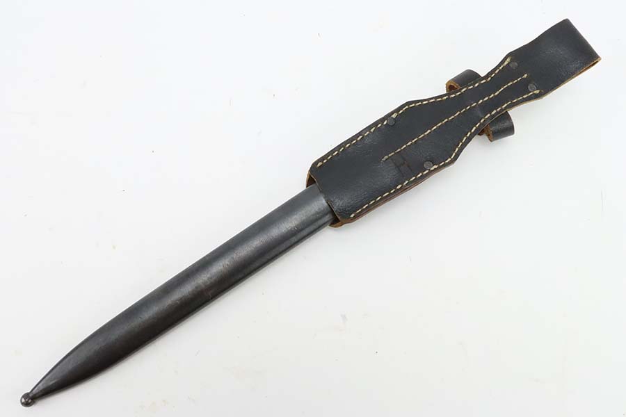 3/12/24 – This is a mint example of a Czech Waffenwerke Brunn K98 dated 1942. Comes with its original scabbard and black leather frog. The blade is “dot” maker marked and shows essentially no bluing loss. The leather frog is mint except for an “H” scratched onto the back.