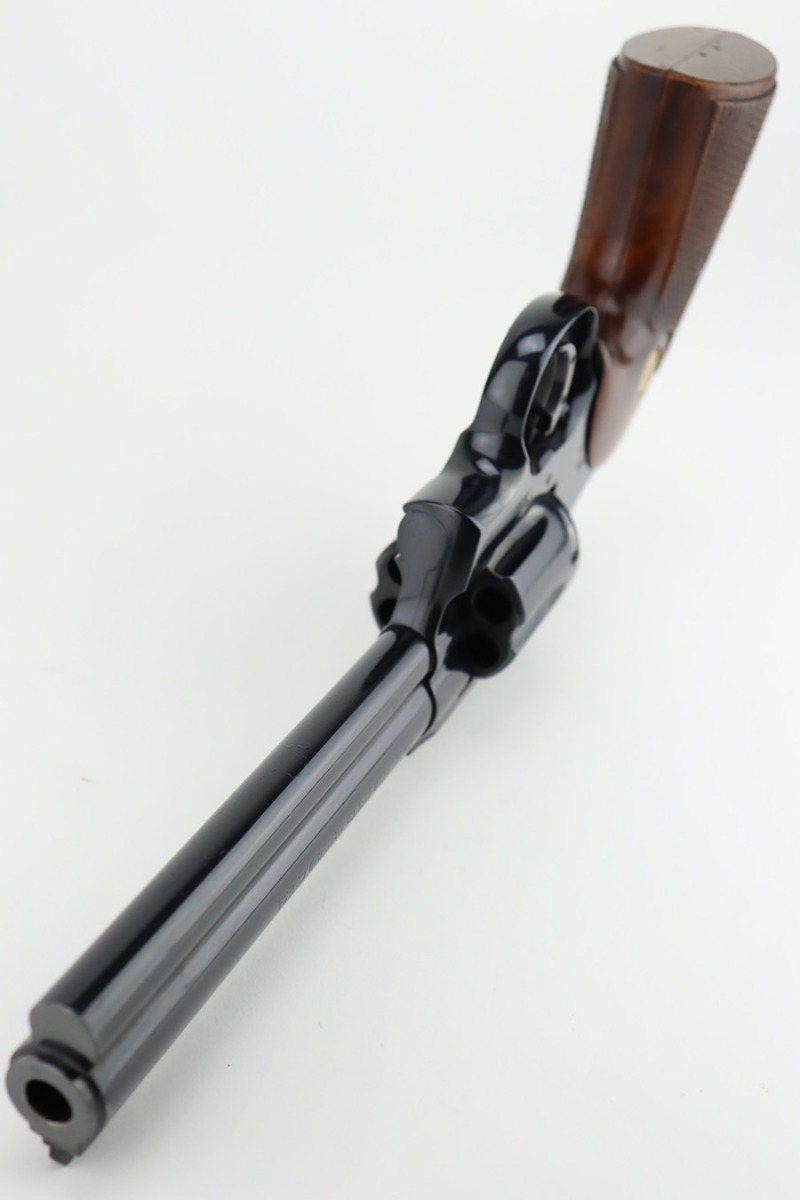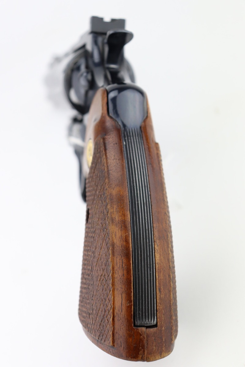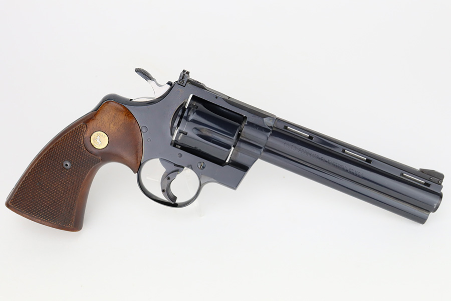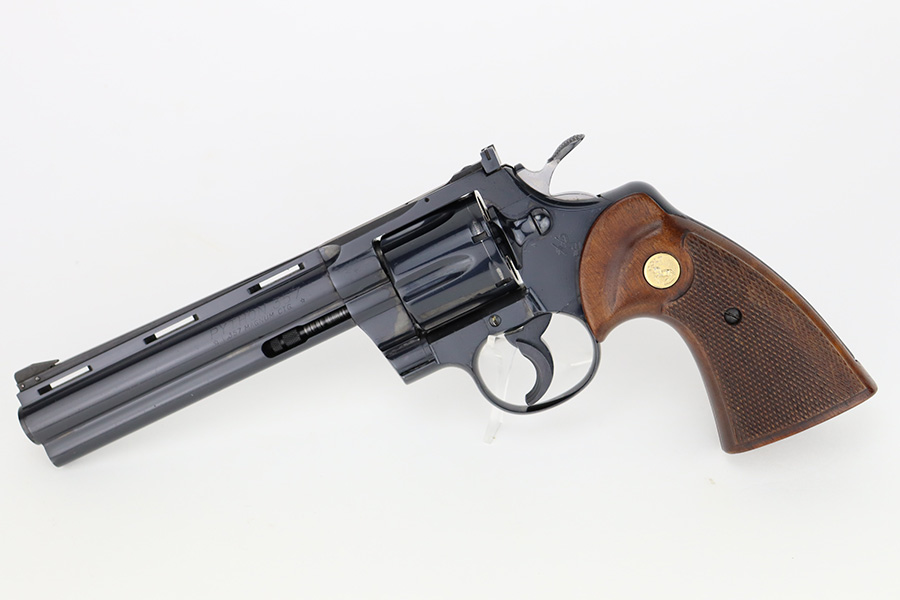 1/5/24 – This is an early example of a Colt Python revolver manufactured in 1962. Chambered in .357 Magnum with a 6″ barrel. The gun has a beautiful high polish finish and shows virtually no signs of wear except for an extremely light roll mark on the cylinder and a few tiny scratches on the right side. Fitted with excellent hand-checkered Walnut grips. Like-new bore.