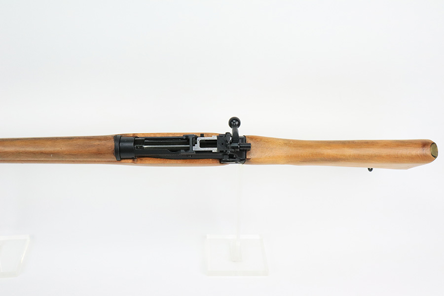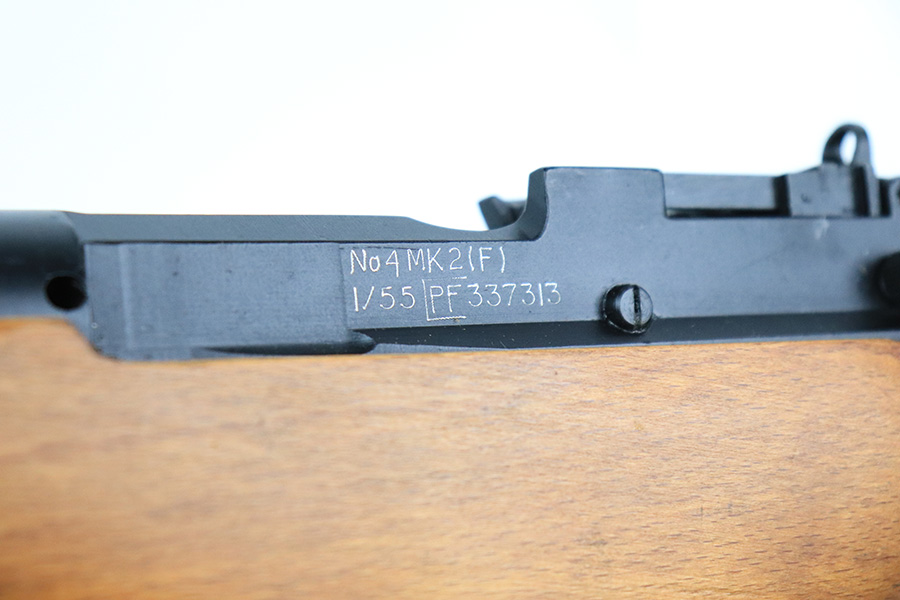 8/2/22 – This is a mint example of a Fazakerley produced No4 Mk2 rifle from 1955. Matching numbers throughout, including stock, bolt, magazine and receiver. Minty finish throughout, looks like it just left the factory. Mint bore, no erosion or wear. Stock is immaculate. Import mark on side of barrel.