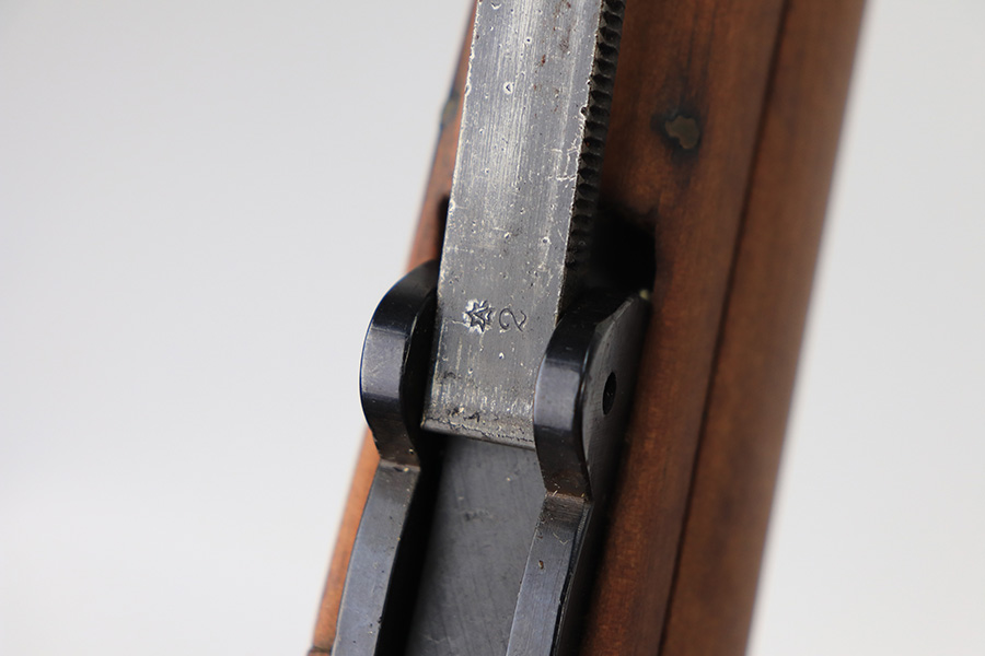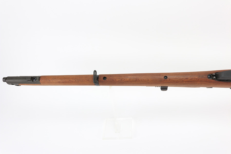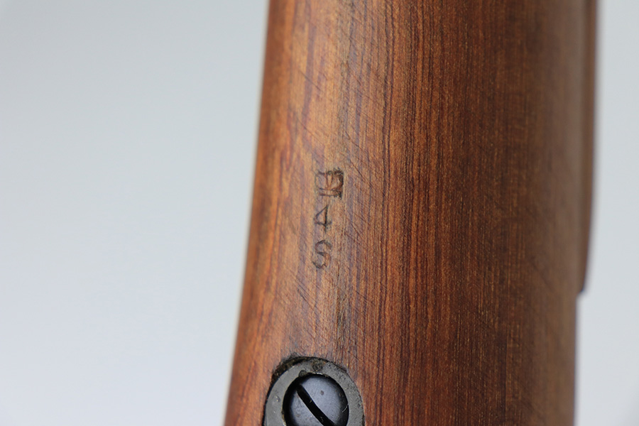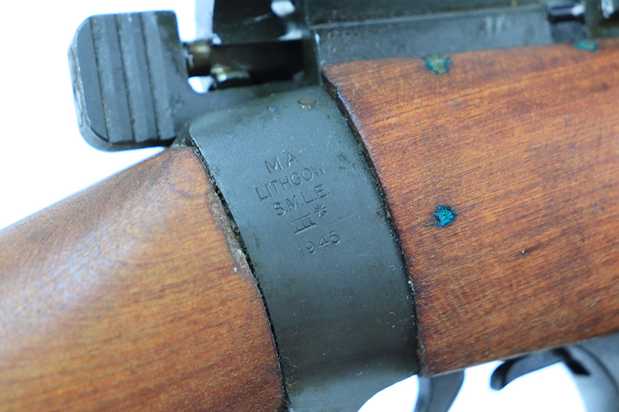 2/24/22 – This is a mint Lithgow Enfield S.M.L.E. Mark III rifle from 1945. An American company (JJ Co.) bought these from Enfield and sold them commercially after the war. So it is not import marked as this was done immediately following the war, but JJ Co. is marked on the side of the receiver. The gun is all Australian Lithgow parts and appears to be unissued. Most of the small parts are stamped “BA”. The stock is minty condition with “SLAZ 42” stamped near the trigger guard, and “SLAZ 43” stamped on the underside of the barrel / foregrip. Mint stock and bore.