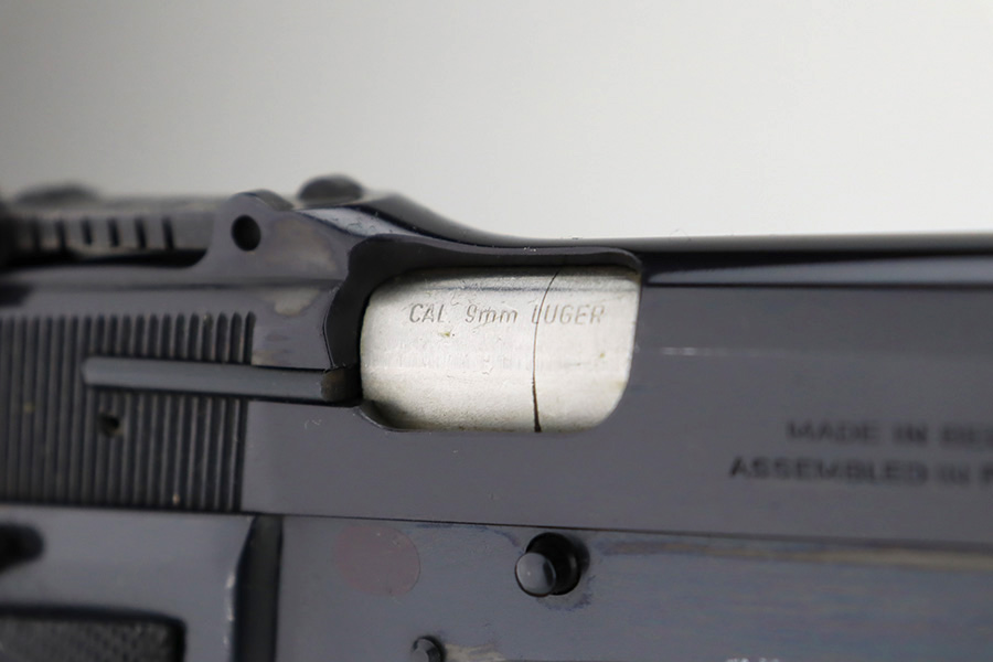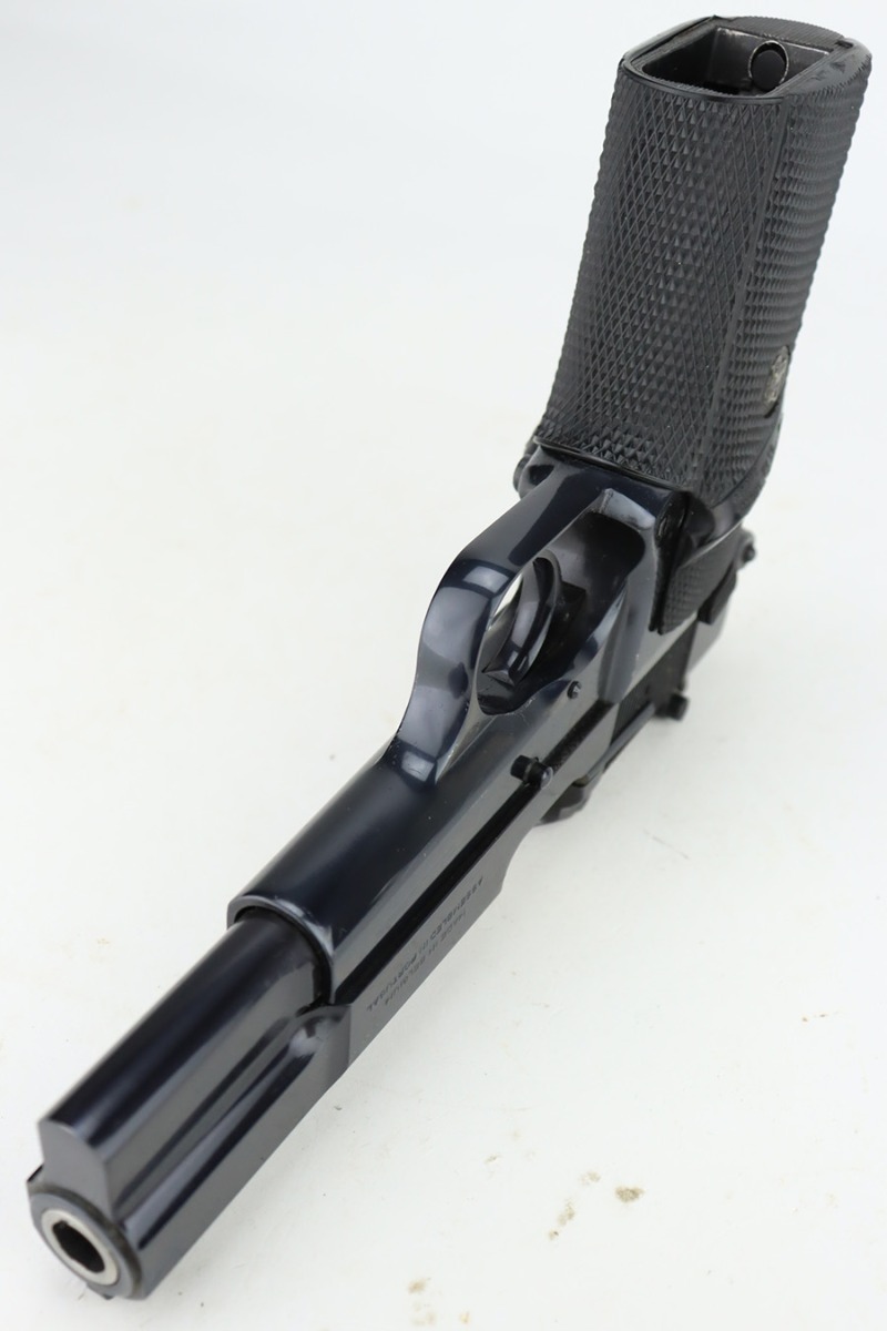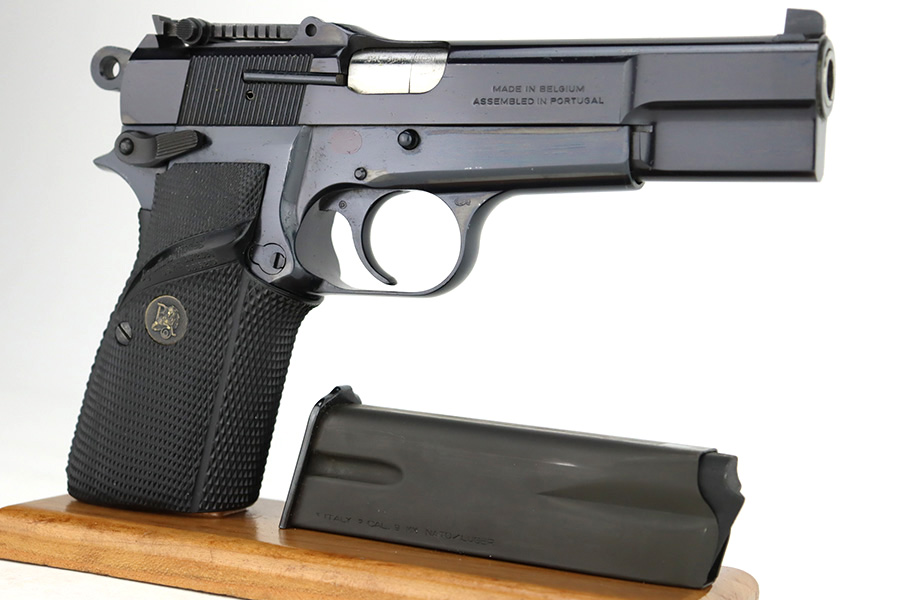 12/27/23 – This is a mint example of an FN Browning Hi Power, manufactured in 1994 and chambered in 1994. It is like-new with no signs of wear or use. Fitted with a set of Pachmayr black rubber grips and comes with one proper magazine. Like-new bore.