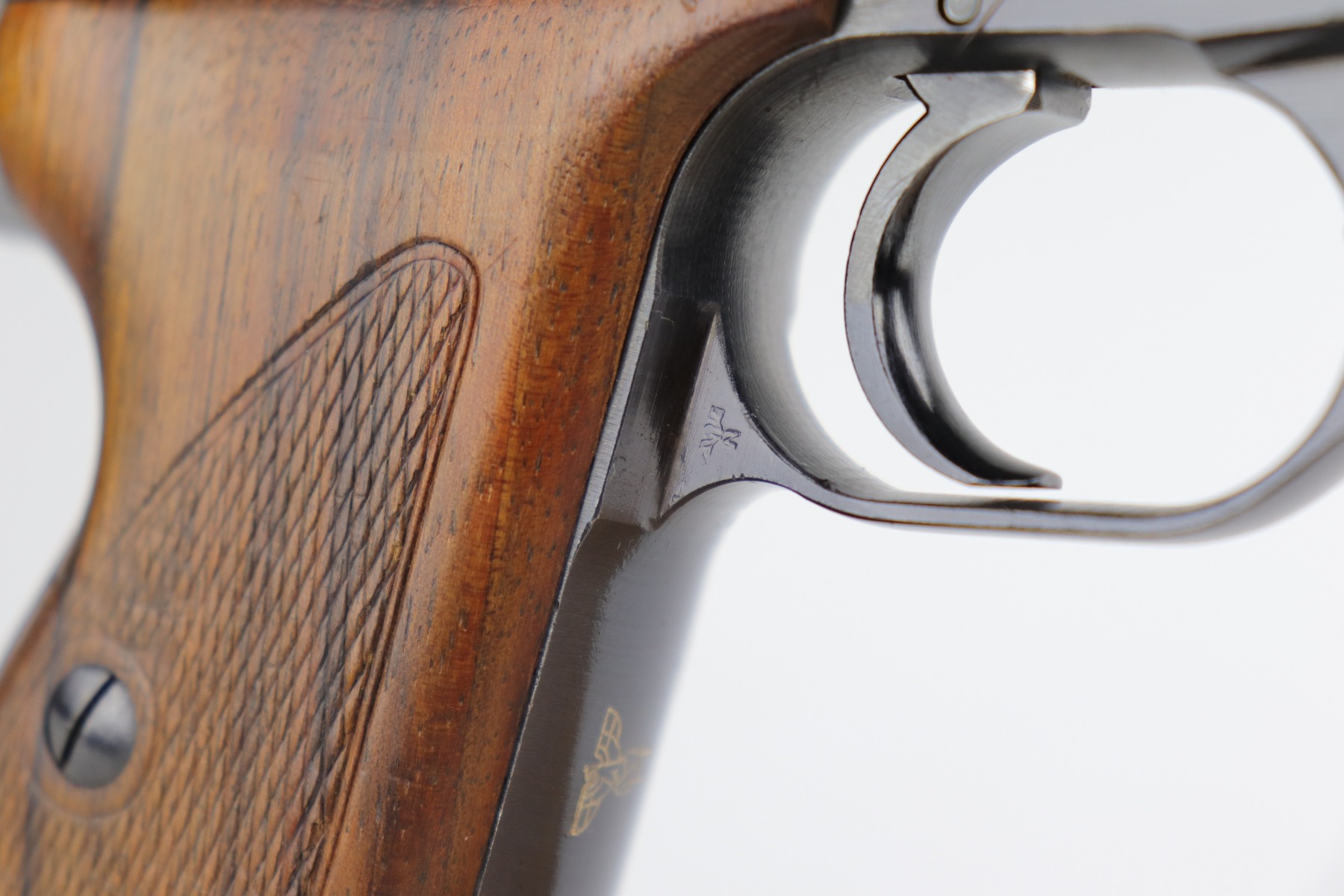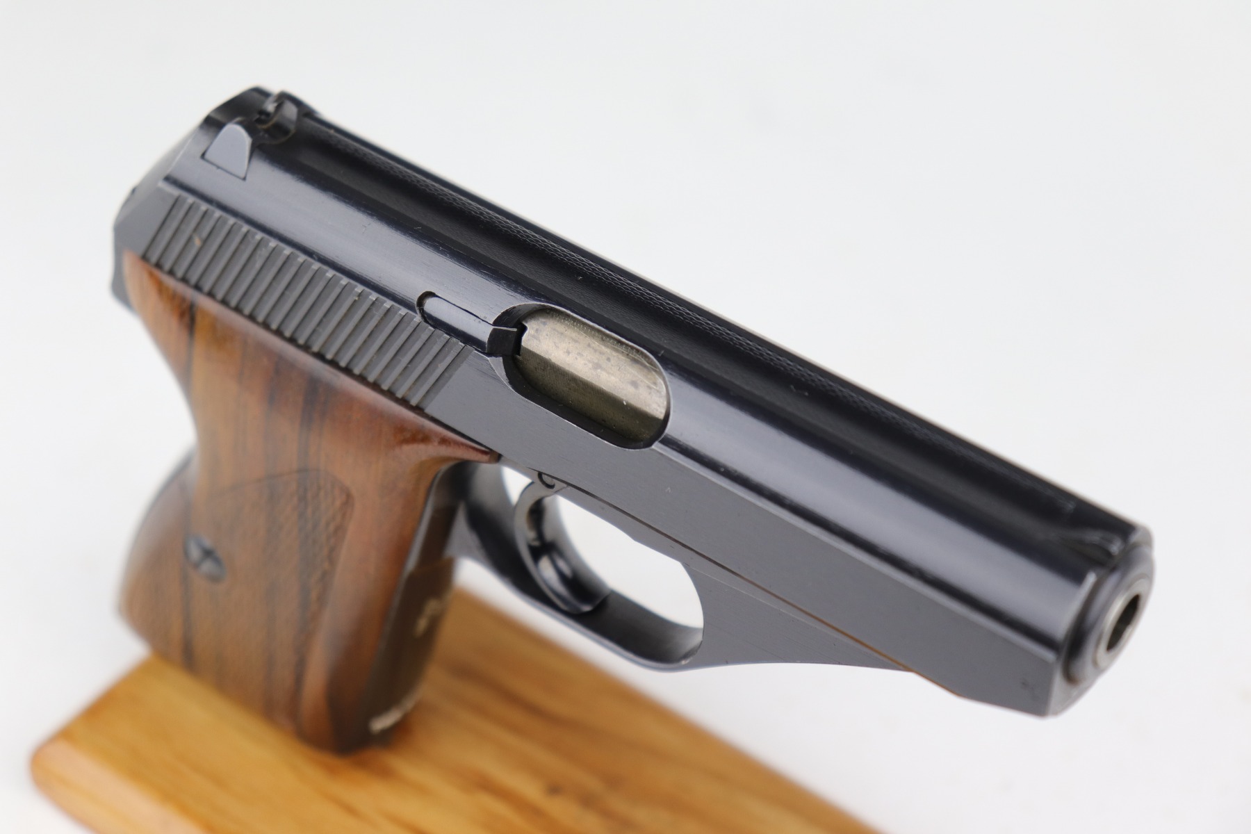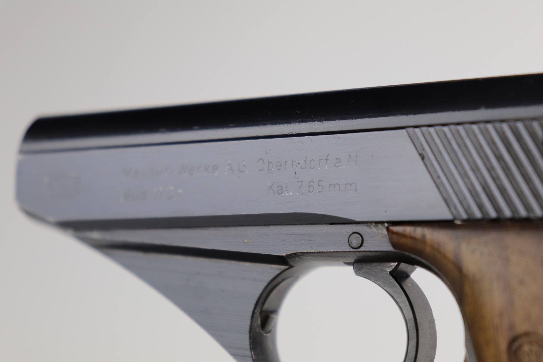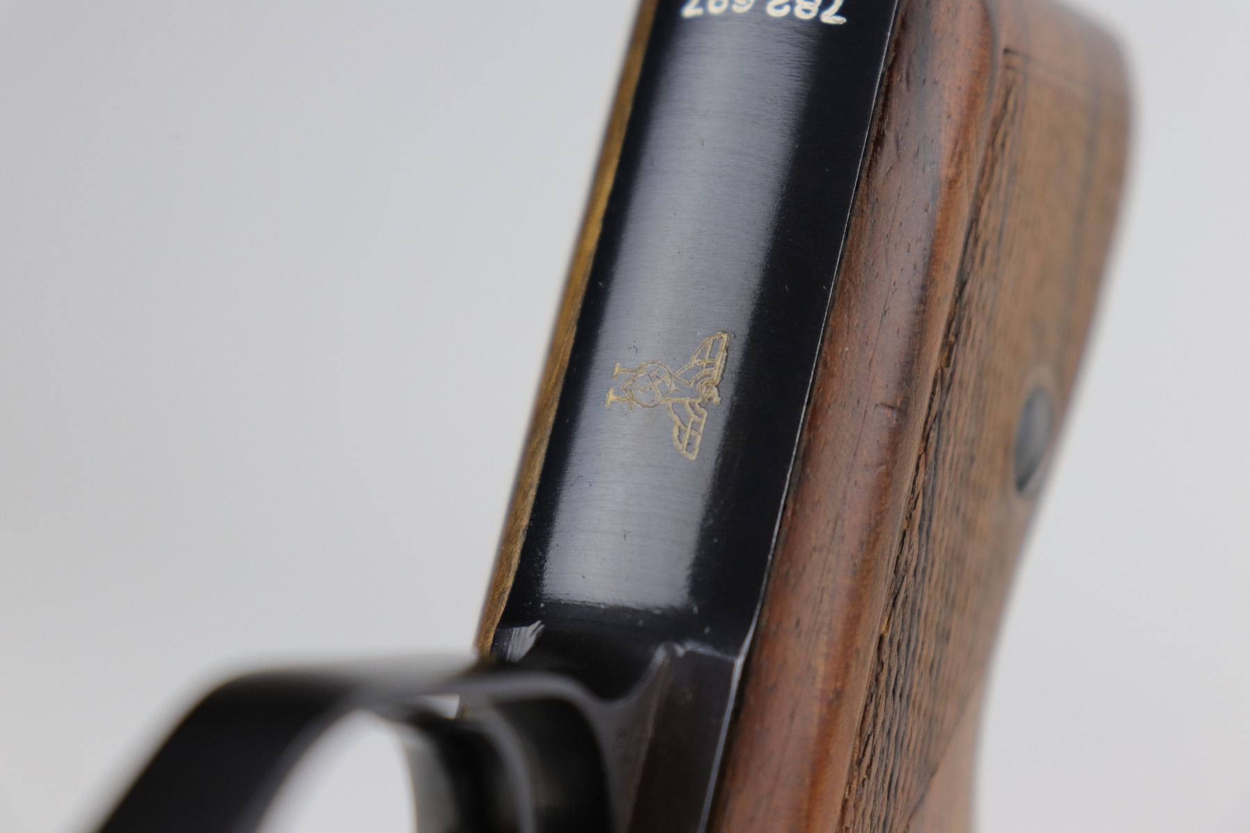 1/5/21 – This is a mint example of a Mauser HSC issued to the Nazi Kriegsmarine in 1942. It is all matching and has the proper “Eagle M” marking on the front strap. This is a 2nd variation – only about 7,000 made. Please note: this marking is slightly thinner than others we have seen. Therefore, we cannot definitely speak to its authenticity. It has retained about 99% of its bluing with just a hint of wear around the muzzle. It comes with excellent grips and a proper magazine. The bore is mint.
