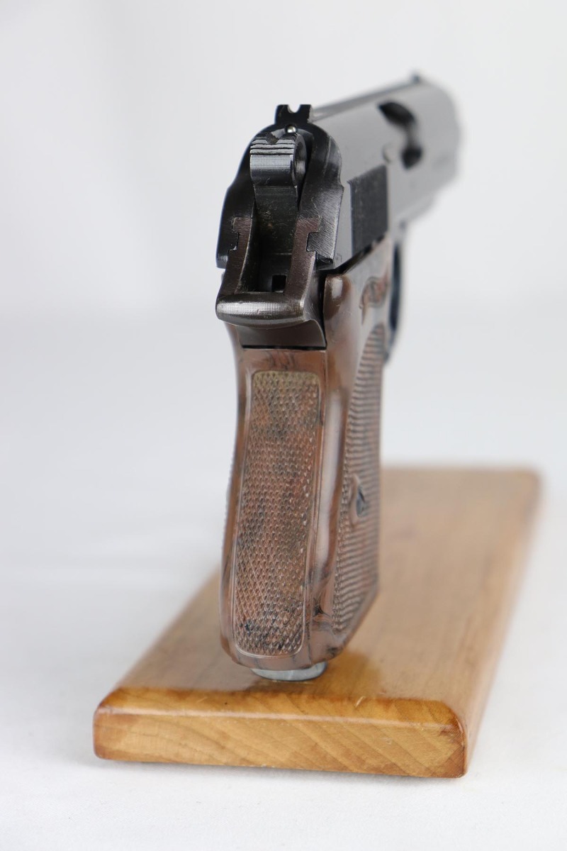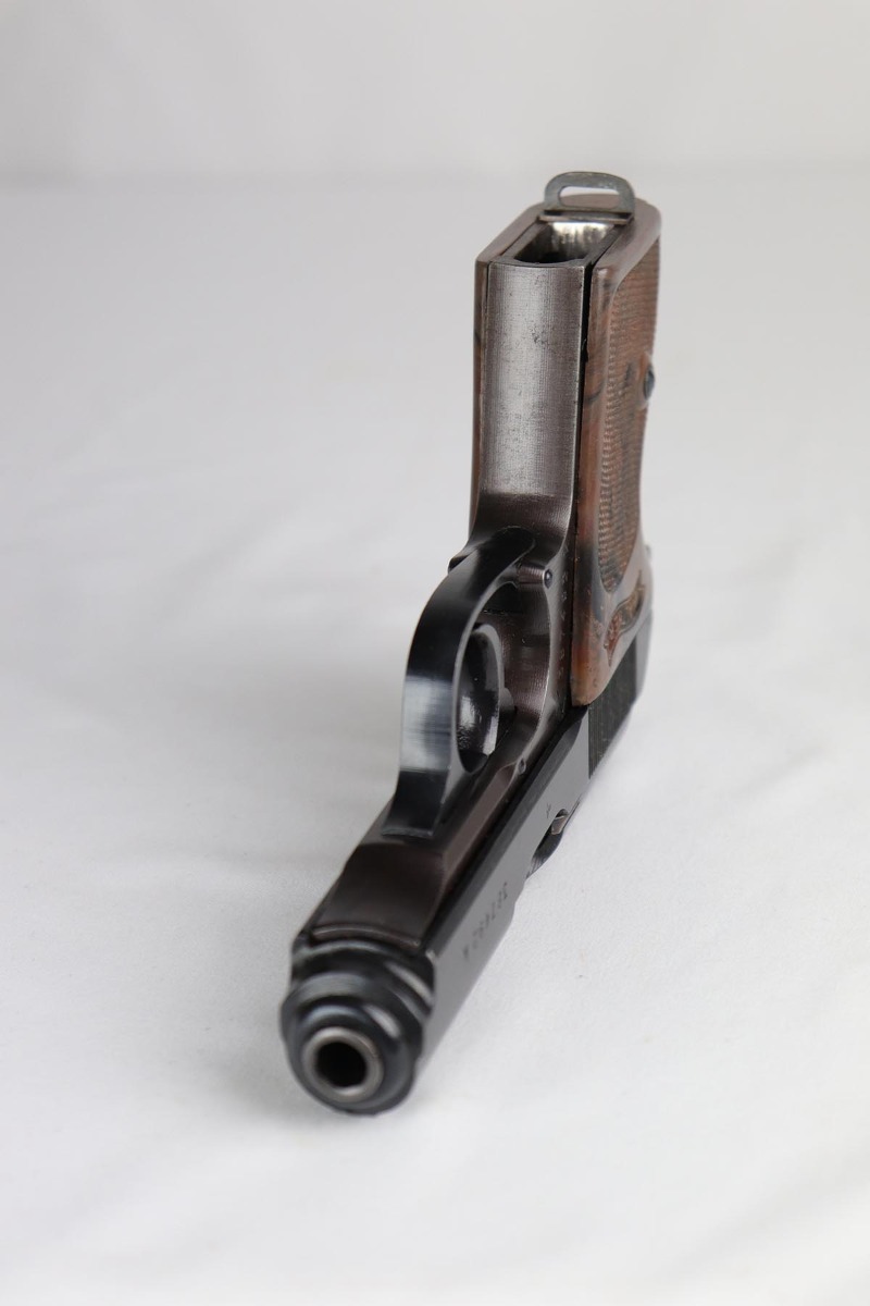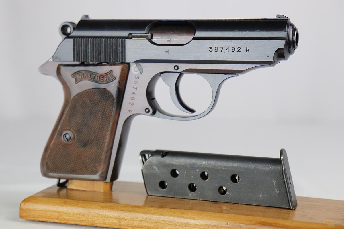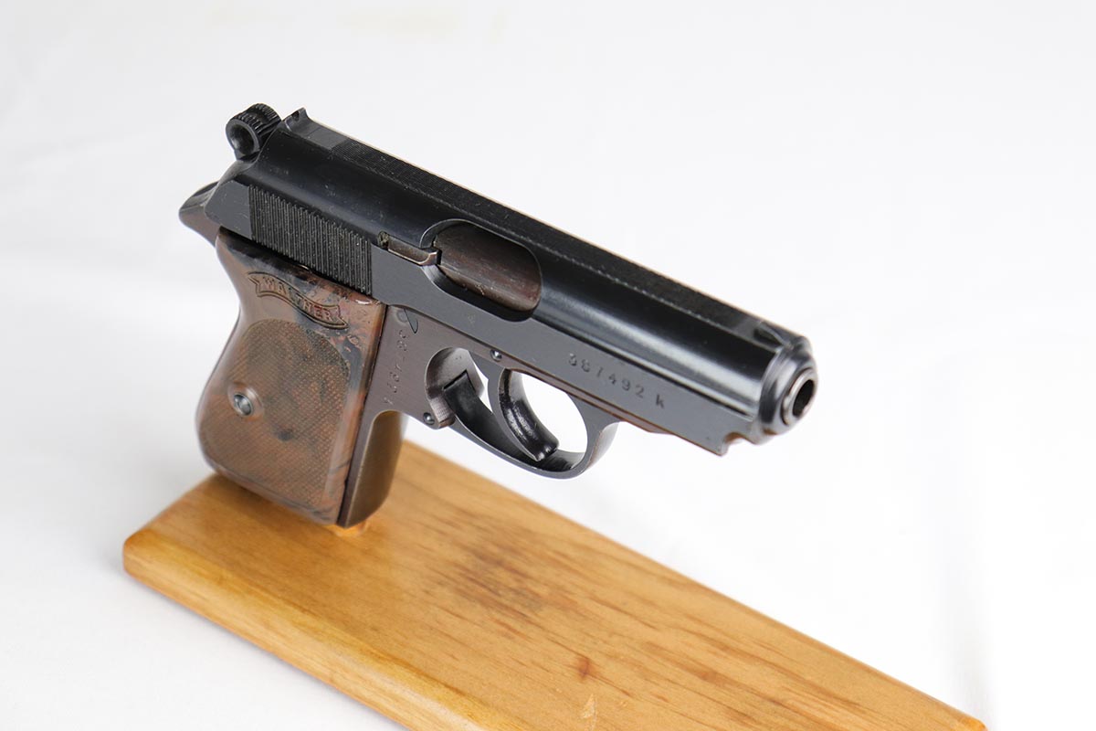 3/5/18 – This is a stone mint, late-war Walther PPK with uncommon gray grips and plum frame. The gun is pretty much unfired and appears unissued. Crisp markings. Gray late-war grips with no defects. Beautiful bore. All matching. Impossible to upgrade.