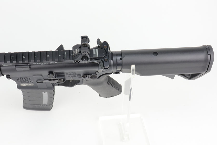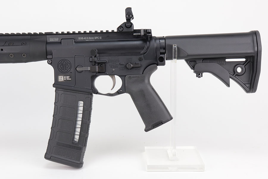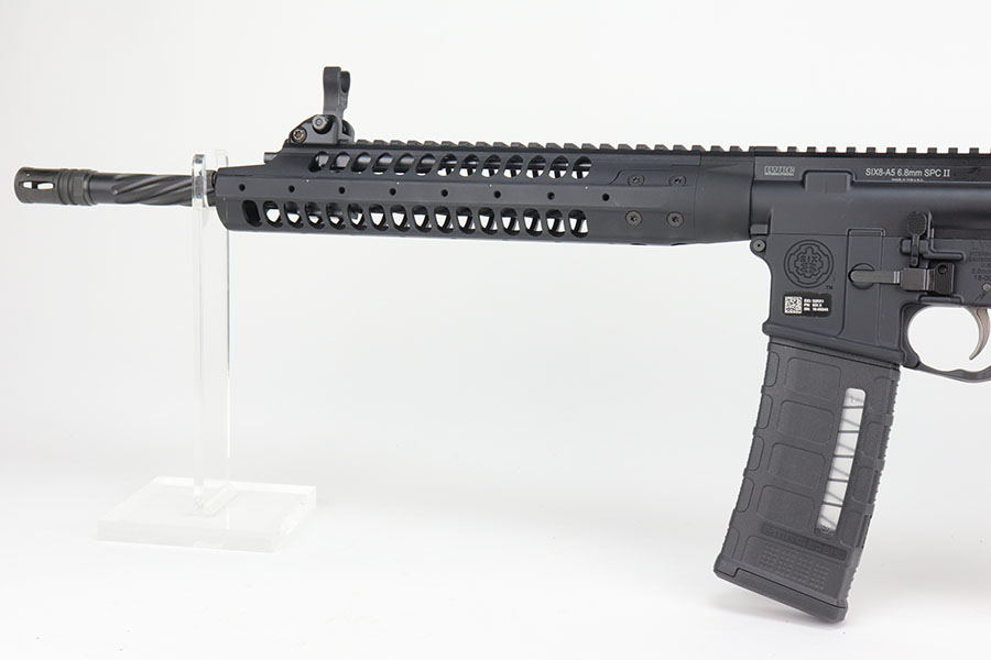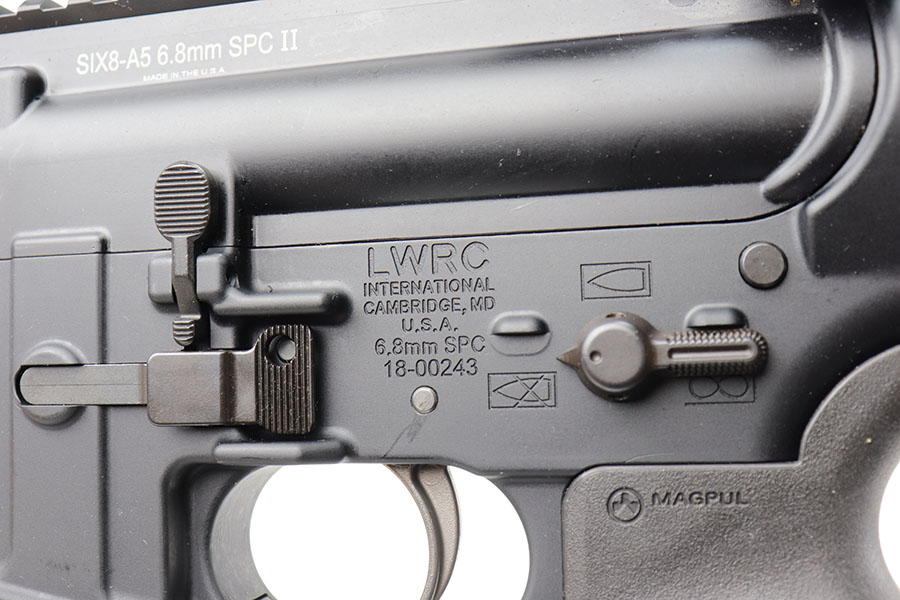 10/23/20 – This is a nearly unfired LWRC Six8-A5 in minty condition, chambered for the 6.8mm SPC II cartridge. The 6.8X43MM SPC II cartridge was developed as a part of the LWRC Enhanced Rifle Cartridge Program to address the deficiencies in terminal performance seen with 5.56x45mm NATO cartridge while allowing the soldier to carry the same number of rounds with a minimal weight penalty. By using a heavier projectile, the 6.8 round offers more impact energy than the 5.56 NATO round across all effective ranges, effectively bridging the gap in lethality between 5.56 NATO and 7.62 NATO. The gun itself has just a minor scuff in the logo on the left side of the receiver, but was fired once and never used again. Features include 16″ cold hammer forged, spiral fluted barrel, adjustable compact stock, proprietary upper & lower receivers optimized for the 6.8 SPC II cartridge, ambidextrous lower receiver, 12″ user configurable rail system, LWRCI enhanced fire control group, birdcage (A2) flash hider, ambidextrous charging handle, ambidextrous sling mount and more. Bore looks minty, all around excellent condition. Has correct, original magazine with 30 round capacity.