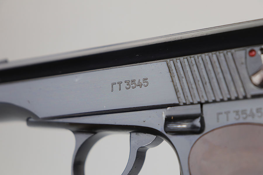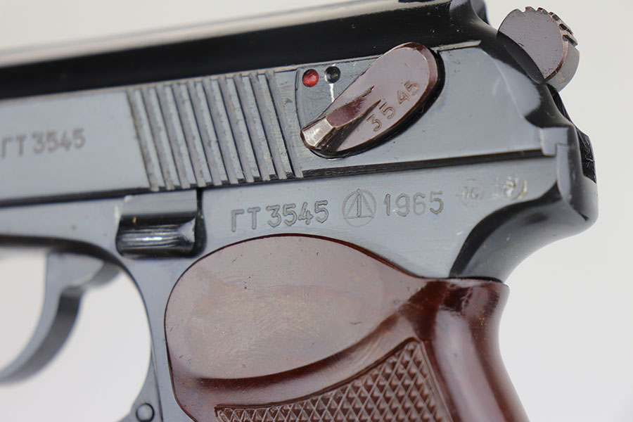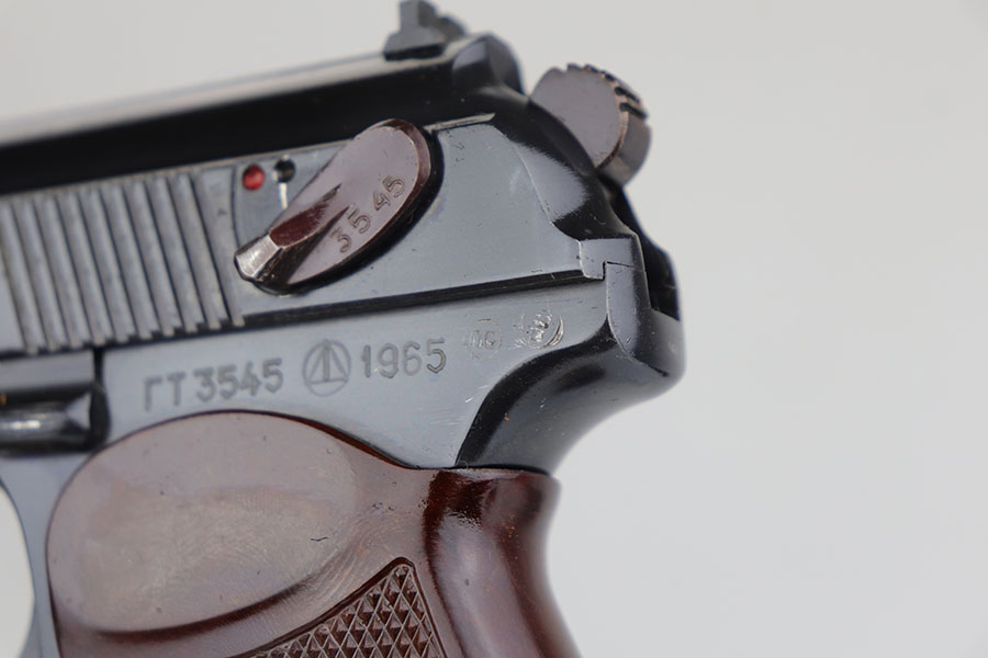 6/17/20 – This is a mint and complete Makarov PM rig with two arsenal renumbered matching magazines. Made in 1965, this pistol features 99% original bluing and no import marks. Minty grips and original holster with cleaning rod. Bore shows hardly any sign of use.