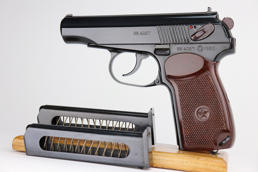 4/30/21 – This is a mint Makarov PM from 1962 with both of its original, matching magazines. The gun has just a tiny hint of high edge wear and a mint bore, looks nearly unfired. No import marks. Frame is dated 1962. Beautiful grips with no defects. Can’t be upgraded.