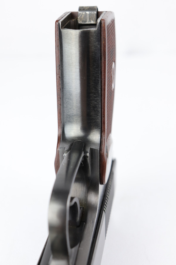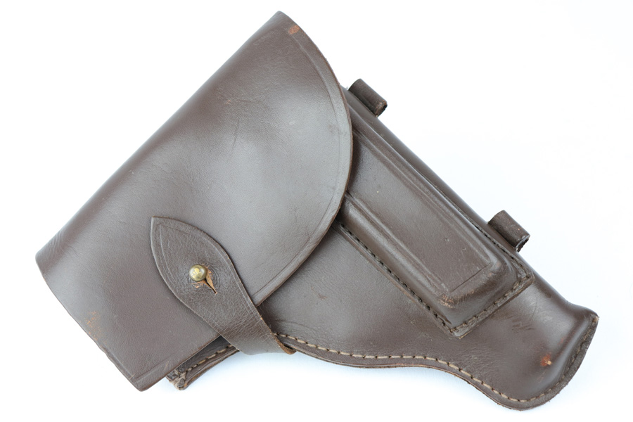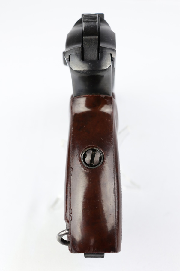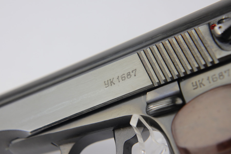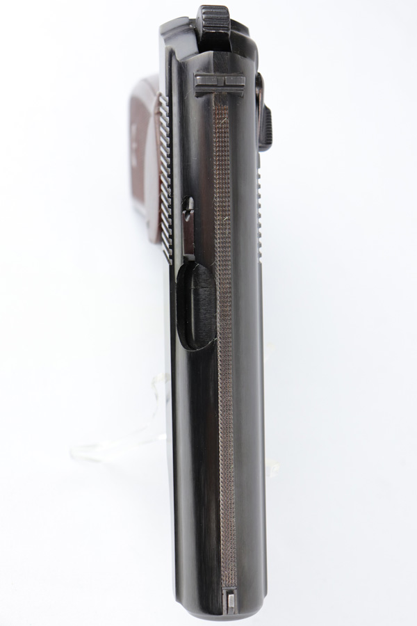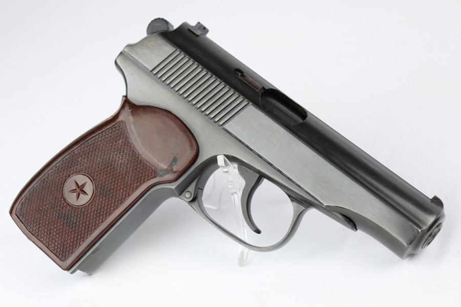 11/1/18 – This is a nearly unfired Russian military Makarov pistol in mint condition with a 1983 dated holster and 2 matching magazines. The gun looks new and was made in 1983. There is just very minor muzzle wear from the holster. It is NOT import marked. Makarov pistols had been produced in Russia in their original configuration since late 1950s with 1983 being the last year of production for the first variation guns. Very similar to Walther PP mechanically, it was chambered for a very potent Makarov 9x18mm caliber, which was closer to 9mm Para. The gun was very robust in construction in order to allow for a simple blowback design to handle such a potent load. At the same time, the gun was fairly light with excellent ergonomics. Used for many years by Russian military and police, many of these guns were imported into US in the 80s and all were import marked. Very few specimens are found that are not import marked and were probably brought into the country through diplomatic channels. Excellent bore and grips.