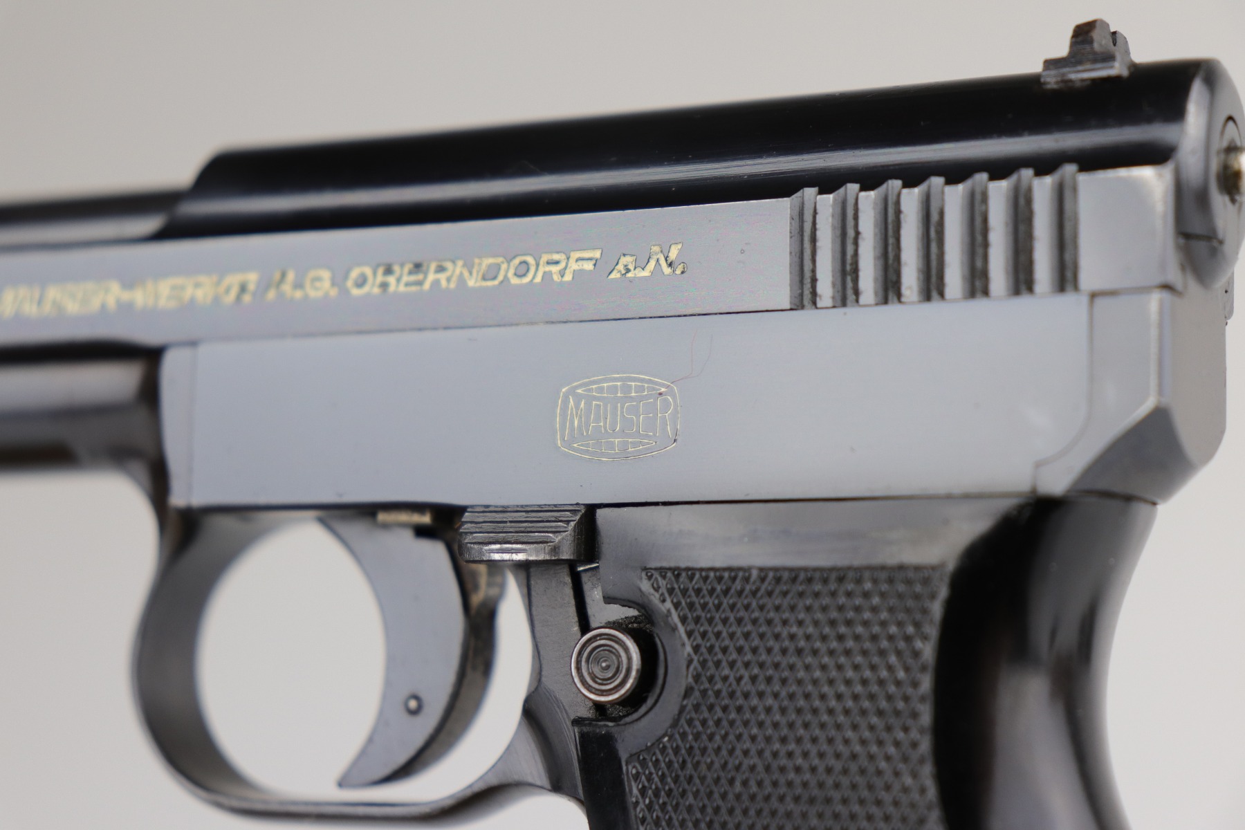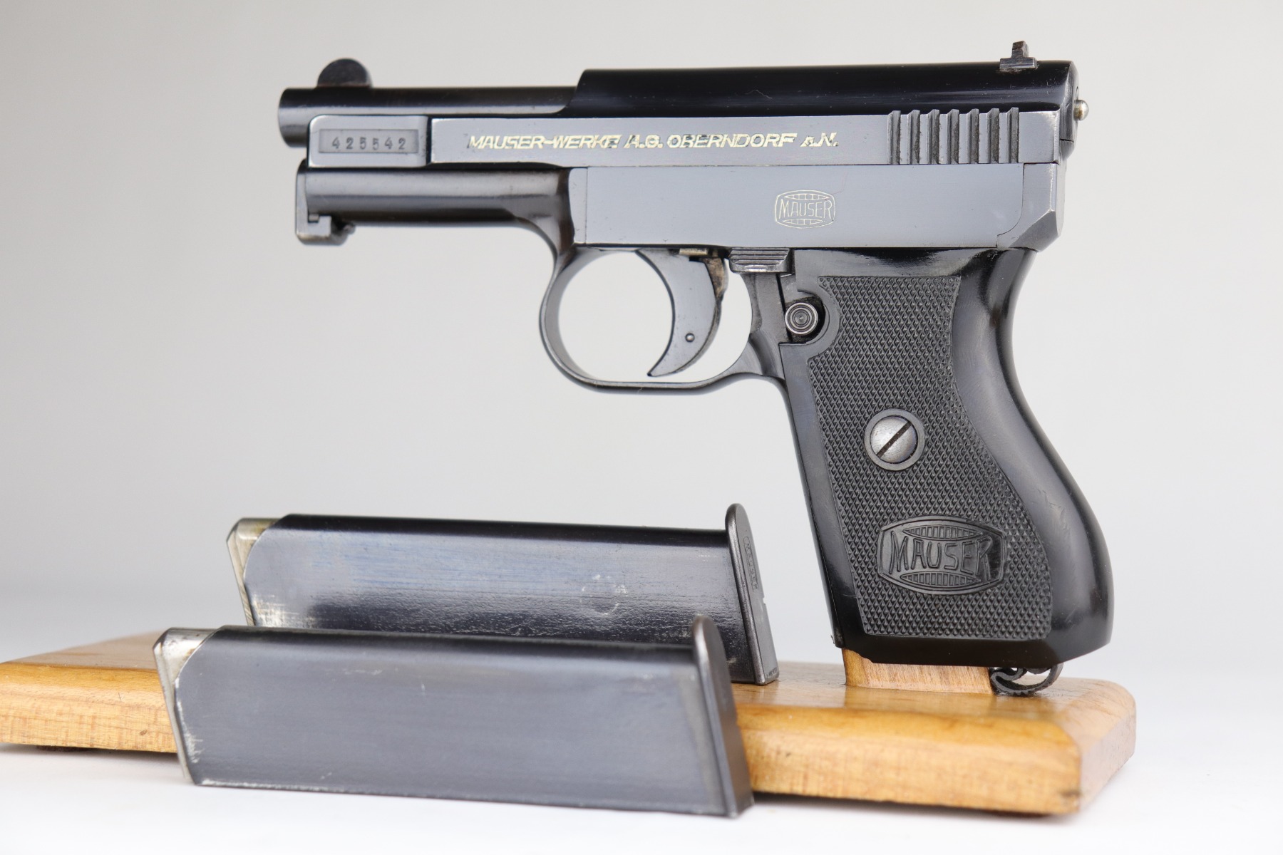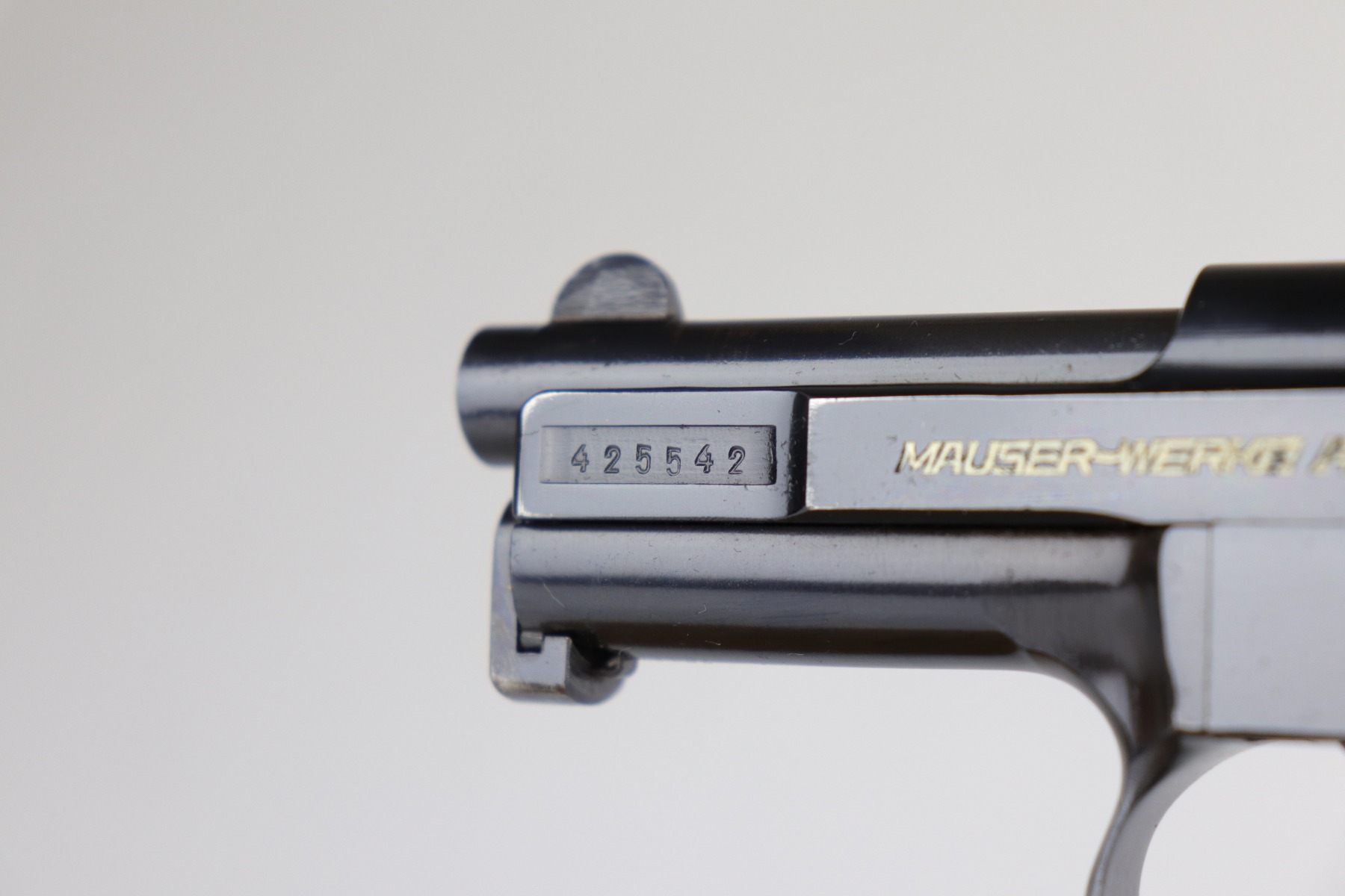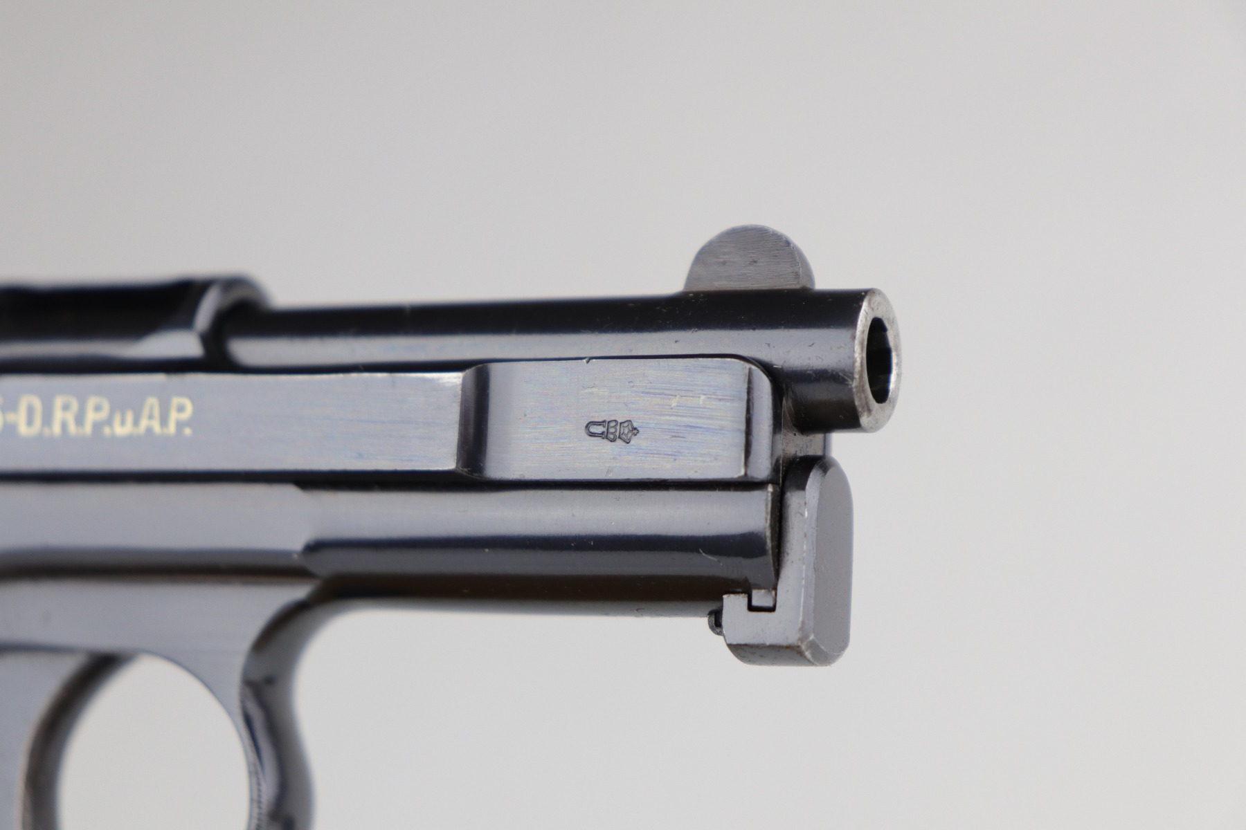 5/15/20 – This is a mint Mauser model 1910/14 with virtually zero finish loss. All matching and original. From the serial, this is most likely a fourth variation 1910/14 made in the mid 1930’s. Bore is shiny with strong rifling. The grip is in excellent condition, but has a very small chip in the bottom left-hand corner on the left side (typical). The gun is fully functional, but the slide sticks a little bit when sliding. It comes with an original holster in excellent condition and two proper magazines.