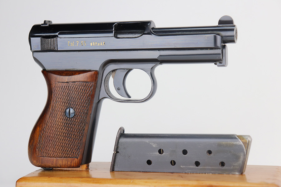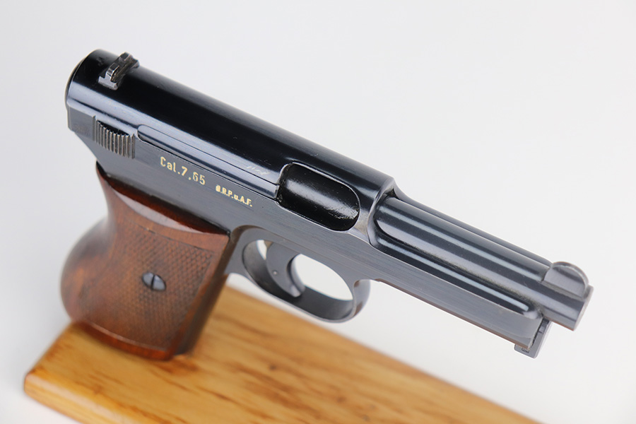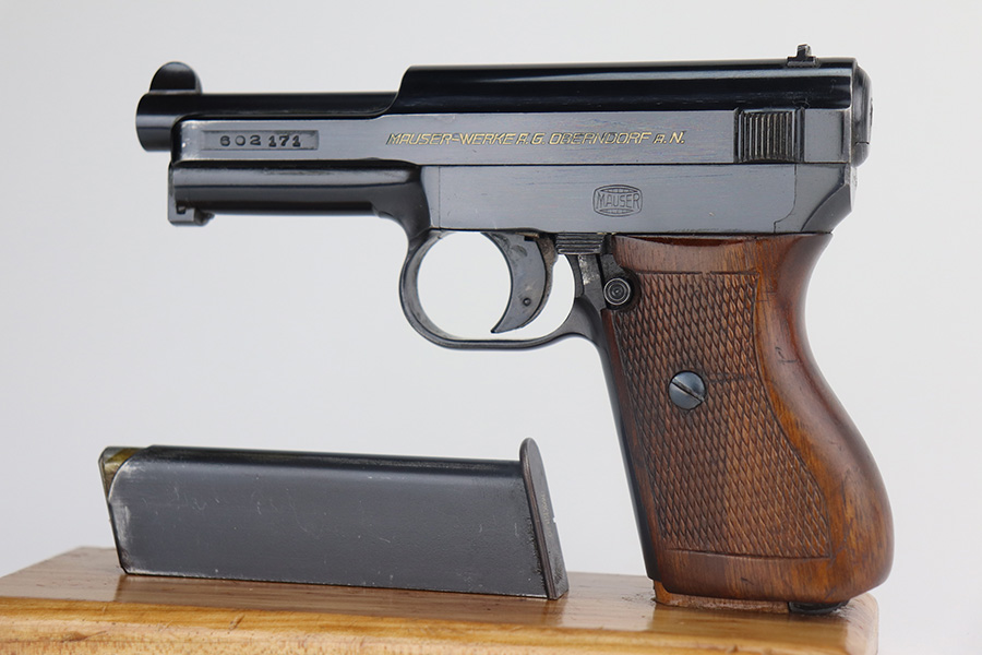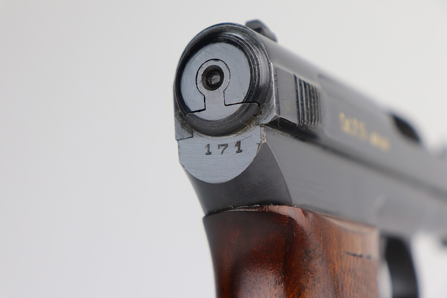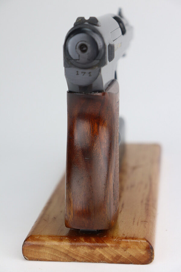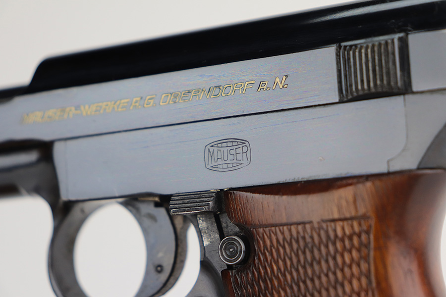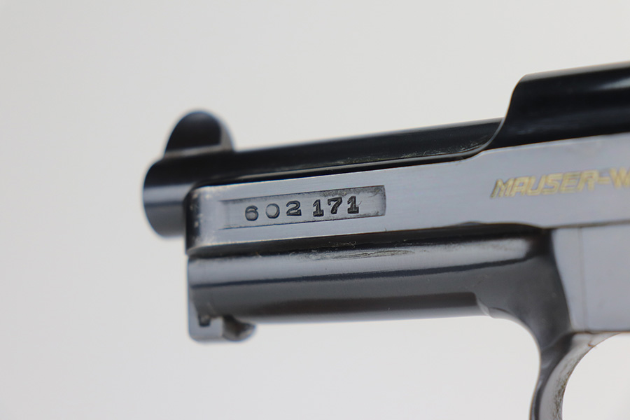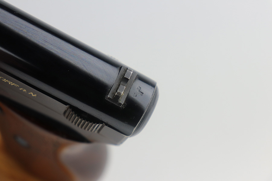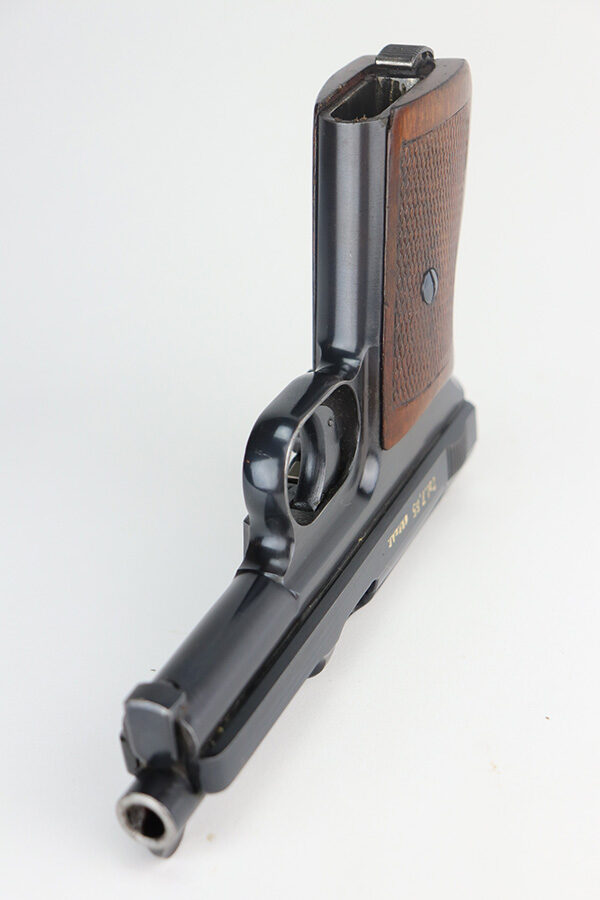 5/25/21 – This is a mint example of a Mauser Model 1934 manufactured in the 1940’s. It is all matching and has the proper “Eagle N” proofs. It is in mint condition, retaining more than 98% of its original bluing. There is just a hint of wear around the muzzle and one small dot of wear on the left side of the slide. Comes with an excellent wood grip and a proper magazine. Minty bore.