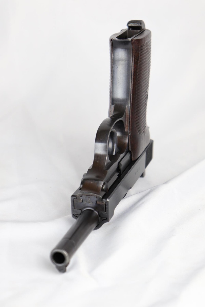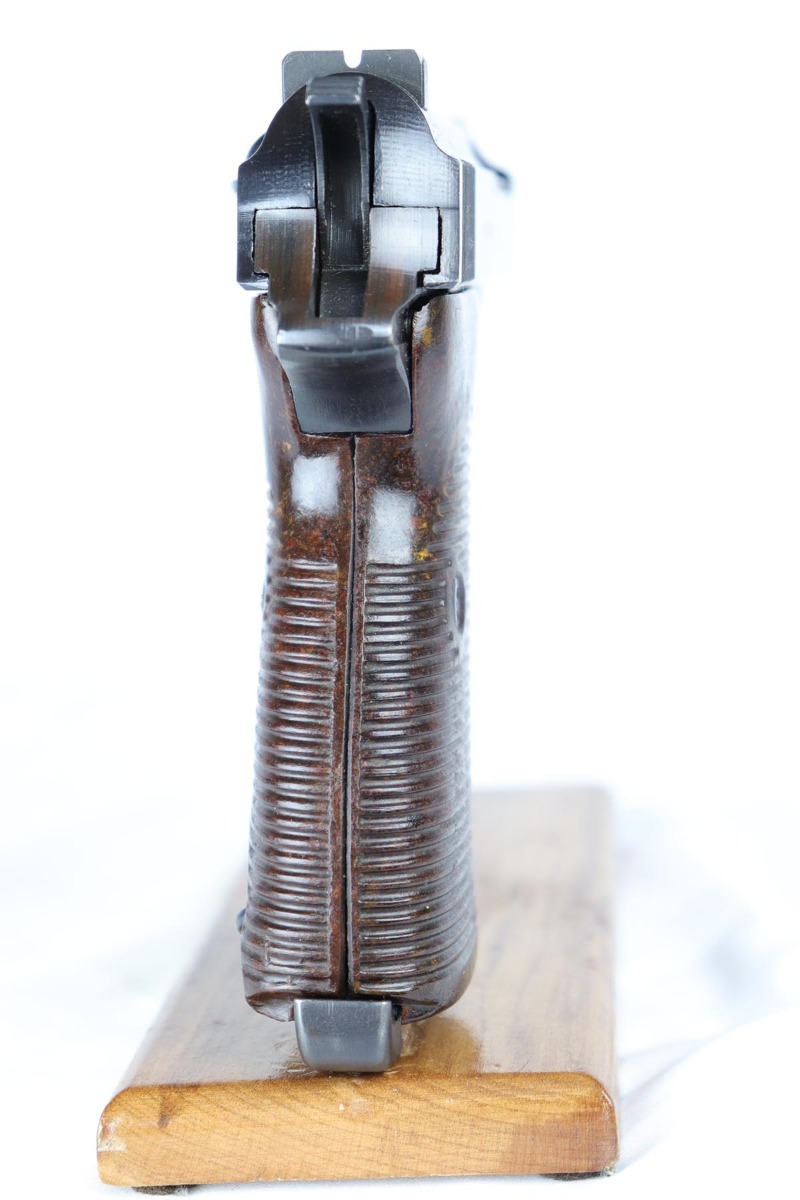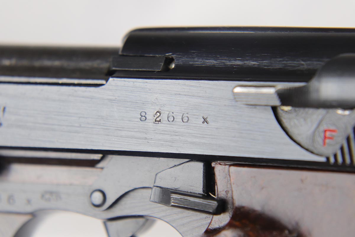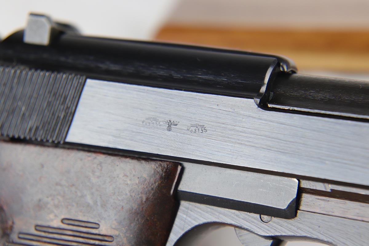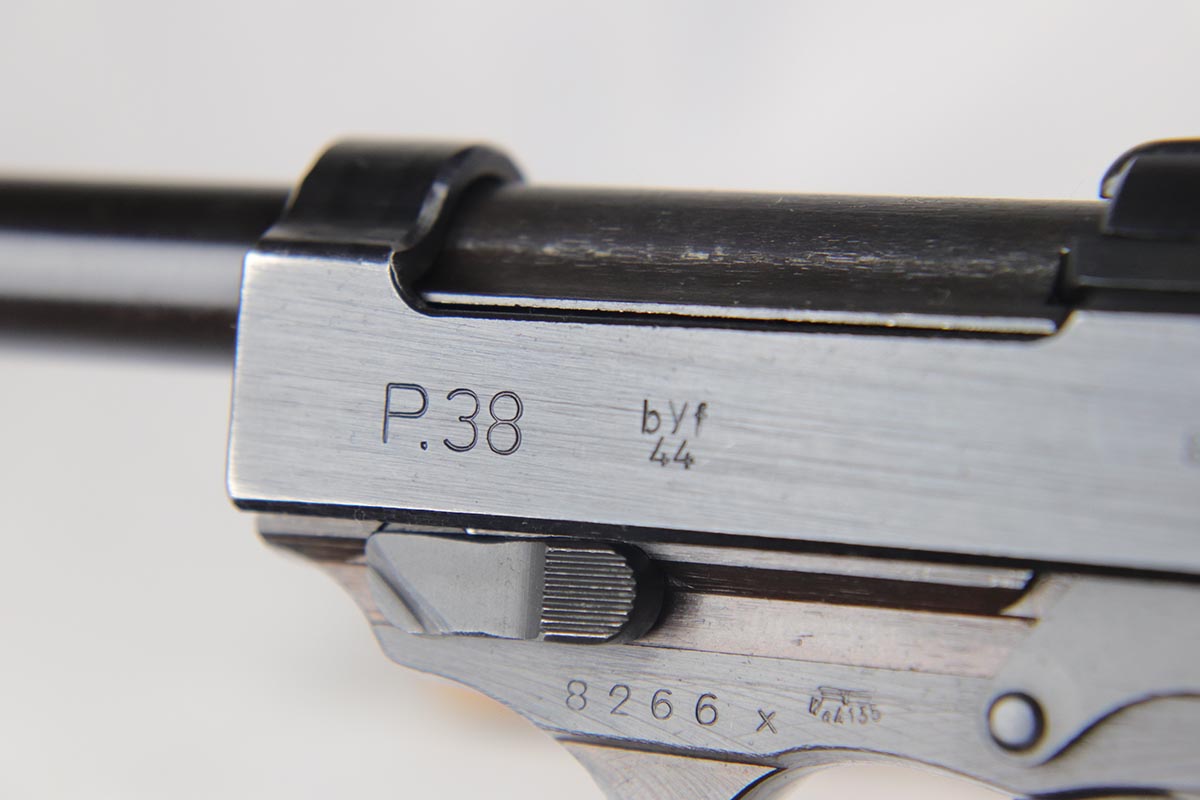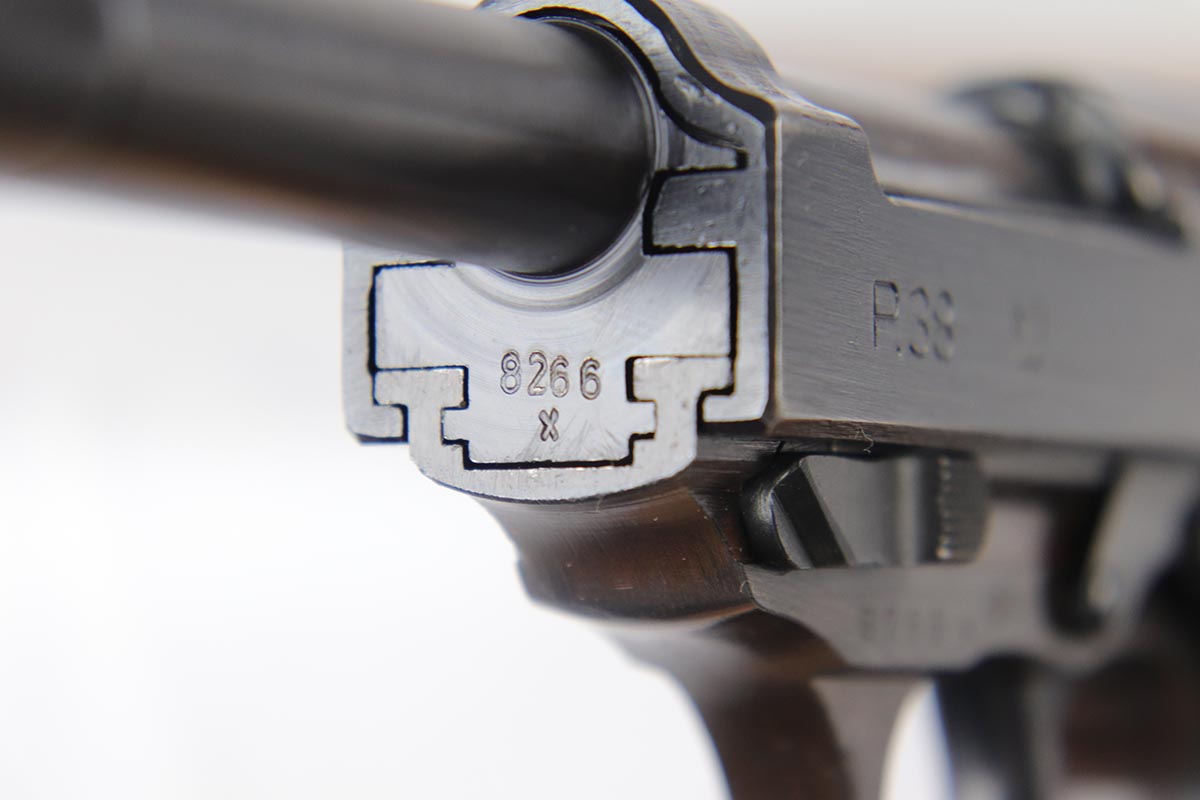 6/1/18 – This is an all original and matching Mauser P.38 in mint condition. Made in 1944, it has only the slightest edge thinning and the bore looks like it’s never been shot. Excellent reddish grips.