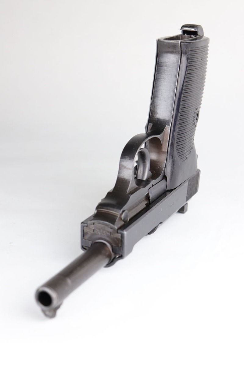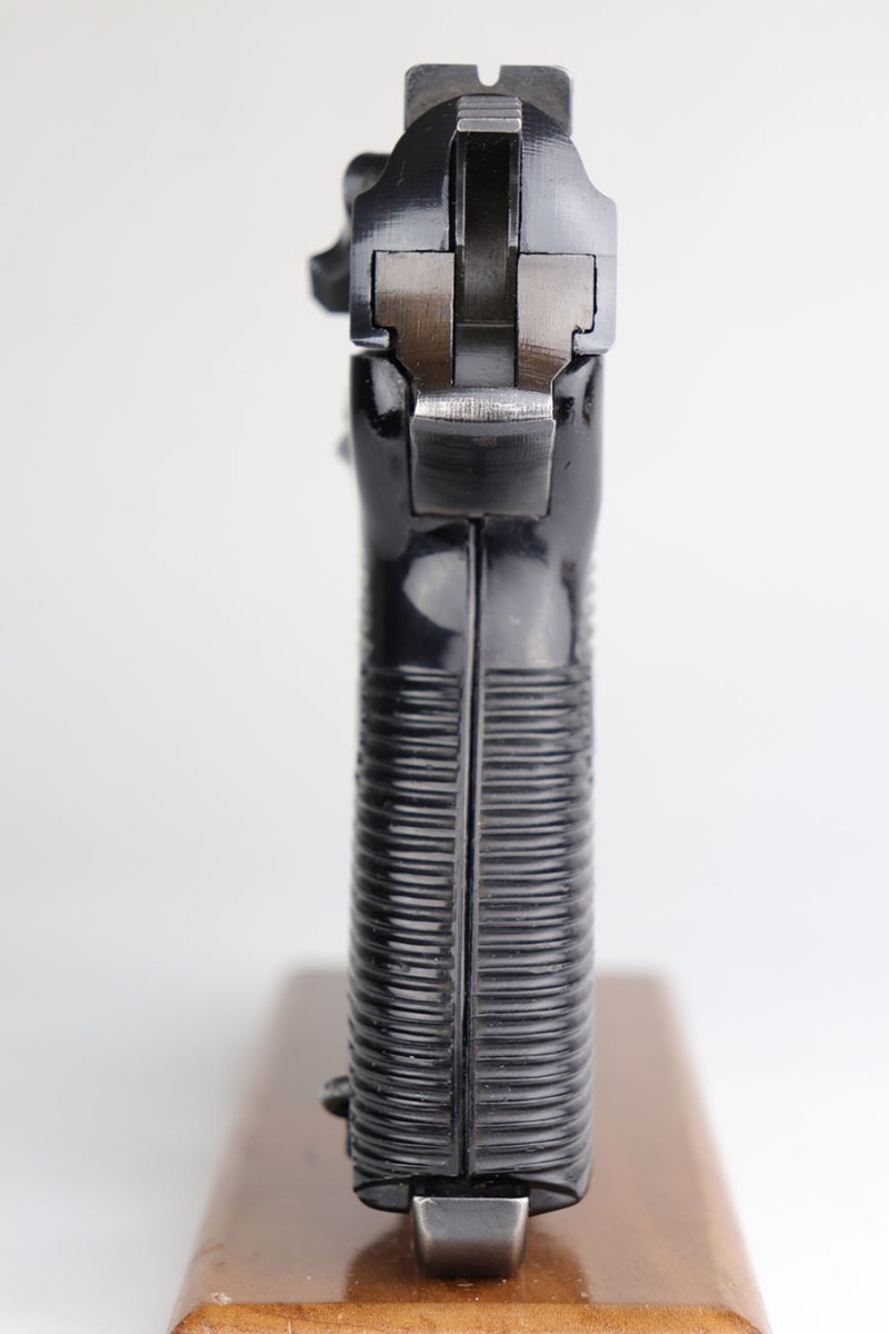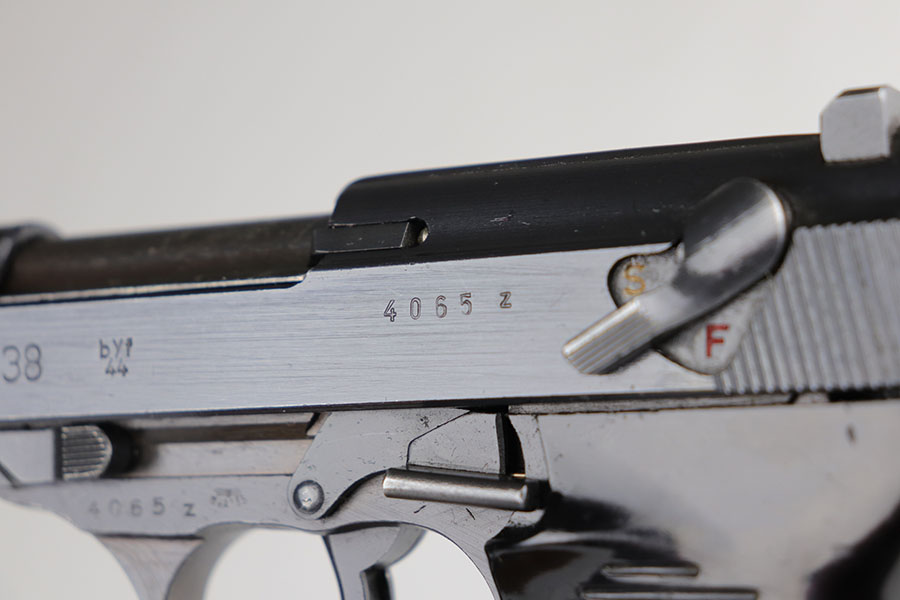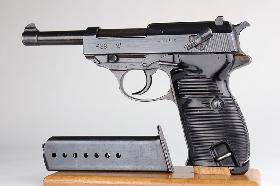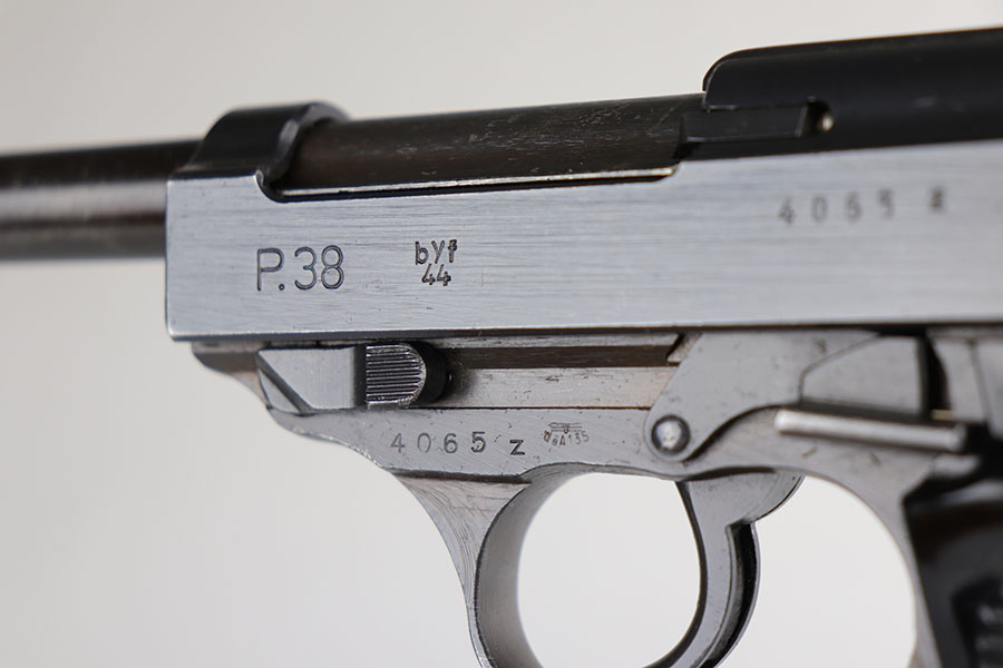 4/15/20 – This is a mint Mauser P.38 from September of 1944, and it is all matching and original. There’s a hint of muzzle wear, but the pistol is otherwise minty. Bore hardly looks used, and the grips are in excellent condition. Proper mechanics, including de-cocker. Mauser magazine.
