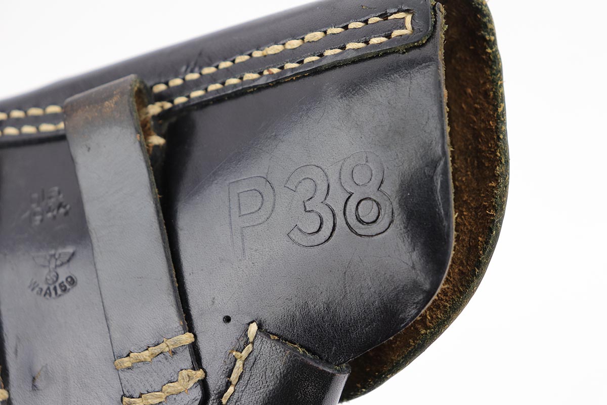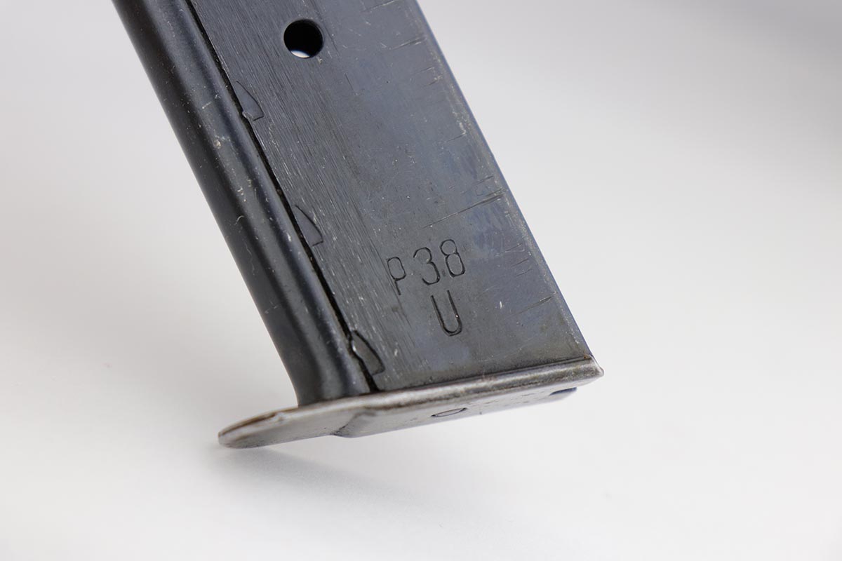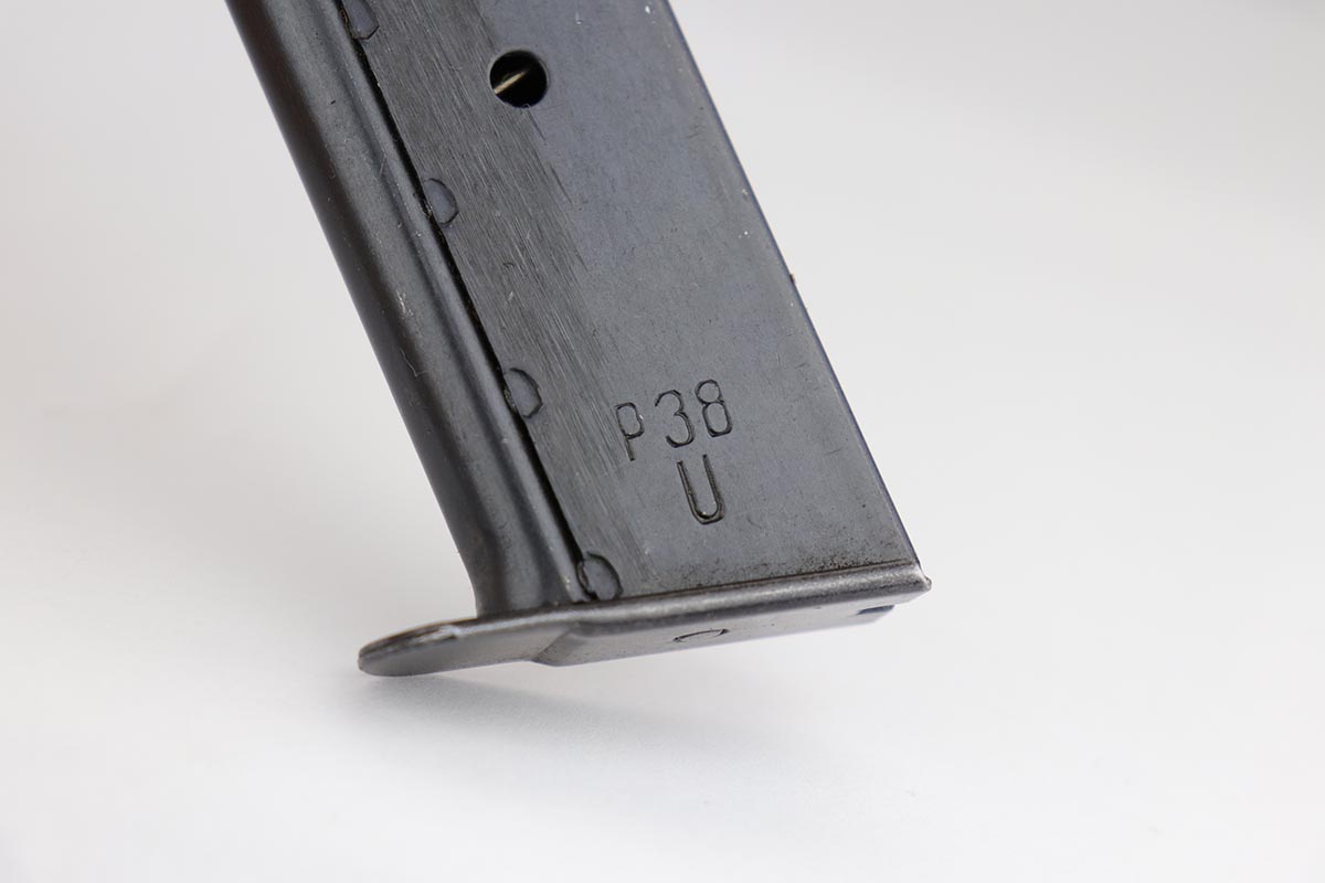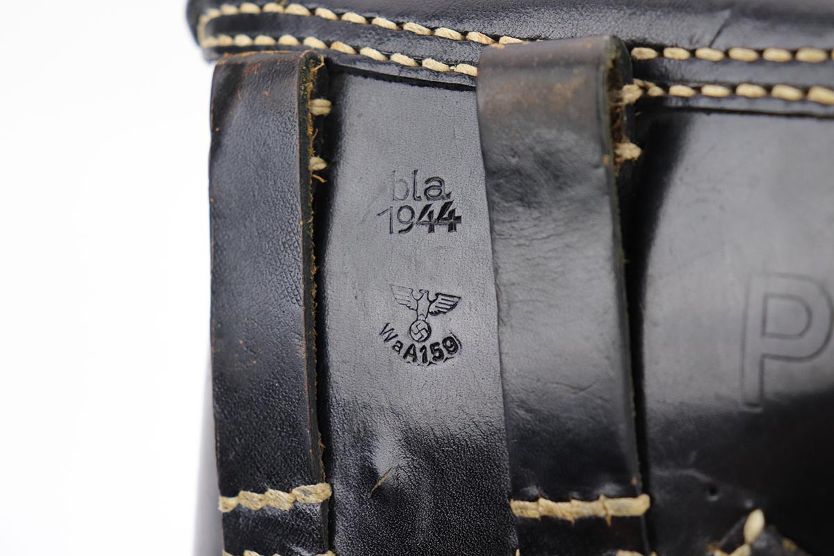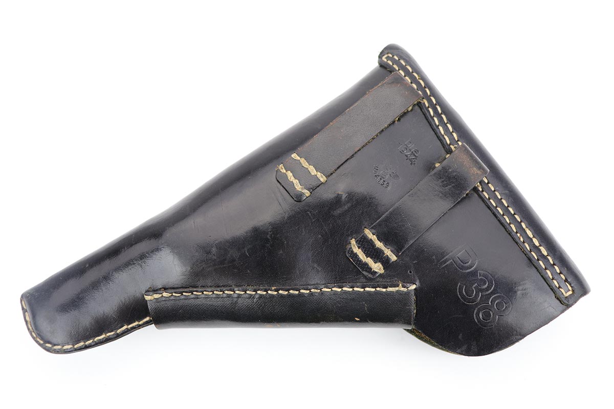 12/4/19 – This is a mint Mauser P.38 rig from October of 1944. The gun has 99% of the original blue, with just minor hints of edge wear from the holster. All matching numbers. Minty bore and excellent grips. The rig includes a total of two magazines, both of which are scarce and desirable ‘U’ marked examples. Rig is complete with a 1944 dated holster, with ‘bla’ maker mark and sharp WaA159 proof.