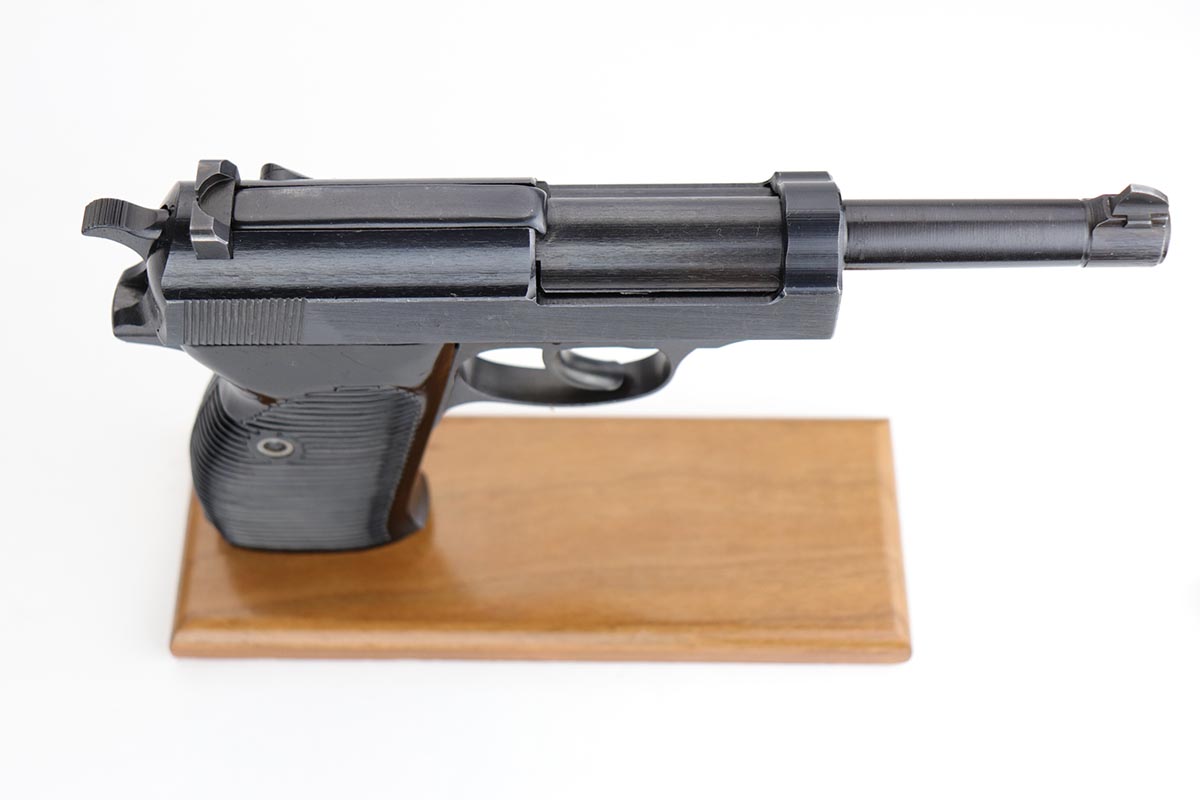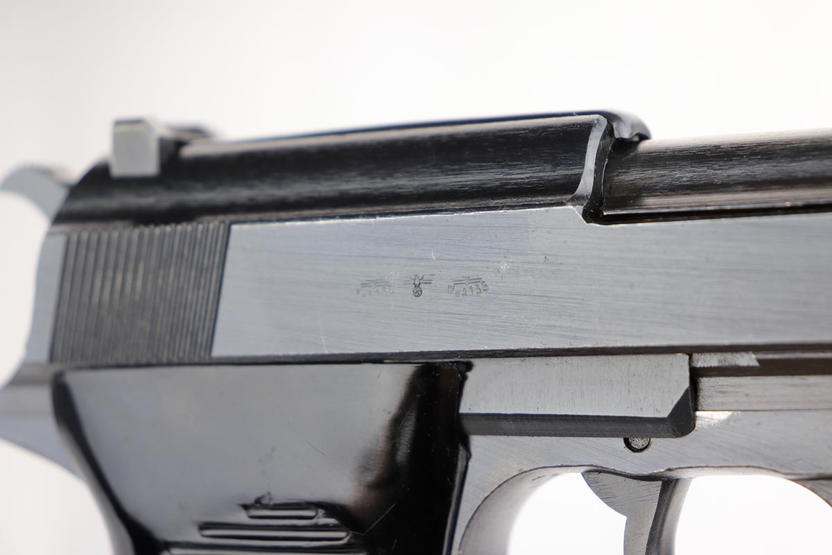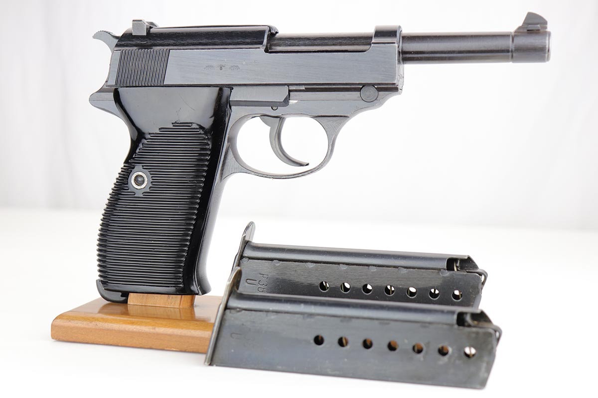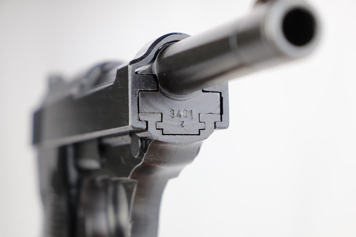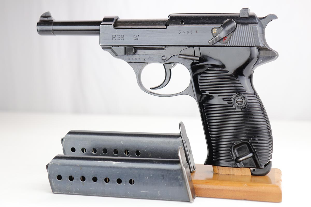 12/4/19 – This is a mint Mauser P.38 rig from October of 1944. The gun has 99% of the original blue, with just minor hints of edge wear from the holster. All matching numbers. Minty bore and excellent grips. The rig includes a total of two magazines, both of which are scarce and desirable ‘U’ marked examples. Rig is complete with a 1944 dated holster, with ‘bla’ maker mark and sharp WaA159 proof.
