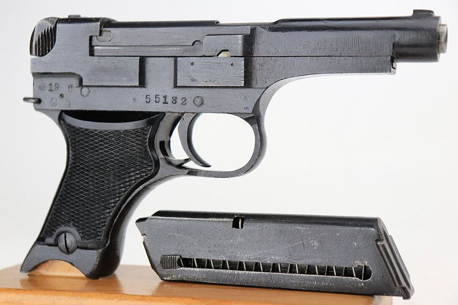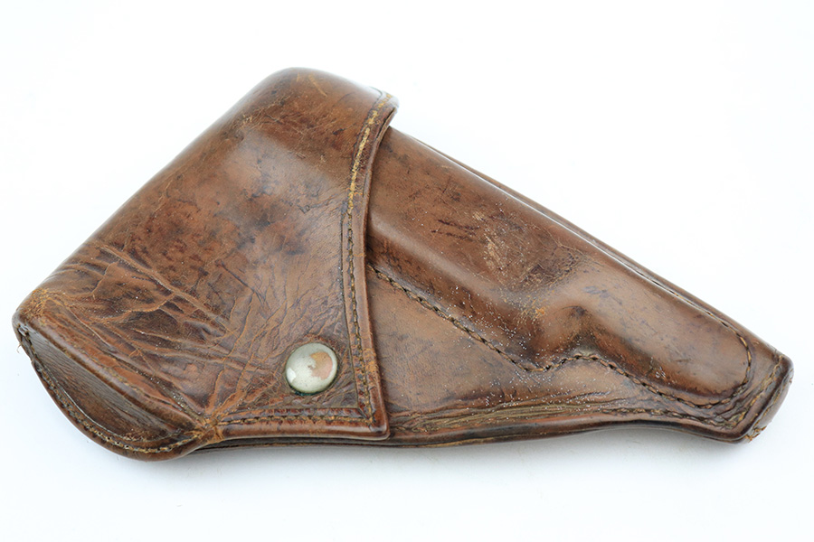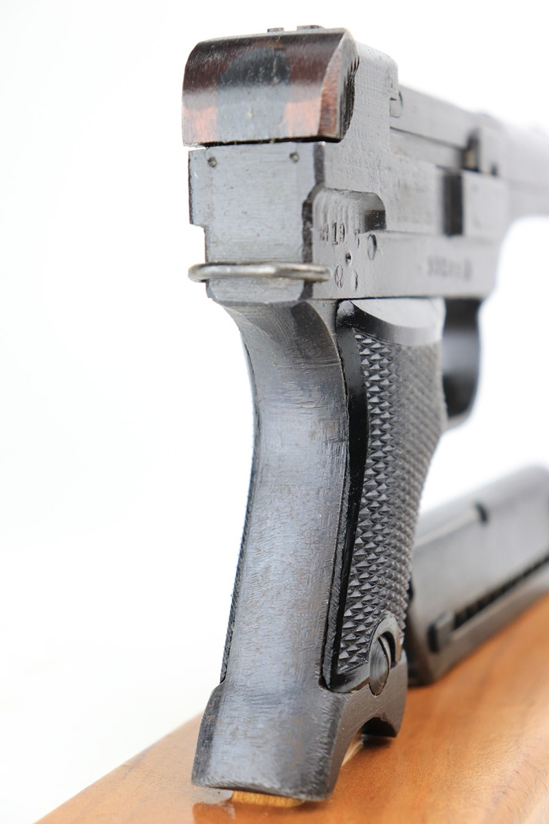 5/23/22 – This is a mint example of a Nambu Type 94 issued to the Japanese military in June of 1944. It is all matching and comes as a rig with a period-correct leather holster and one original matching-numbered magazine. The gun has retained virtually all of its bluing with no obvious signs of wear. Comes with excellent period-correct black bakelite grips. Mint bore.