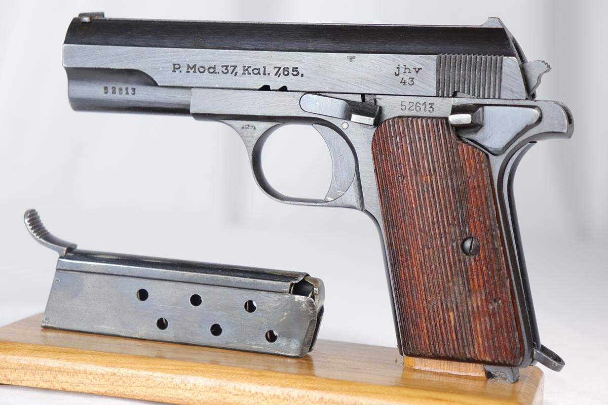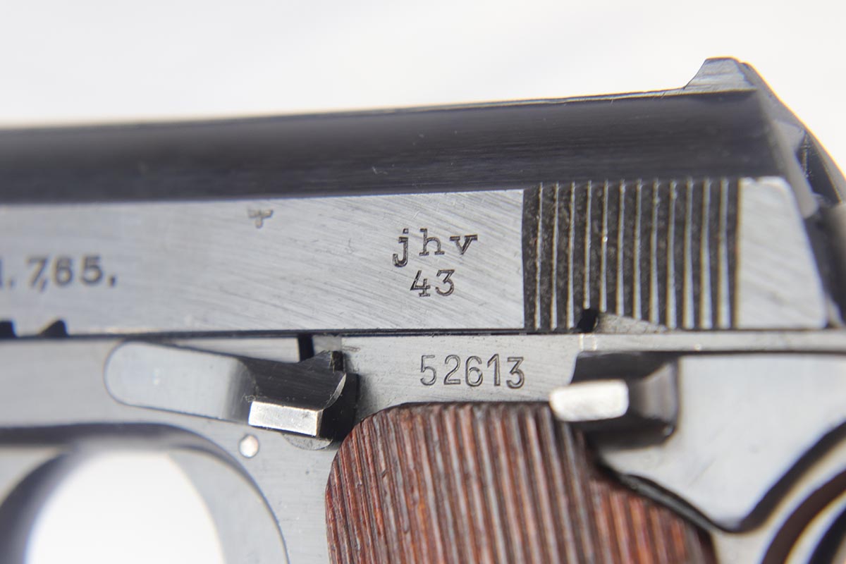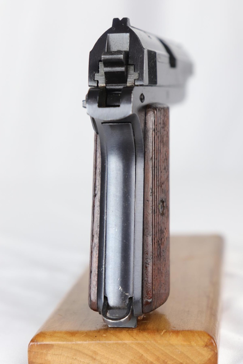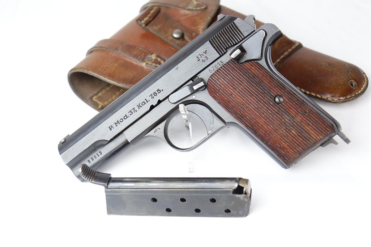 9/10/18 – This is a mint example of an original and matching Femaru Model 37 that was issued to the Nazi Army in 1943. The pistol retains 99% original blue with only minor holster wear on the high edges. It still has the original matching numbered magazine. The holster is maker marked and 1942 dated. Pistol has a nice, shiny bore and excellent original grips.