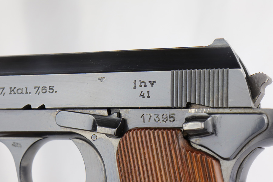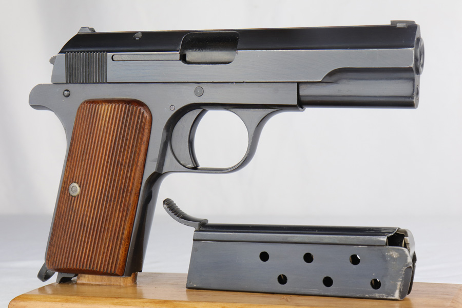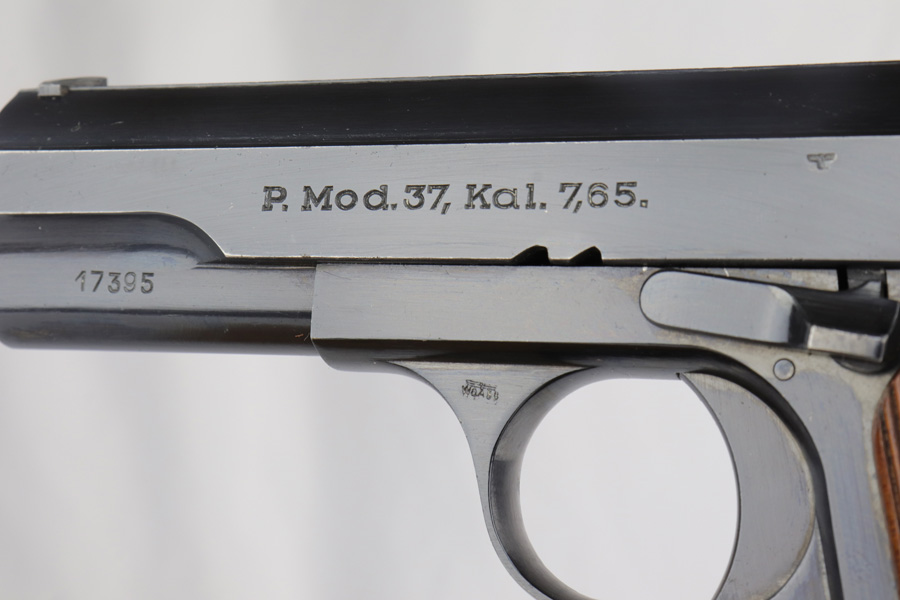 2/28/19 – This is one of the finest examples we’ve ever offered of a Nazi issued Femaru Model 37 pistol, made in 1941, with the original matching magazine. The gun is all matching and retains 99% original blue with only minor muzzle and high edge thinning. Terrific bore and grips. Likely an example that cannot be upgraded any time soon.