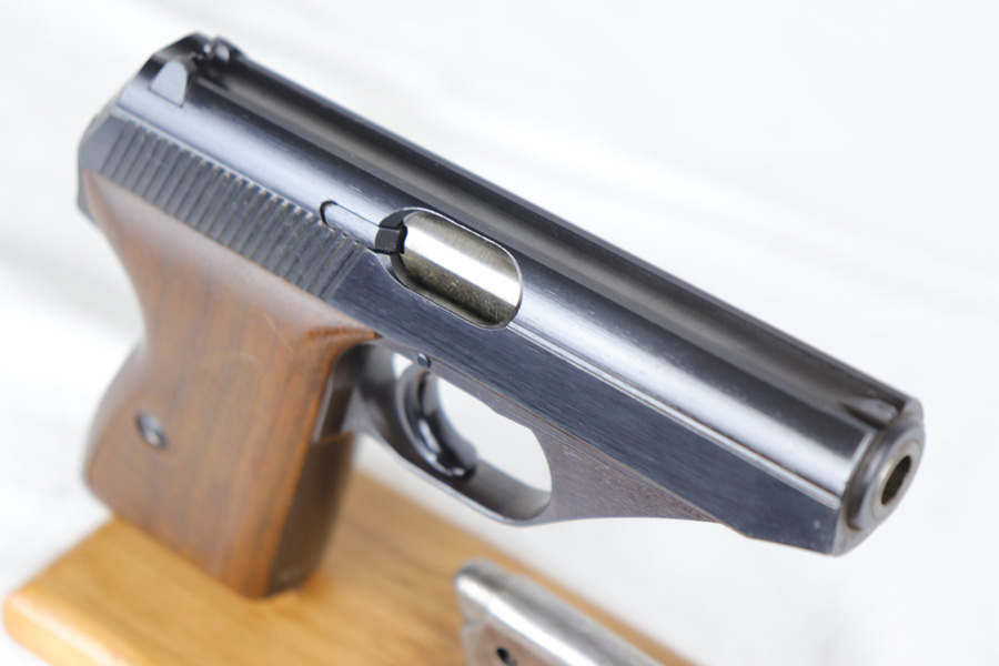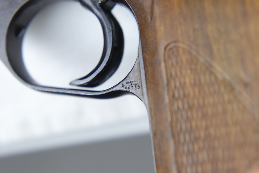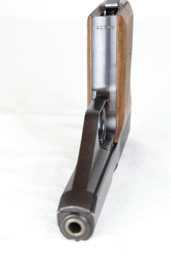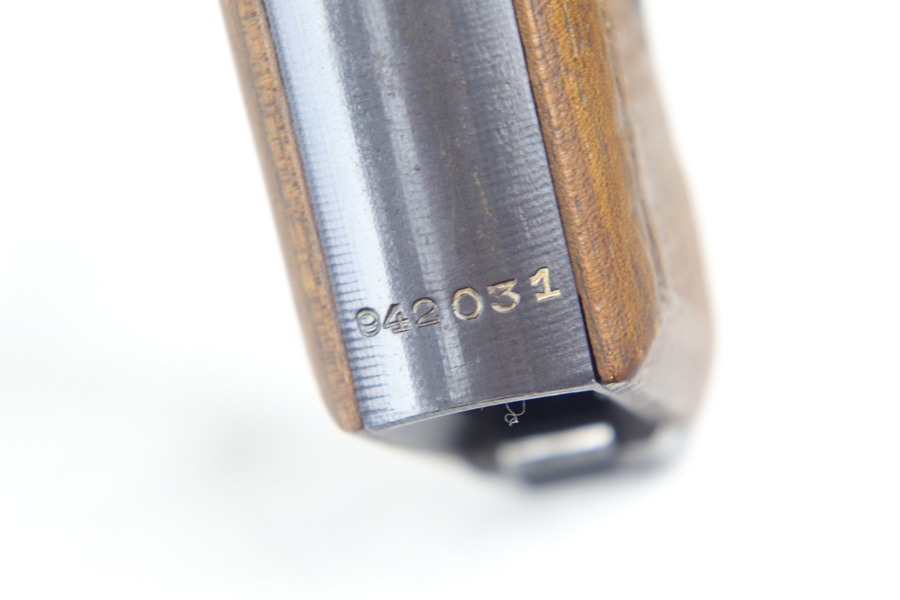 10/24/18 – This is a Nazi issued Mauser HSc in minty, original condition. All matching numbers and 99% original blue remaining, showing only minor edge wear. Blank-bottom magazine. Nice grips, though the left panel does have a thin gouge in it. Excellent bore.
