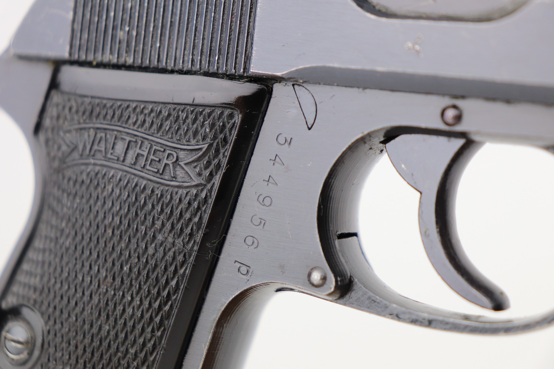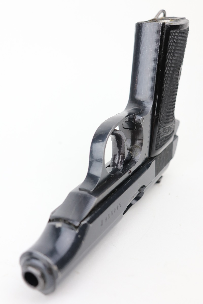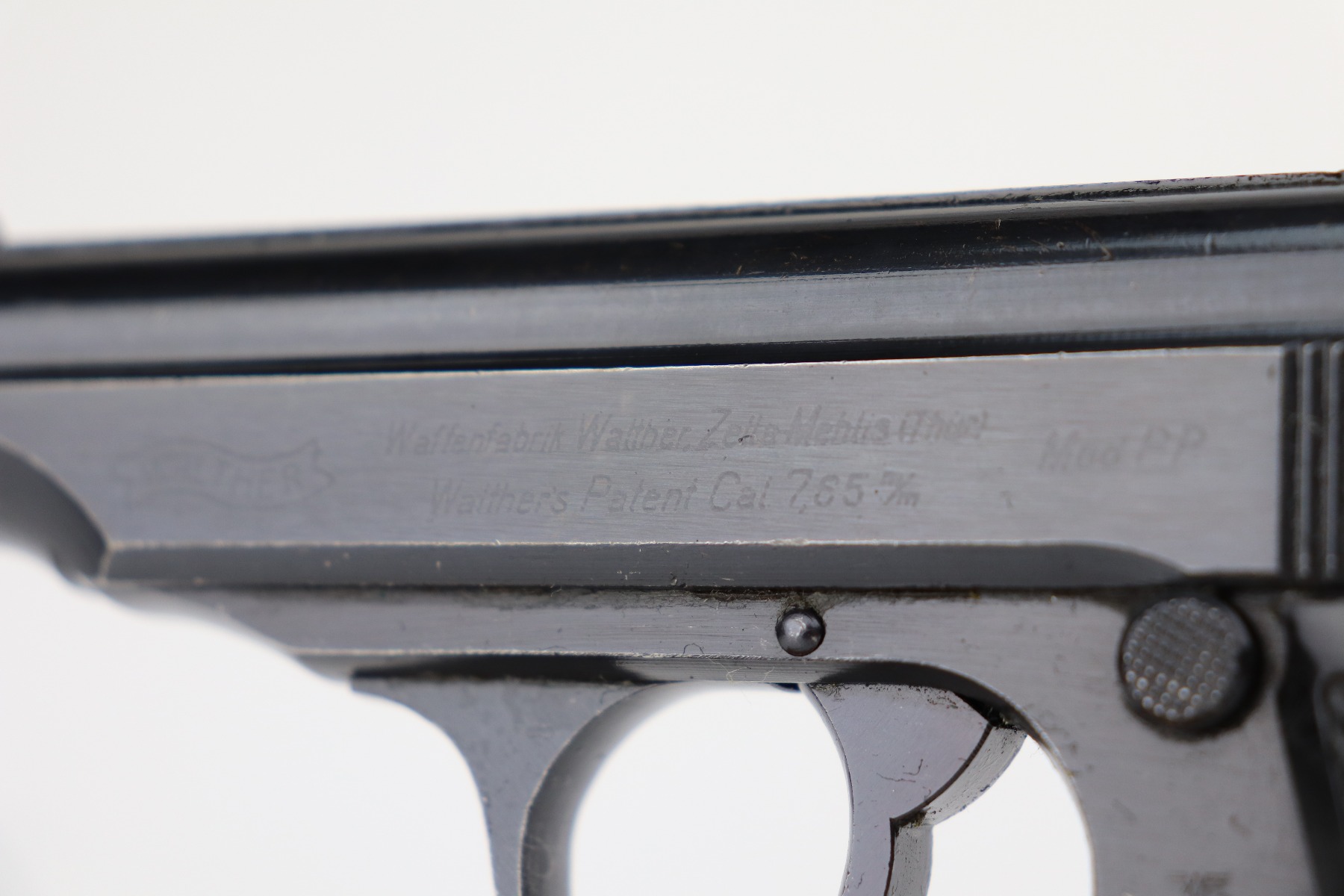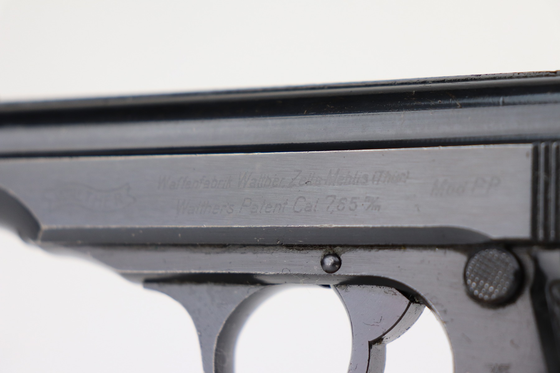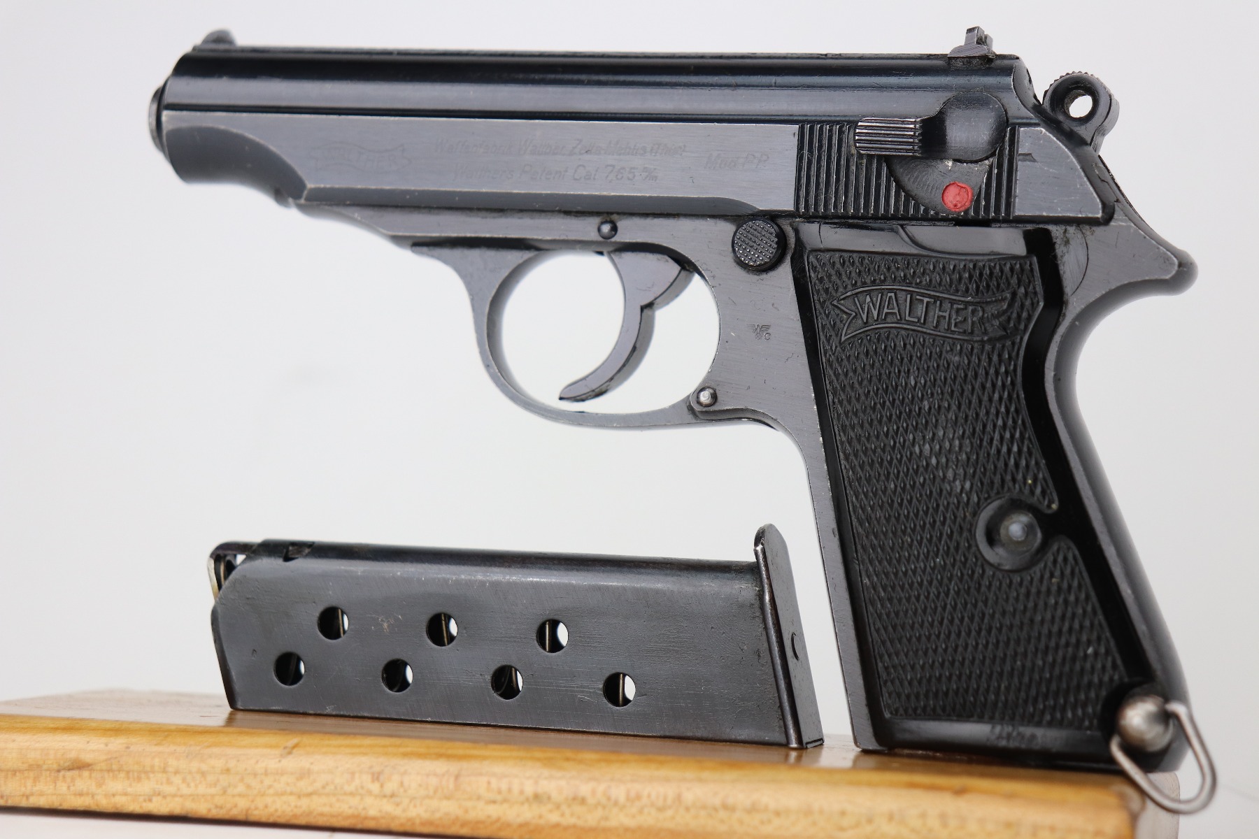 3/31/21 – This is a mint example of a Walther PP issued to the Nazi police force in 1944. It is all matching and has the proper police “Eagle C” proof. A lanyard ring was added to the base of the frame, likely after the war. The gun has retained more than 98% of its finish. There are just a few very light handling marks here and there. Comes with excellent grips and a proper wartime magazine. The bore is near-mint.