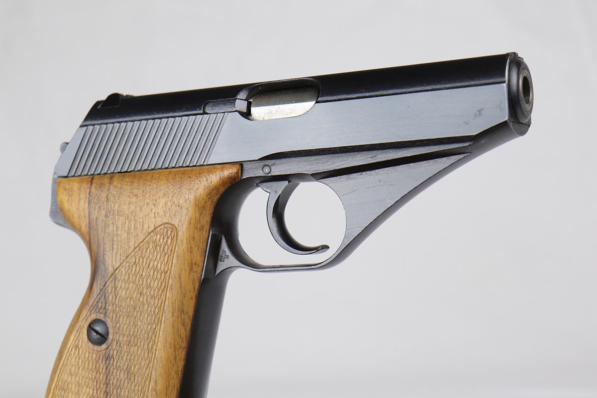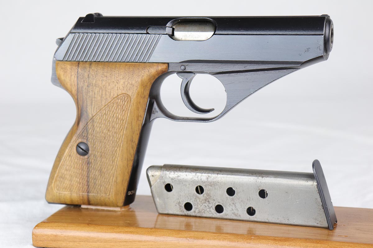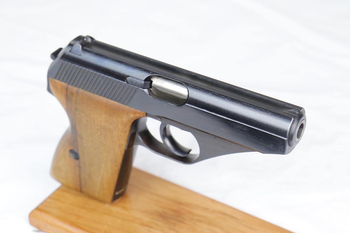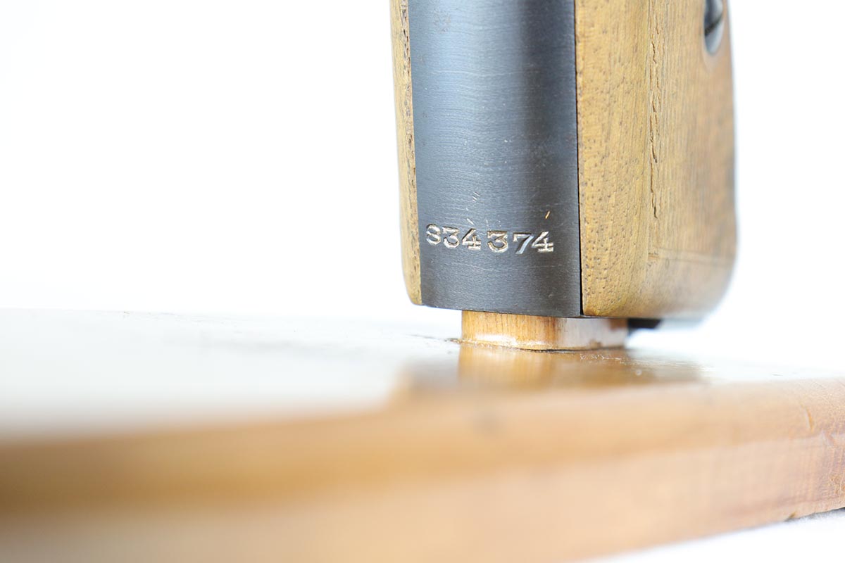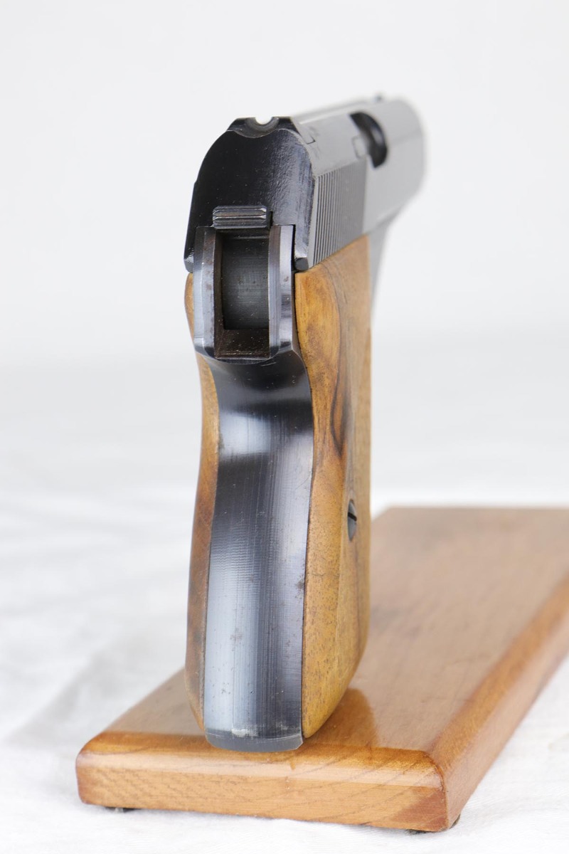 3/23/18 – This is a beautiful example of a Police issued Mauser HSc. The Eagle/L Police inspection stamp can be seen on the left side of the trigger guard. The original finish is a beautiful 99% with just a spot of wear on the back strap. The wood grips are as clean and minty as the rest of the gun. The slide, frame and barrel are all matching. The bore is as minty as the rest of the gun. Comes with a correct wartime magazine.