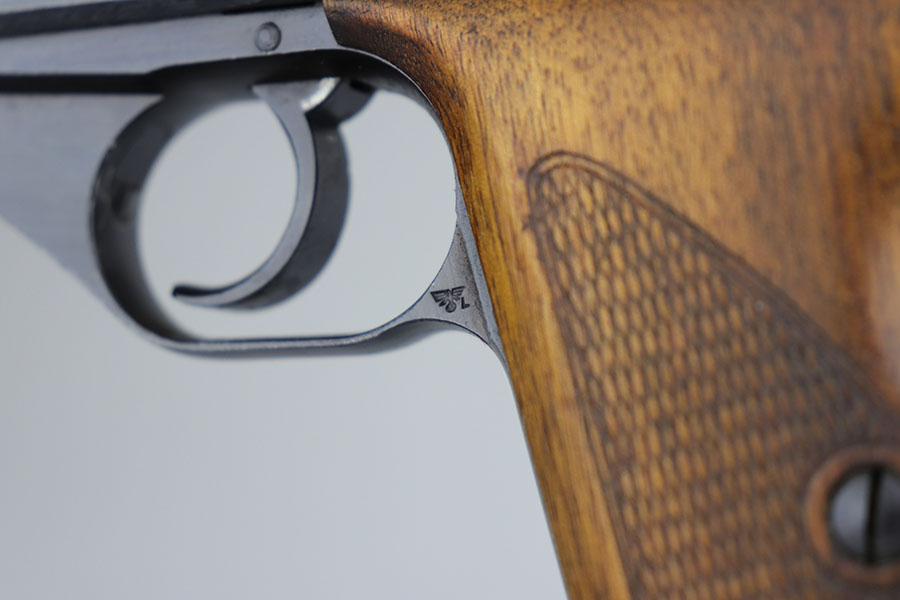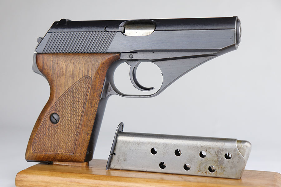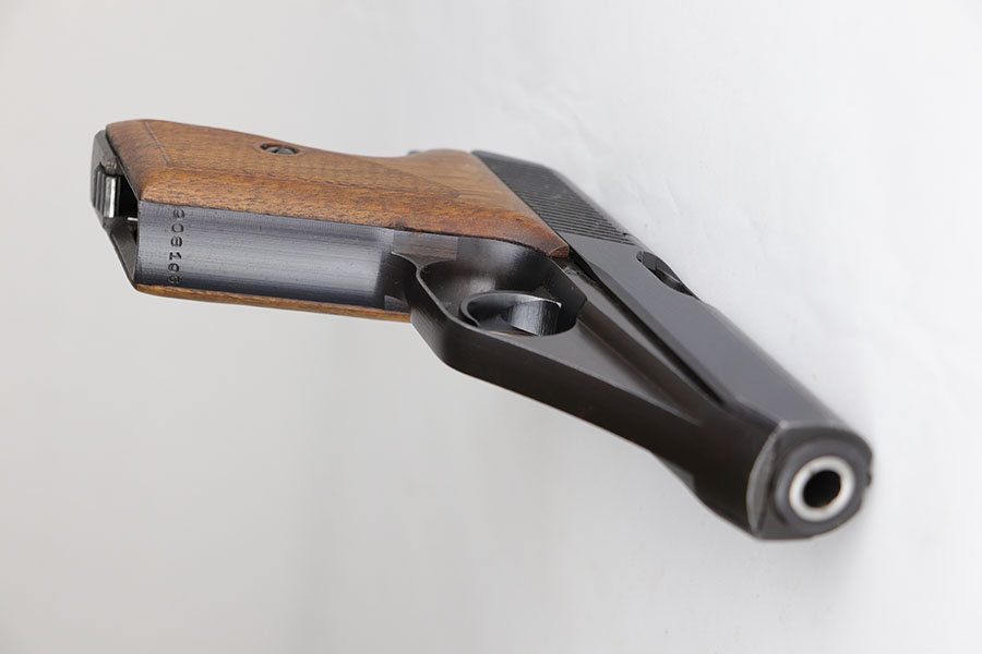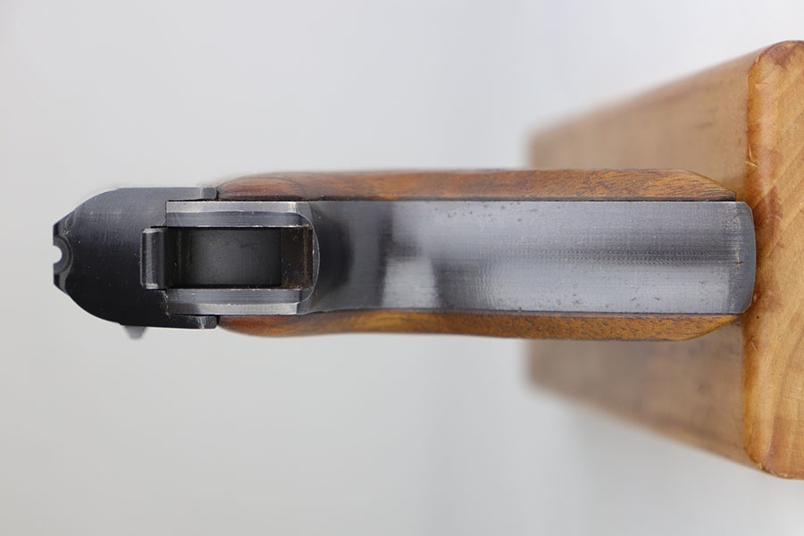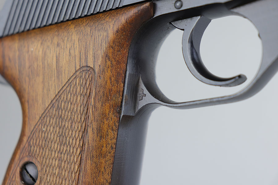 7/13/20 – This is a minty Police Mauser HSc from 1944. It’s all matching and original with 99% of the blue remaining. Just a hint of muzzle wear and very slight finish loss on the bottom of the back strap. Police Eagle/L marking on left side frame. Minty bore. Half-moon magazine. Excellent grips.