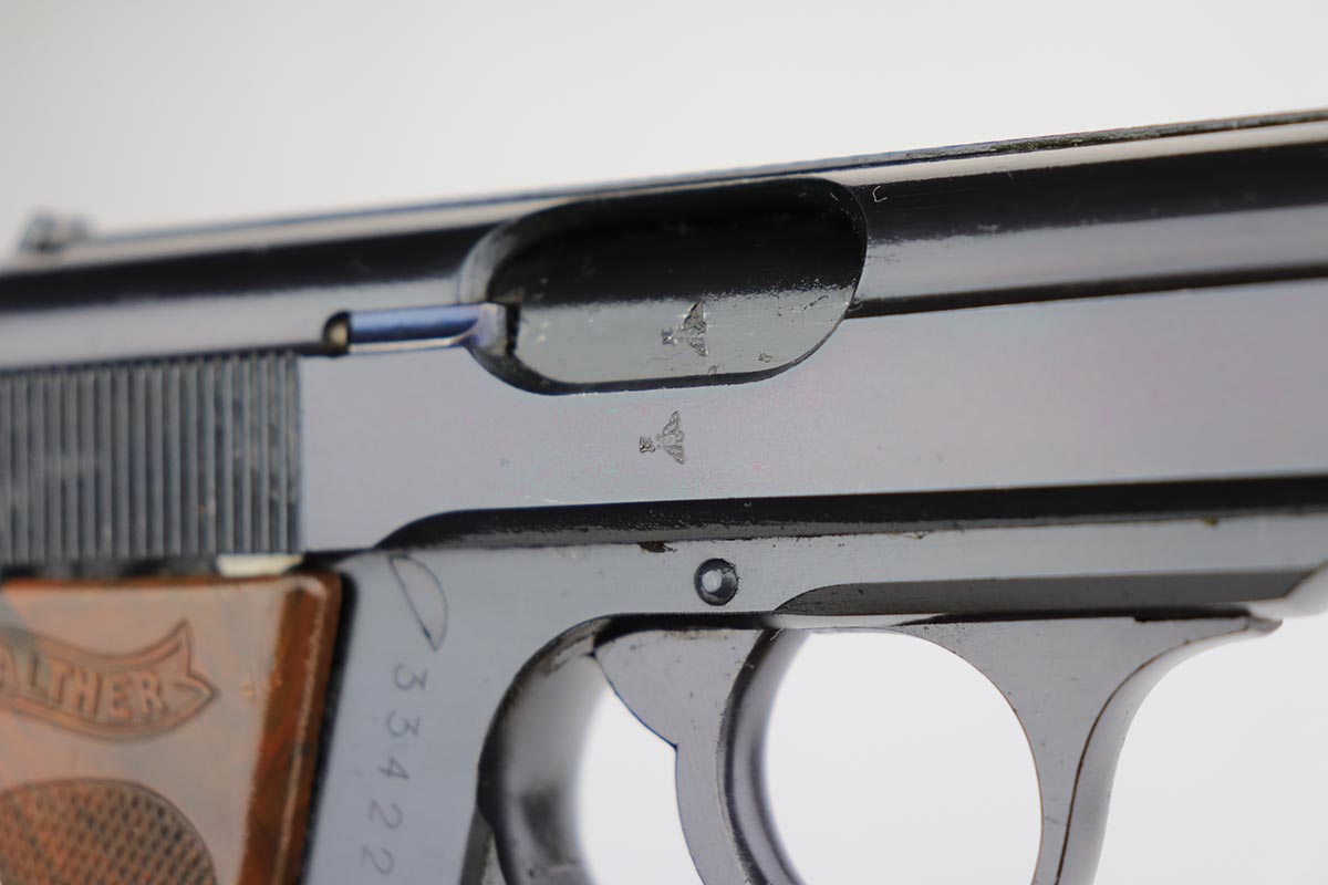 12/16/19 – This is a mint Police Walther PPK that was manufactured in 1941. Slightly scarce example as it has Eagle over N proofs but a high-polish finish. The finish is mint, as is the bore, and the condition of this pistol just cannot be beat. We’ve had many minty Police PPKs, but never one quite this perfect. The only “flaw” would be minor handling wear on the grip.