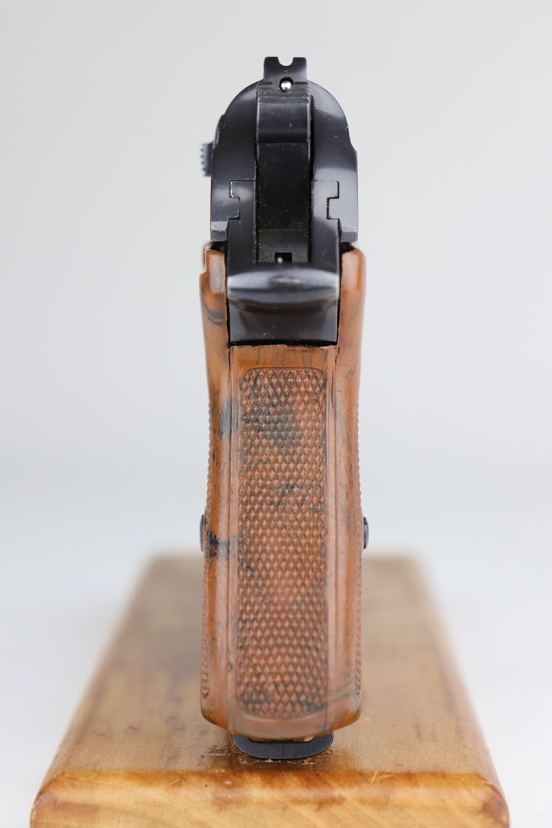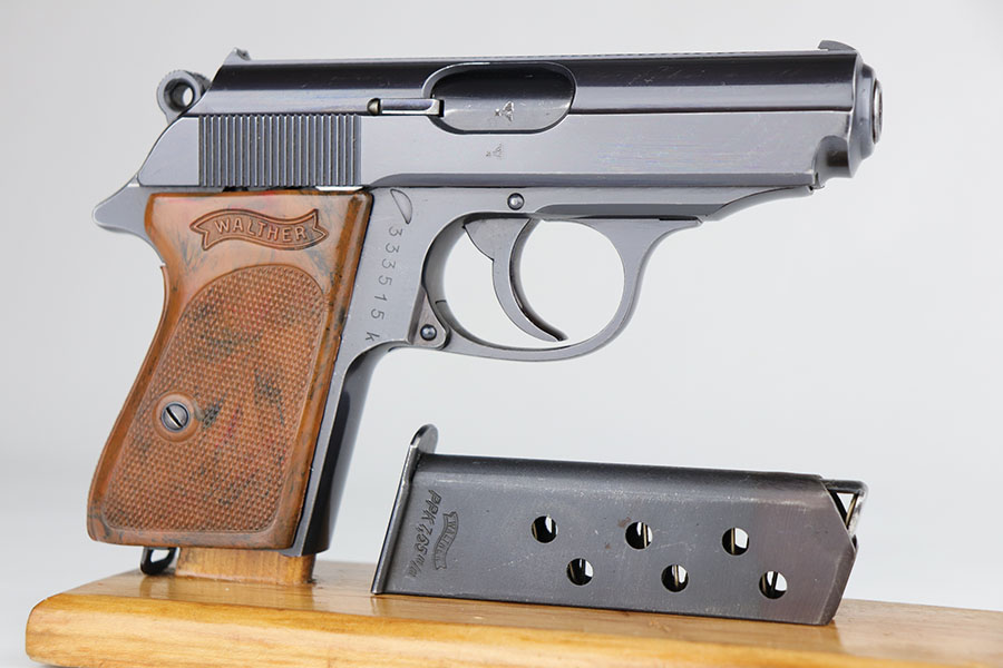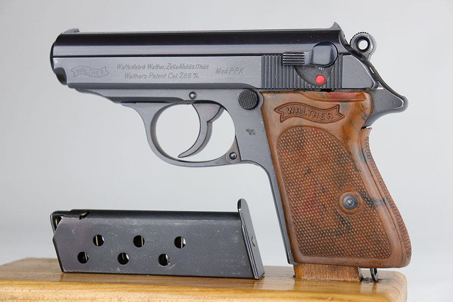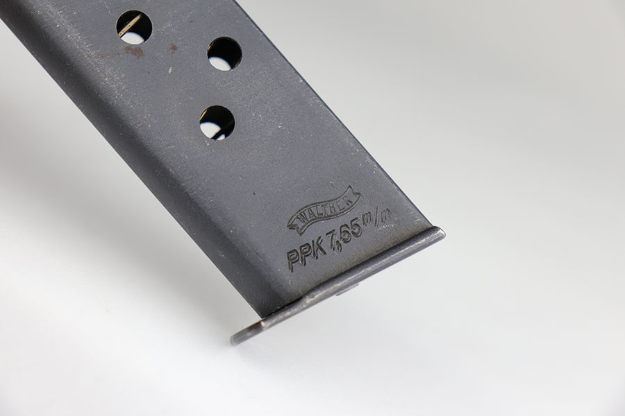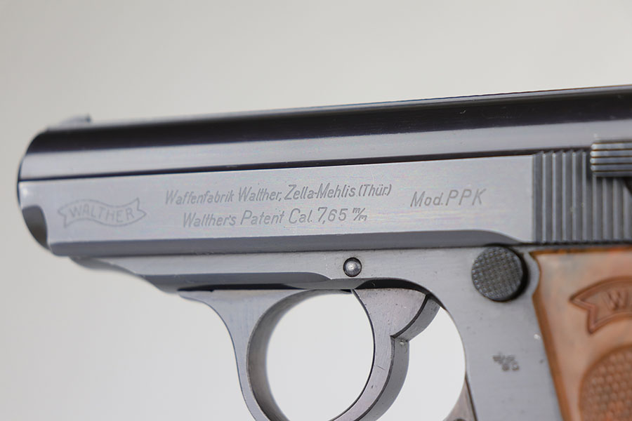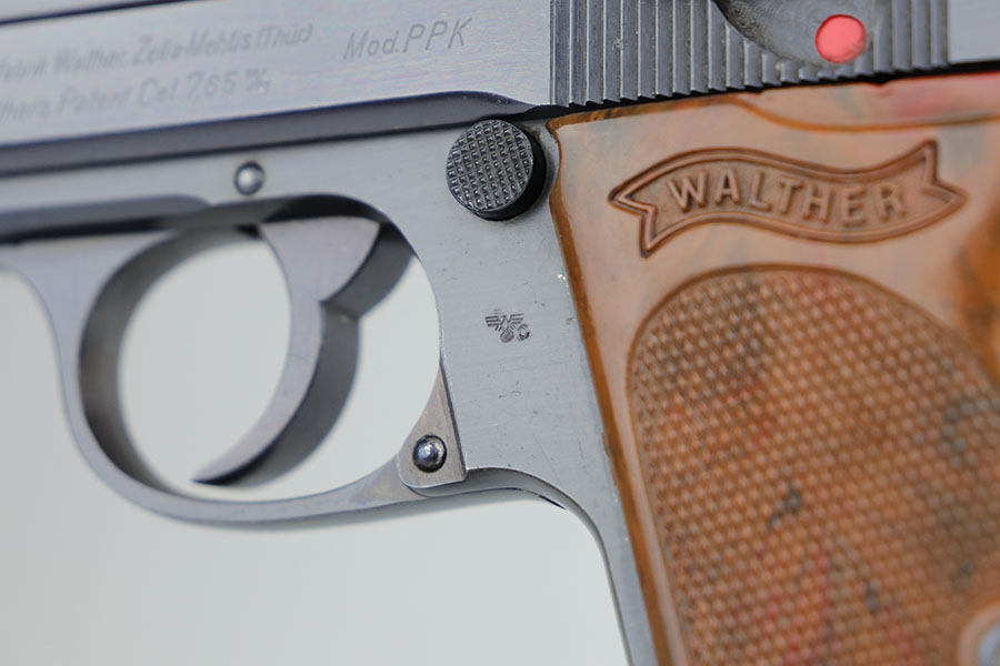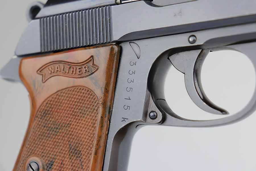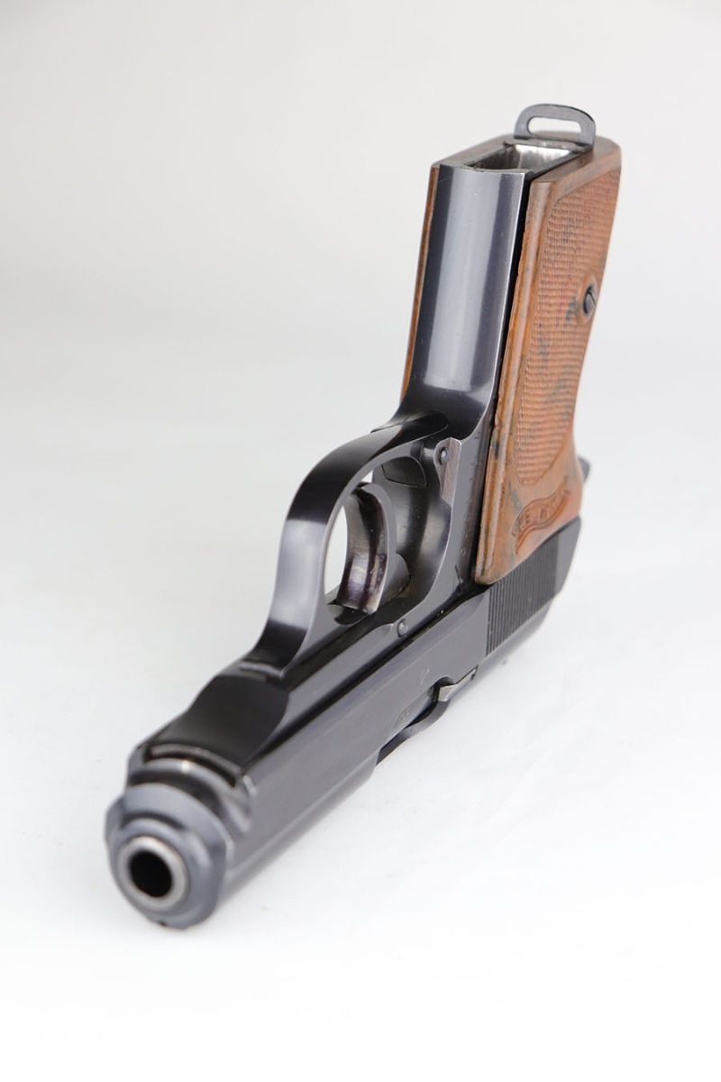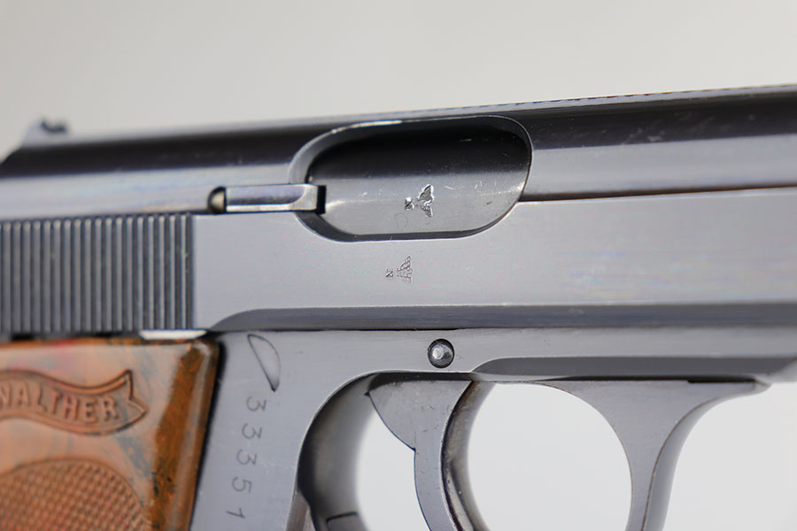 5/13/20 – This is a mint Police Walther PPK from 1941. It’s a fairly scarce variation with high-polish blue but Eagle/N proofs. It has 99% of the original, high-polish blue remaining with just a bit of muzzle wear on the left side. Mint bore, grip and magazine. Police Eagle/C proof on frame. Only about 150 digits off from the other Police PPK we listed today. Possible these two were manufactured on the same day and reunited all these years later!