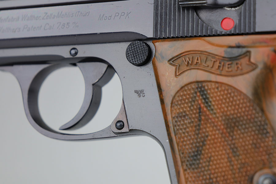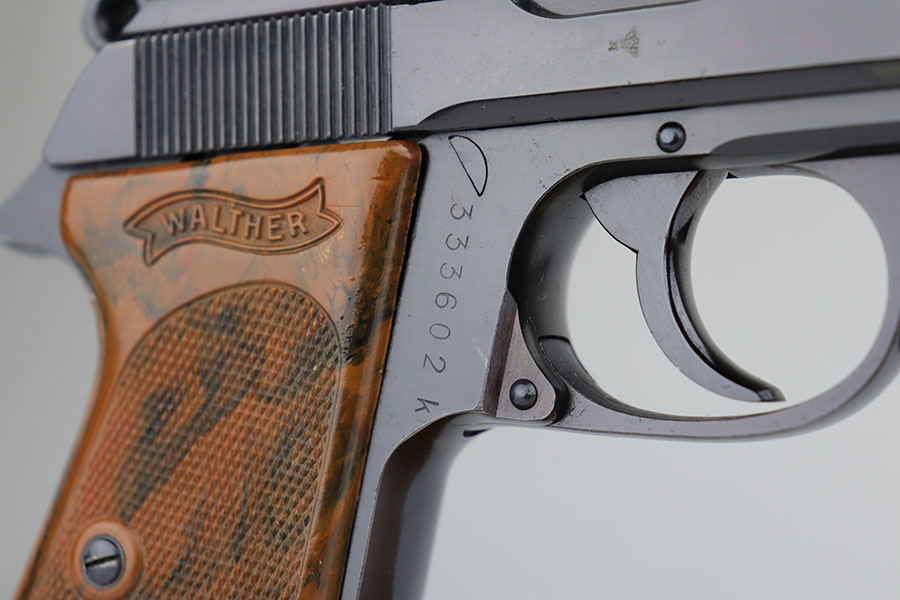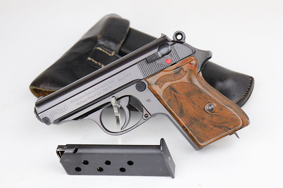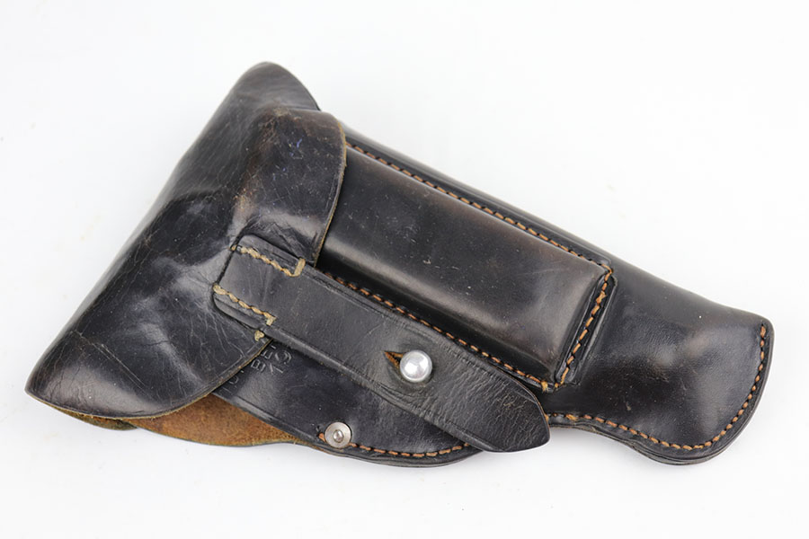4/24/20 – This is a mint Walther PPK rig from 1941 that was issued to the German police. It has 99% of the original, high-polish blue, showing just a bit of muzzle wear from being in the holster. It’s also a somewhat scarce variation in that it has high-polish blue but Eagle/N proofs. Mint bore and excellent grip. Rig includes two correct magazines in excellent condition. Police style holster is dated to 1941 and Otto Sindel maker marked.