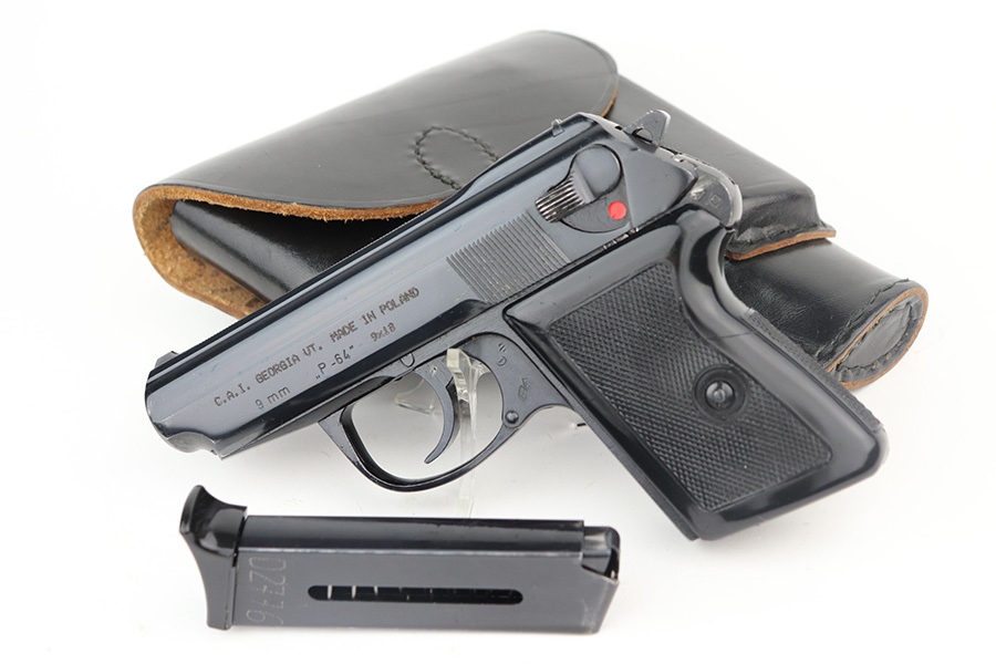 11/19/21 – This is a mint example of a Polish Radom P64 rig, manufactured in 1973. The rig comes with a mint period-correct holster, cleaning rod, and a matching hand-numbered finger-extension magazine. The gun is matching and has retained virtually all of its finish with just a hint of wear around the muzzle. Import mark on the left side of the slide. Excellent grips. The bore is factory-new.