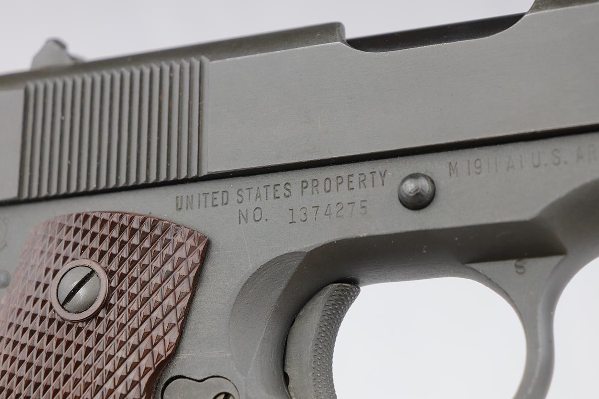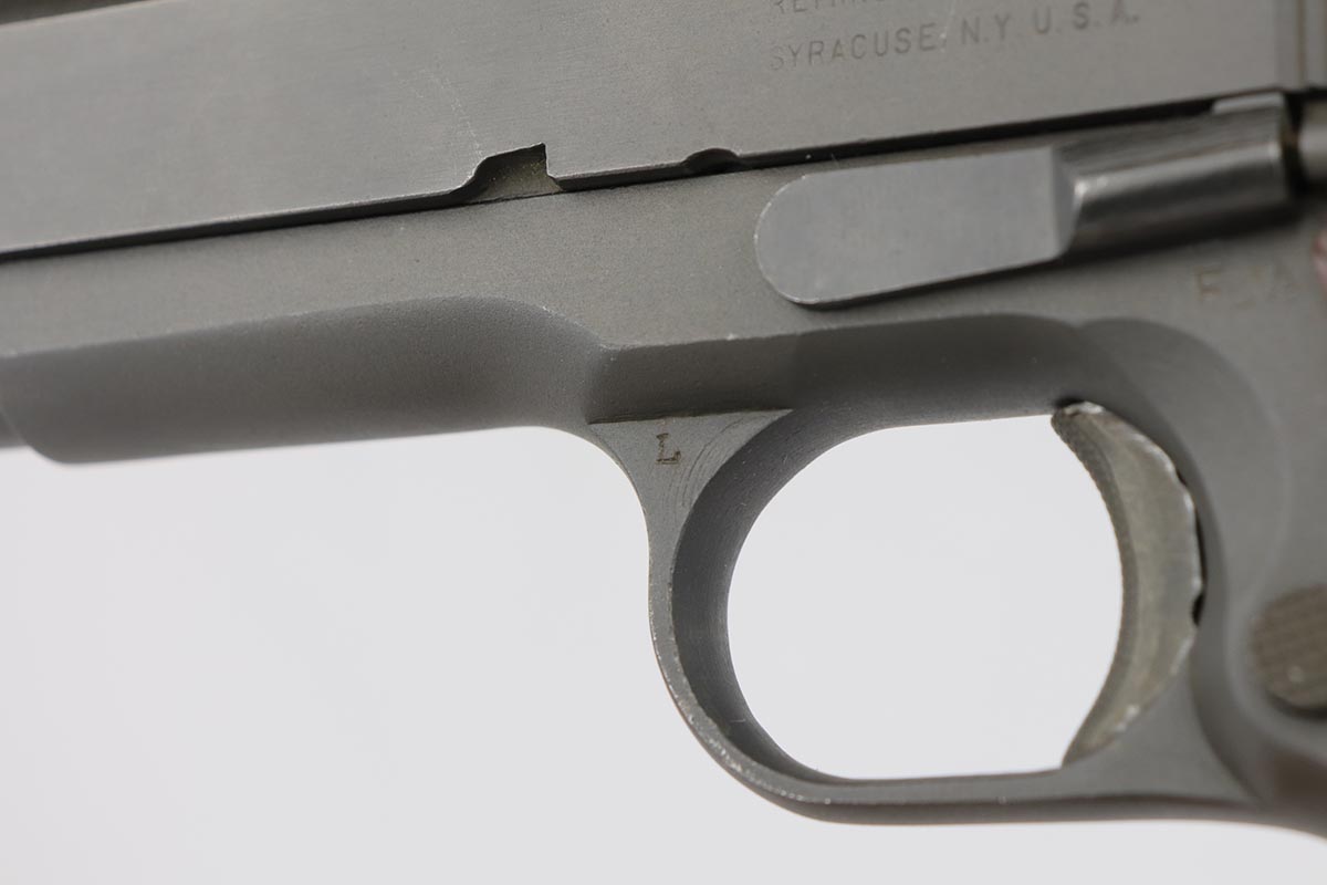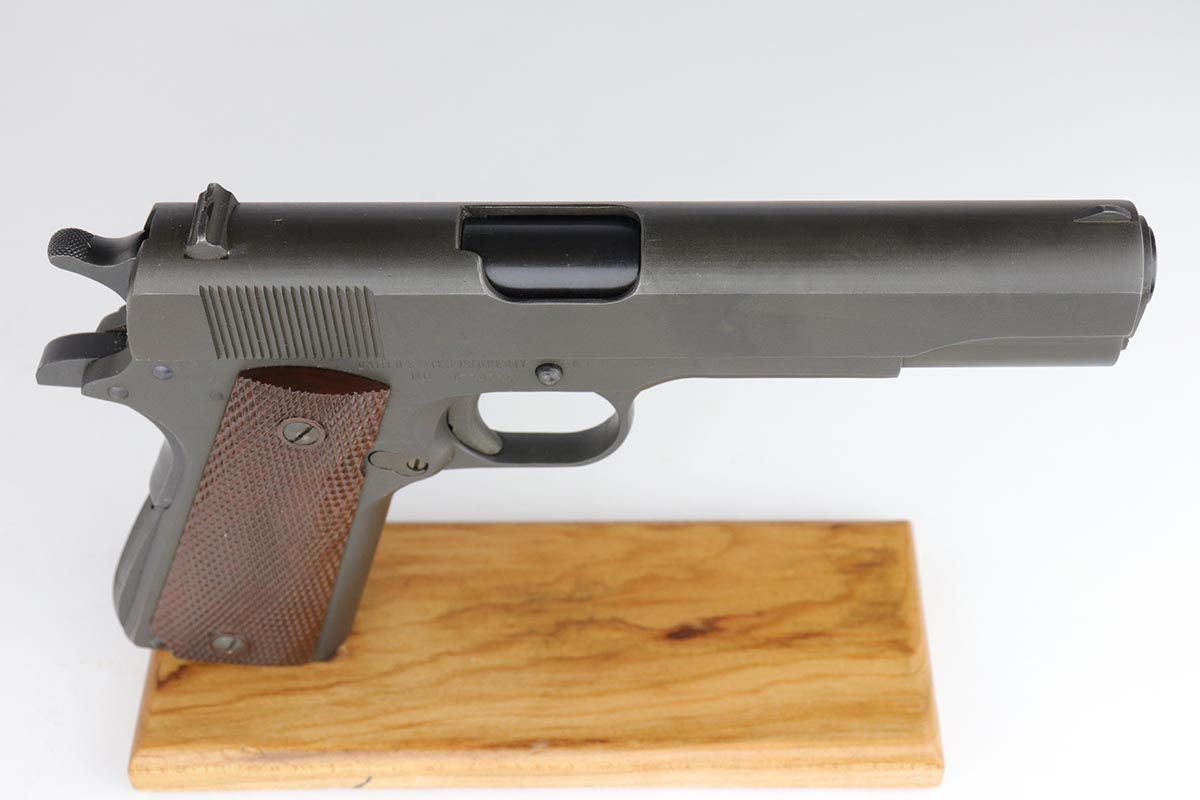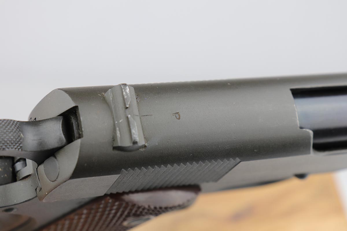 6/18/19 – This is a mint Remington M1911A1 that was manufactured in 1943 for the US Army. It retains 99+% original parkerized finish, with just a hint of muzzle wear. Proper ‘HS’ barrel and ‘S’ marked magazine. Minty bore and excellent grips. This one would be nearly impossible to upgrade.