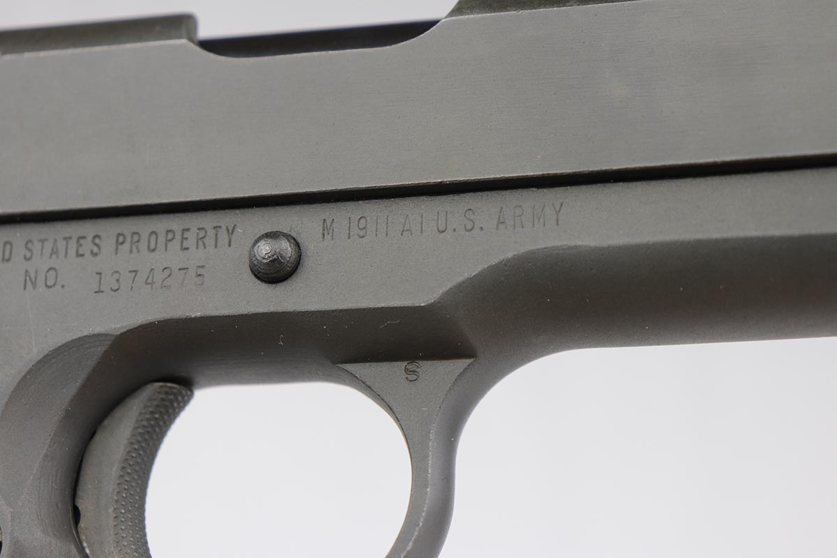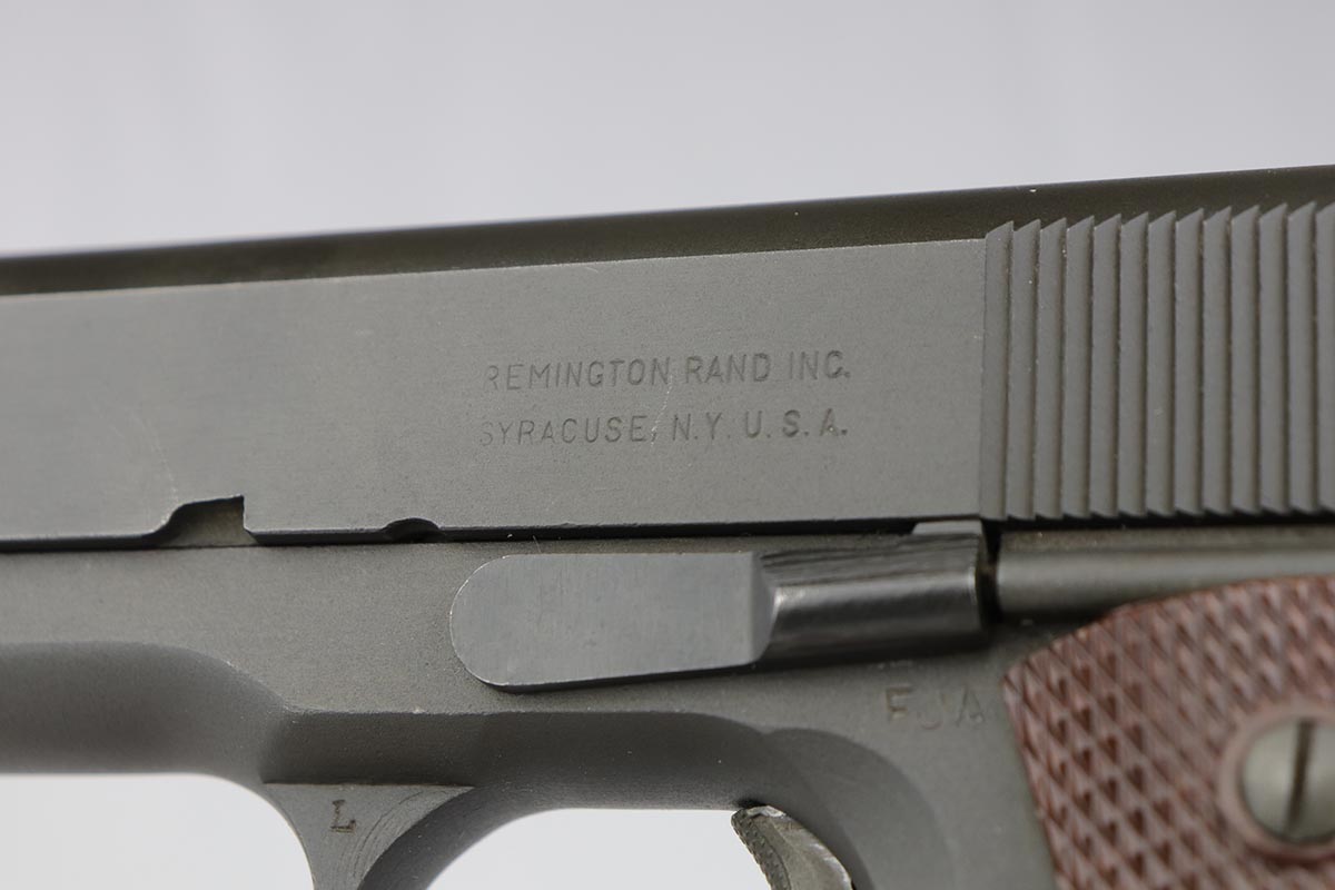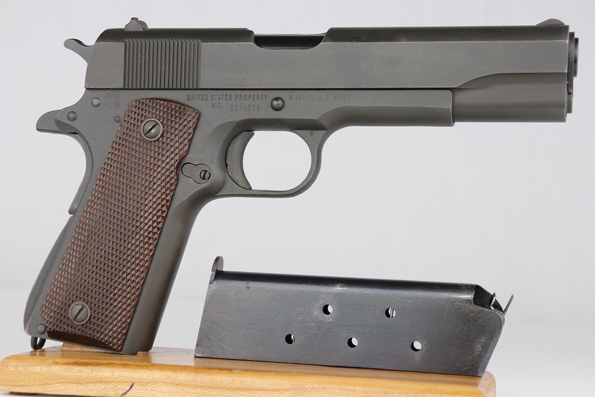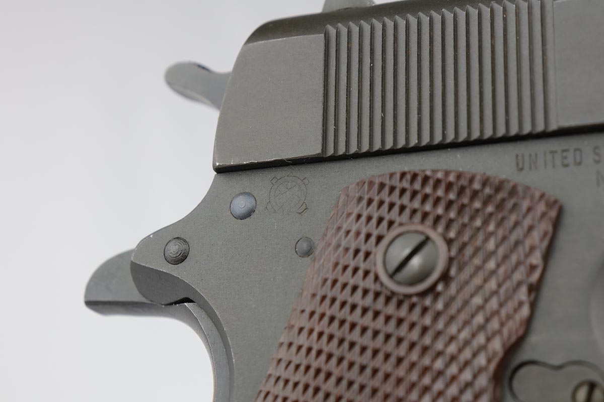 6/18/19 – This is a mint Remington M1911A1 that was manufactured in 1943 for the US Army. It retains 99+% original parkerized finish, with just a hint of muzzle wear. Proper ‘HS’ barrel and ‘S’ marked magazine. Minty bore and excellent grips. This one would be nearly impossible to upgrade.
