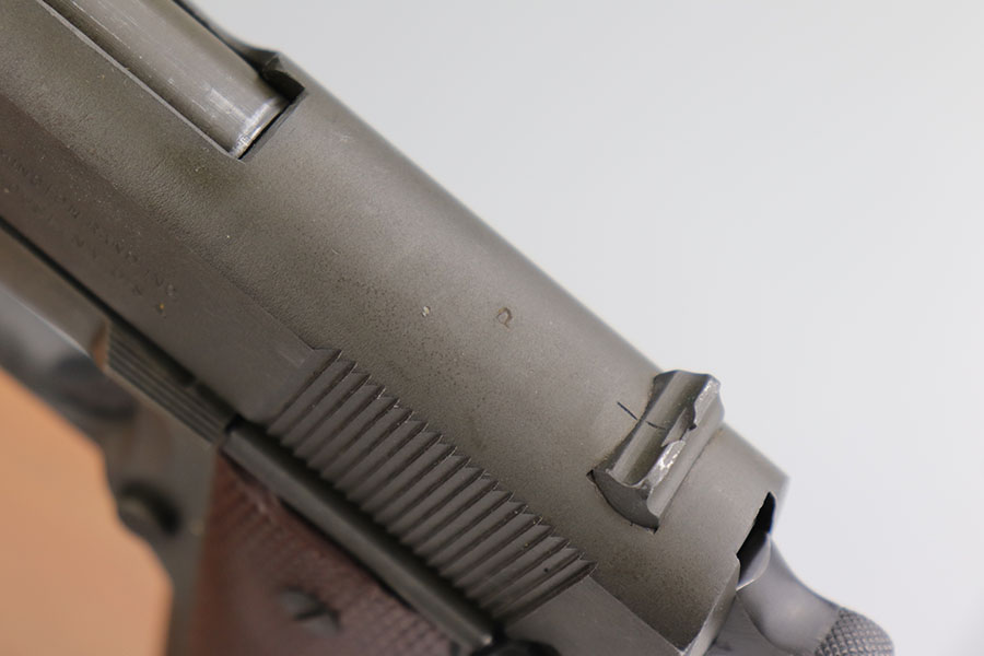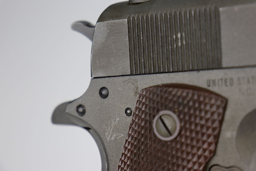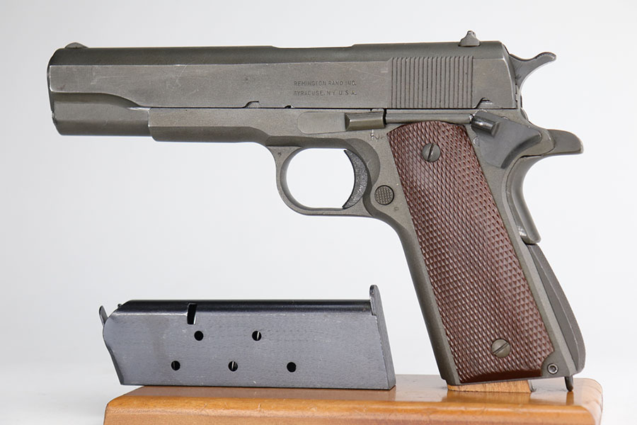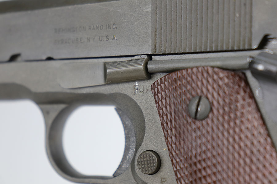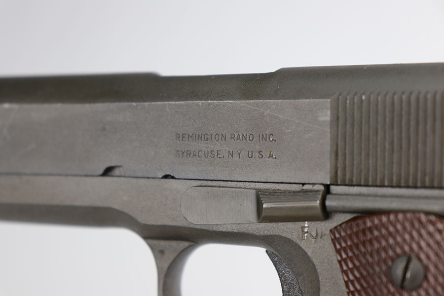 12/24/20 – This is a mint Remington Rand 1911A1 from late in 1944. Almost no wear to mention, just a few very minor scuffs here or there. Sharp inspectors marks. Minty HS barrel with excellent bore. ‘L’ marked magazine.