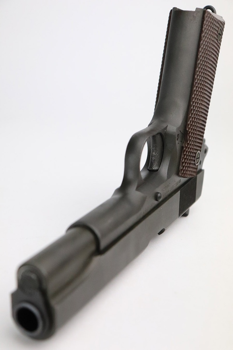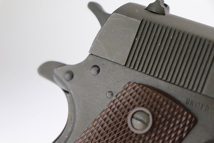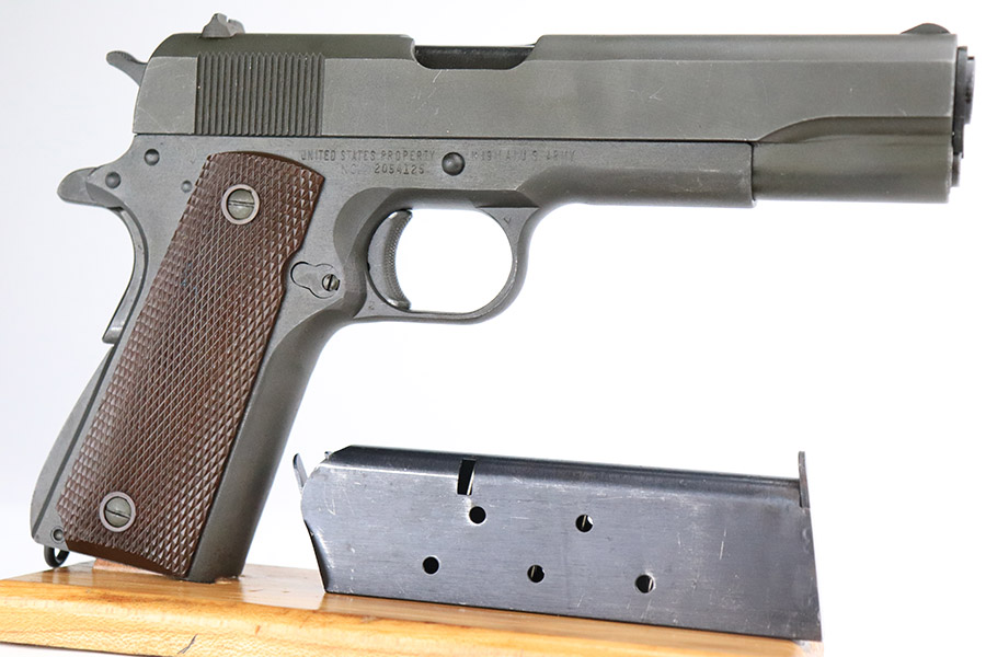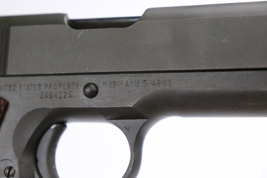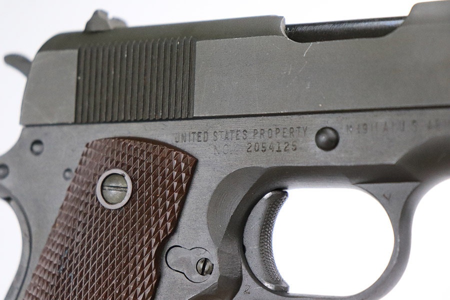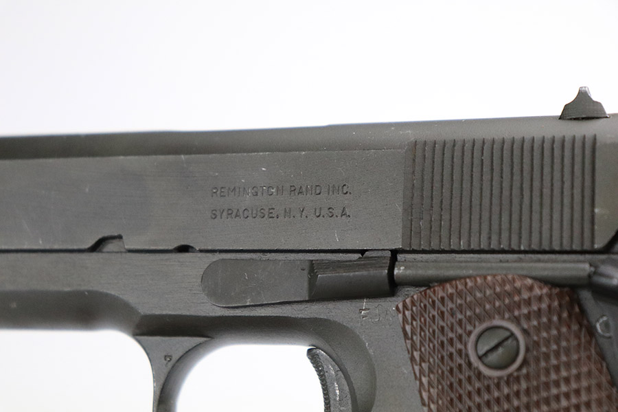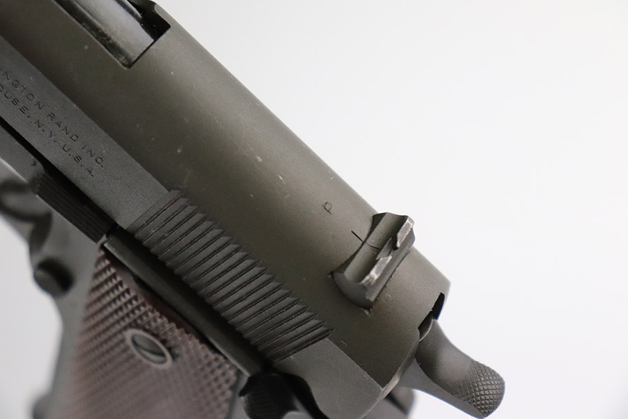 10/21/22 – This is a mint Remington Rand 1911A1 from late 1944. All original and correct with a Flannery barrel. It has almost no wear to mention and is about as nice an example as we’ve offered. Mint bore, sharply checkered grips. Risdon magazine.