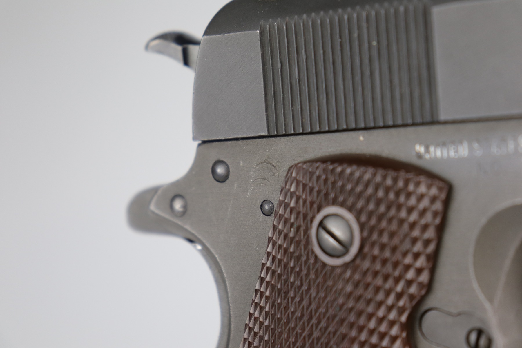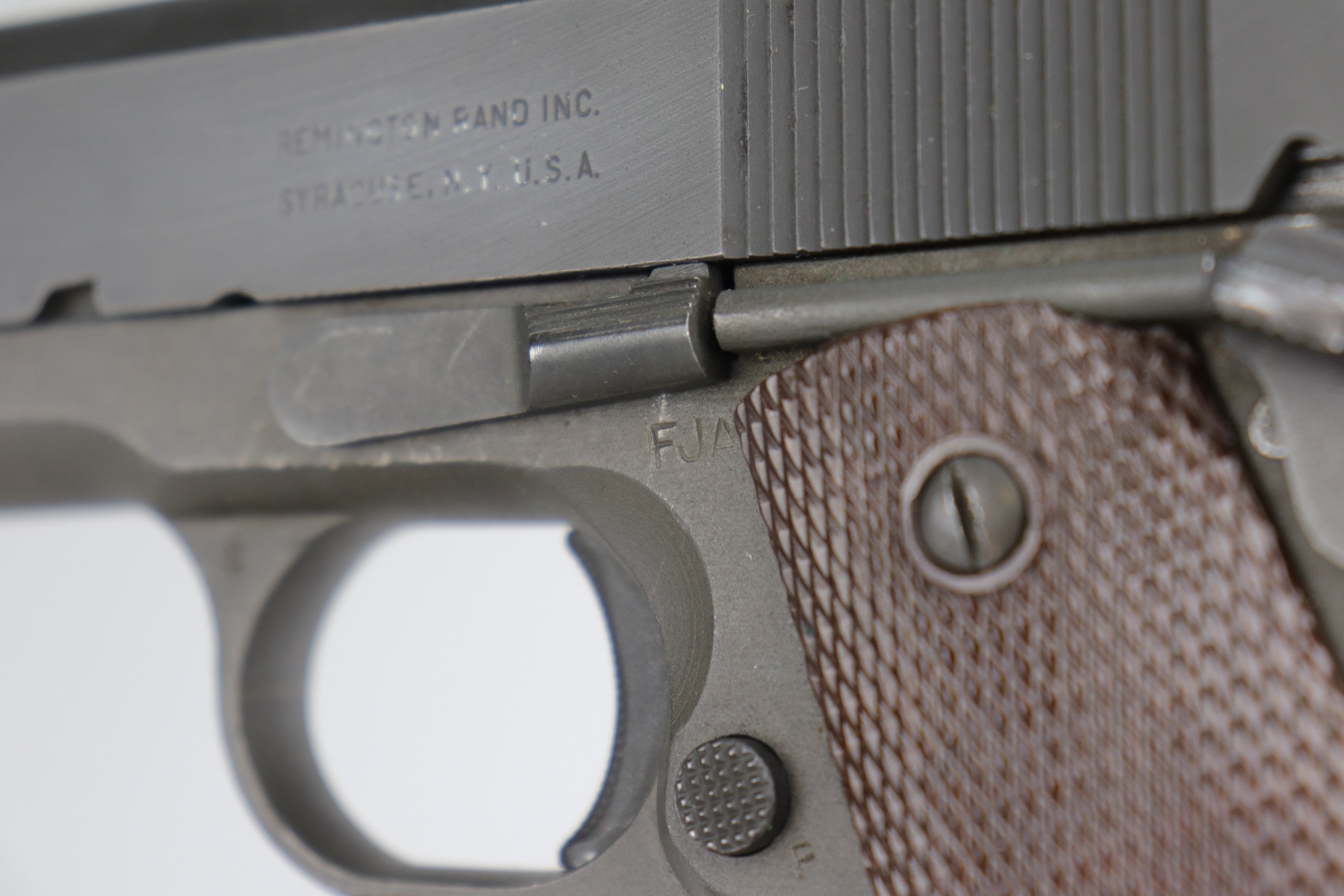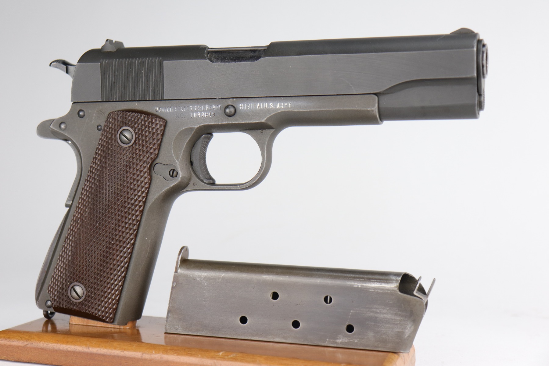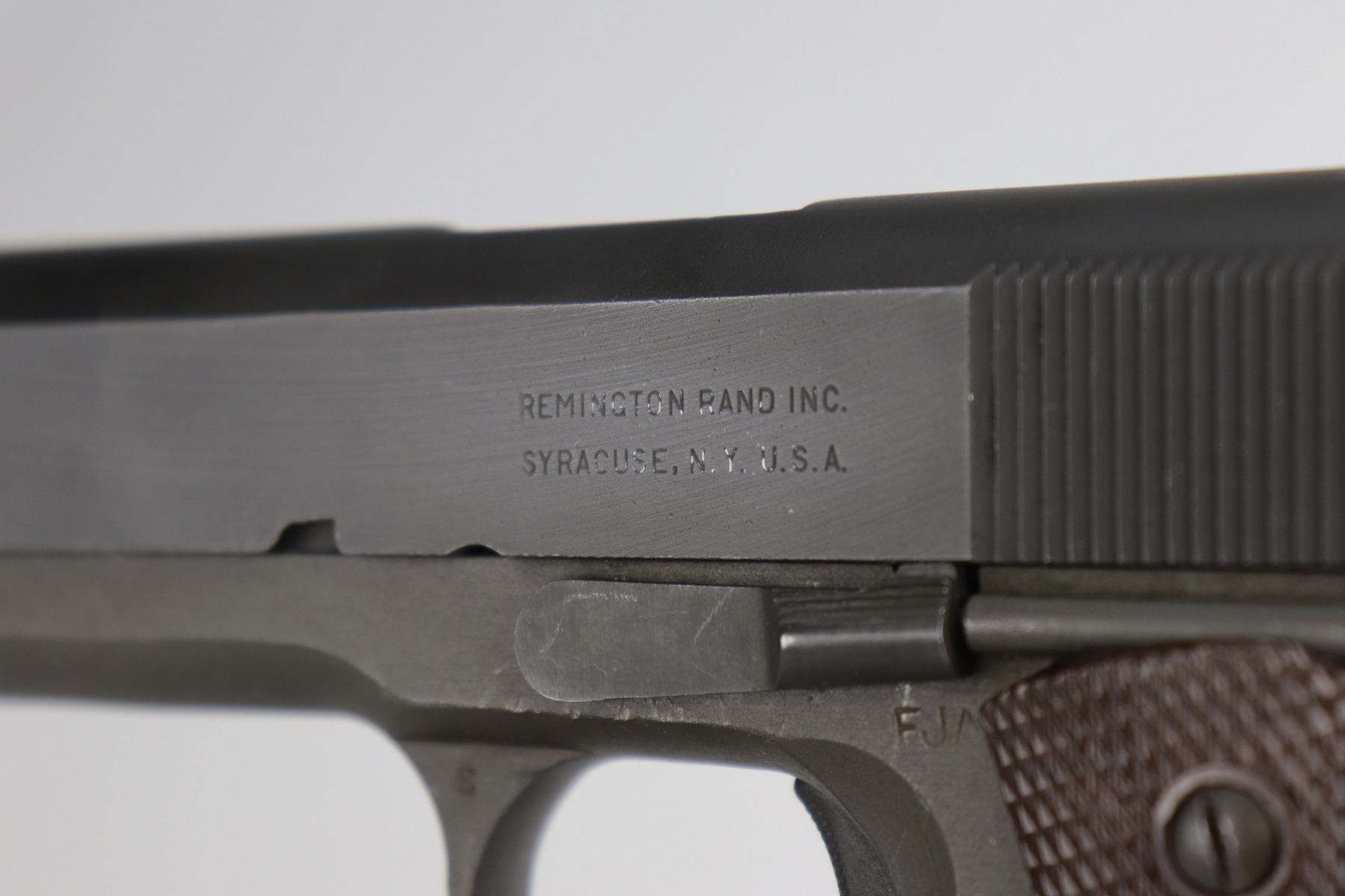 1/4/21 – This is a mint example of a Remington Rand Model 1911A1 issued to the US Military in 1944. It is all correct and has the proper cross-canon military cartouche on the tang. It is in mint condition. There is just one small scratch on the top of the slide and one on the right side of the slide. Comes with excellent grips and a proper magazine. The bore is minty.