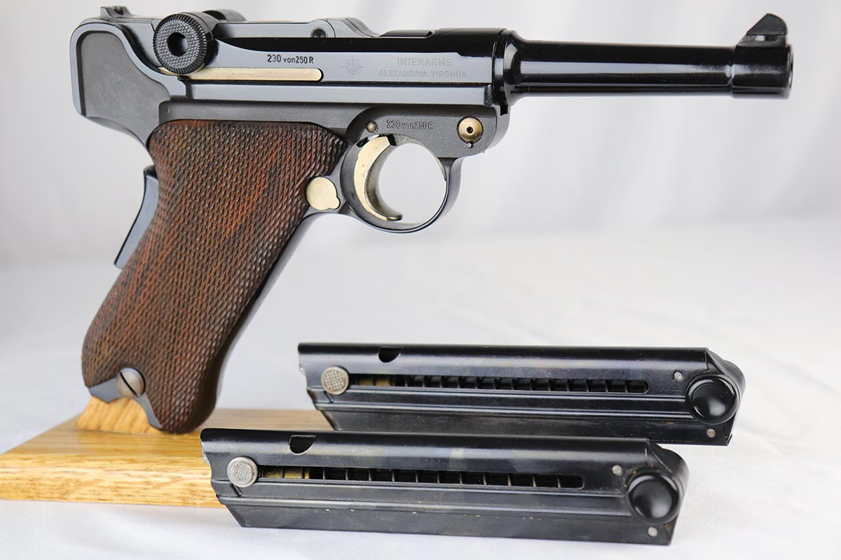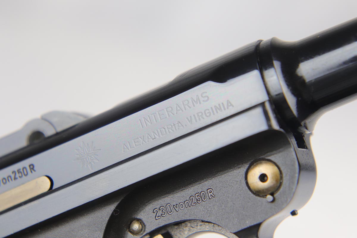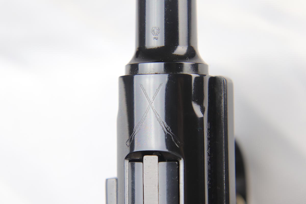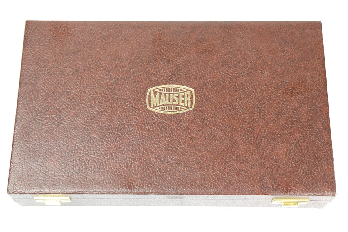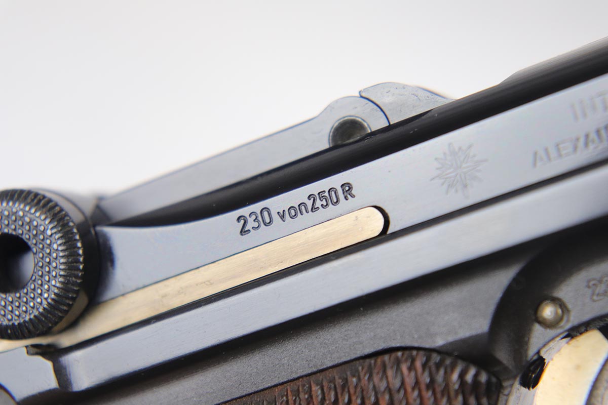4/27/18 – This is one of the rarest of the 1970s Mauser made lugers – a Russian commemorative luger with crossed Nagant rifles on the chamber. The gun is as new and comes with a nice Mauser marked presentation case with all the accessories. The gun is gold engraved on the left side, designating it as a “Russian model”. Only 250 of these sets were made to commemorate the rare Russian model, made in very limited numbers in the early 1900s. The metal finish and the blueing are impressive, rivaling the pre-war guns. A superb limited production presentation set.
