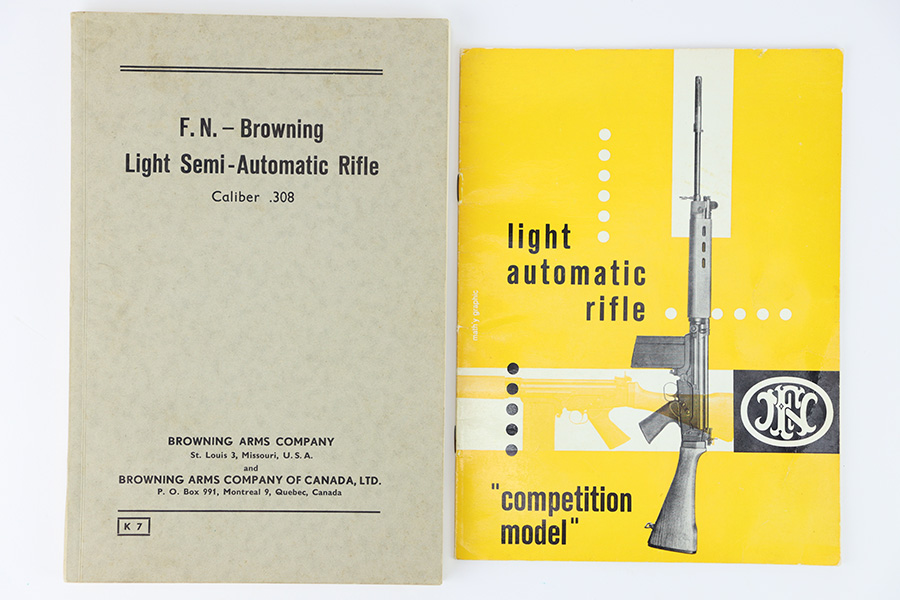11/13/23 – This is an original FN FAL, chambered for .308 MATCH. It’s in mint condition and appears to be unfired. It has a 22 inch barrel with brake and fixed stock. This is a preban example, and one of the few made in Belgium and later allowed into the country via Steyr import. No wear to note, and the bore looks unfired. Smooth mechanics. Comes with two manuals.