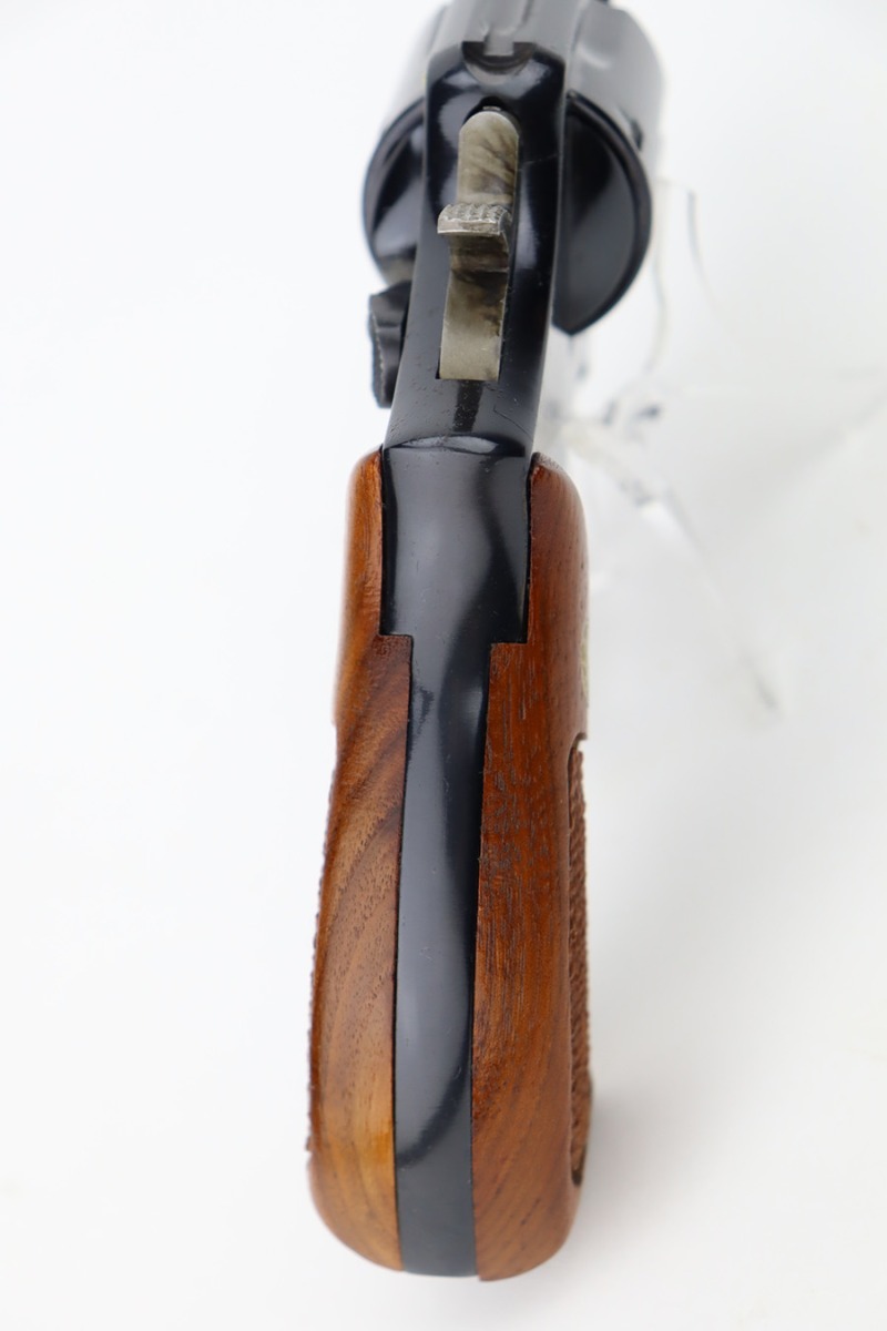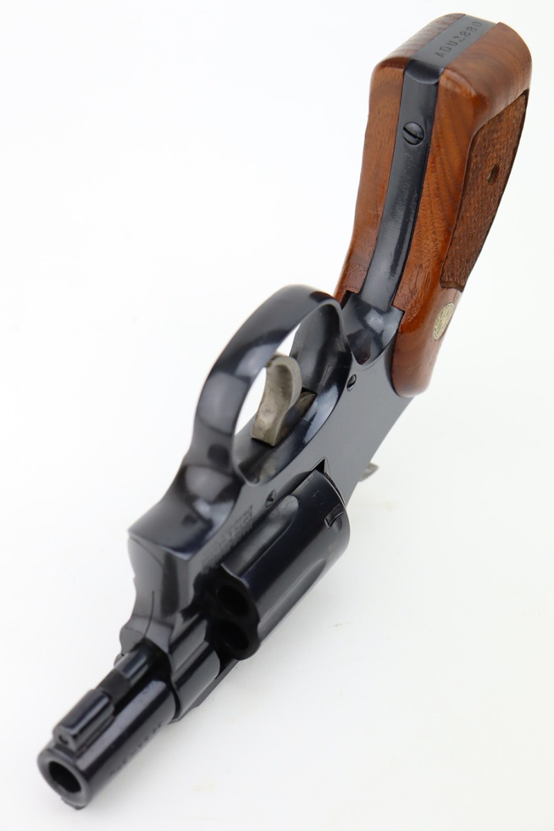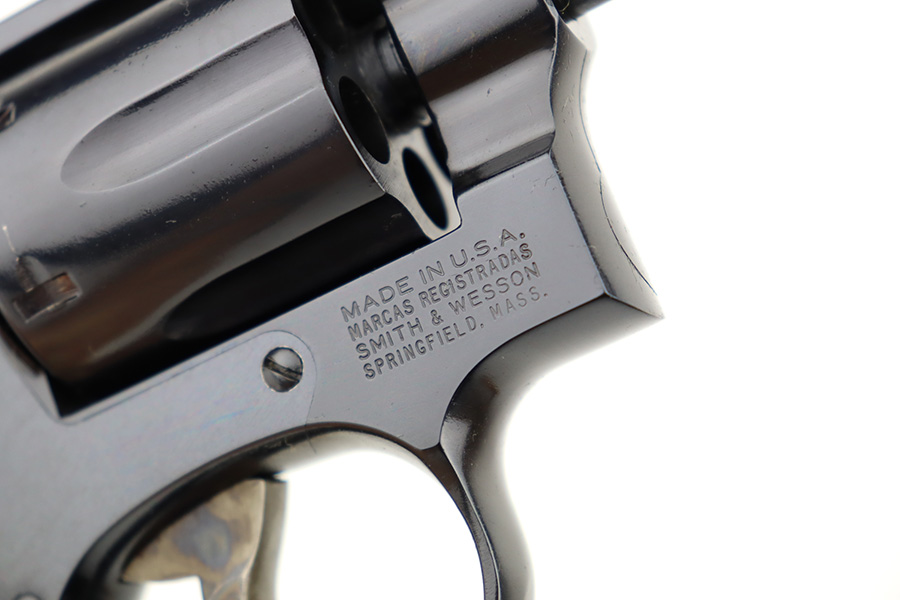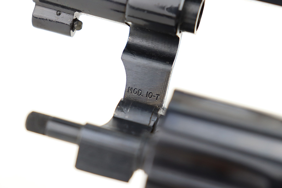 12/26/23 – This is a mint Smith & Wesson Model 10-7 Revolver, chambered in .38 Special with a 2″ barrel. It has retained virtually all of its high polish finish with just the slightest hint of a roll mark on the cylinder. Fitted with beautiful checkered wood grips. Like-new bore. Smooth action.