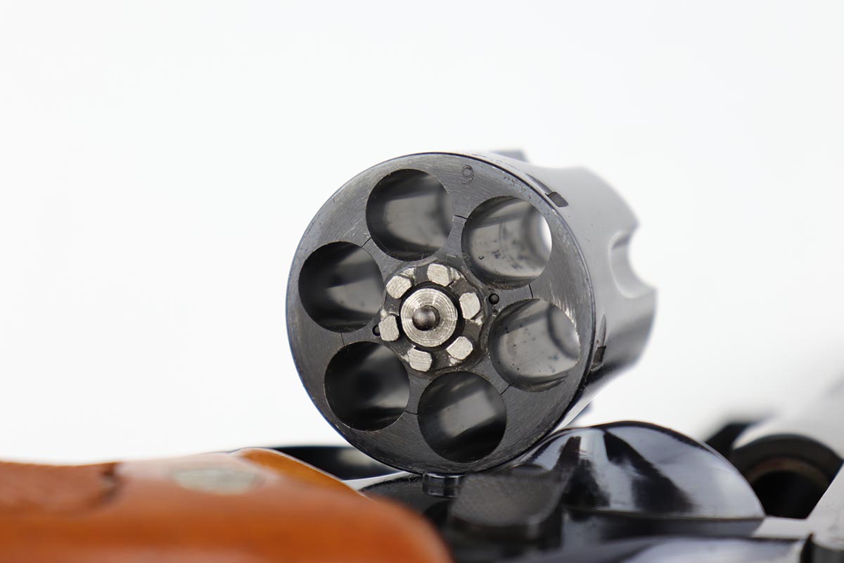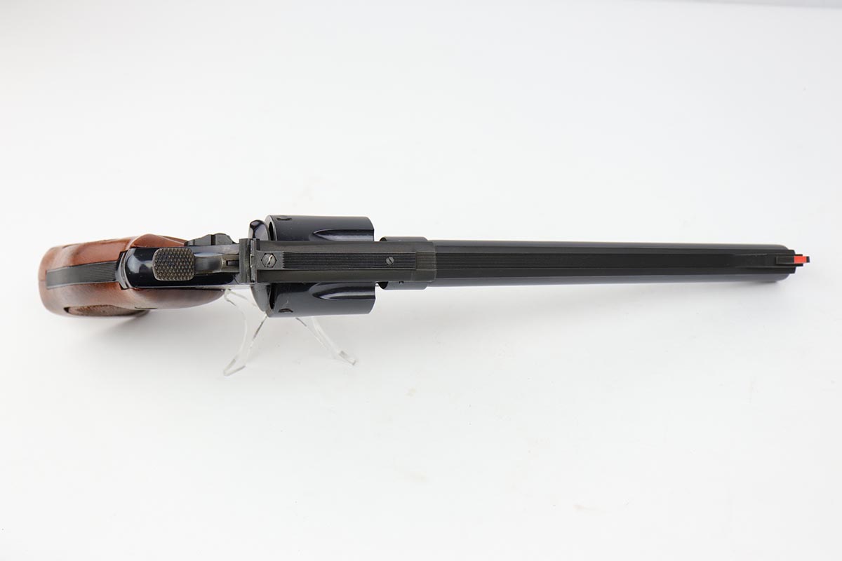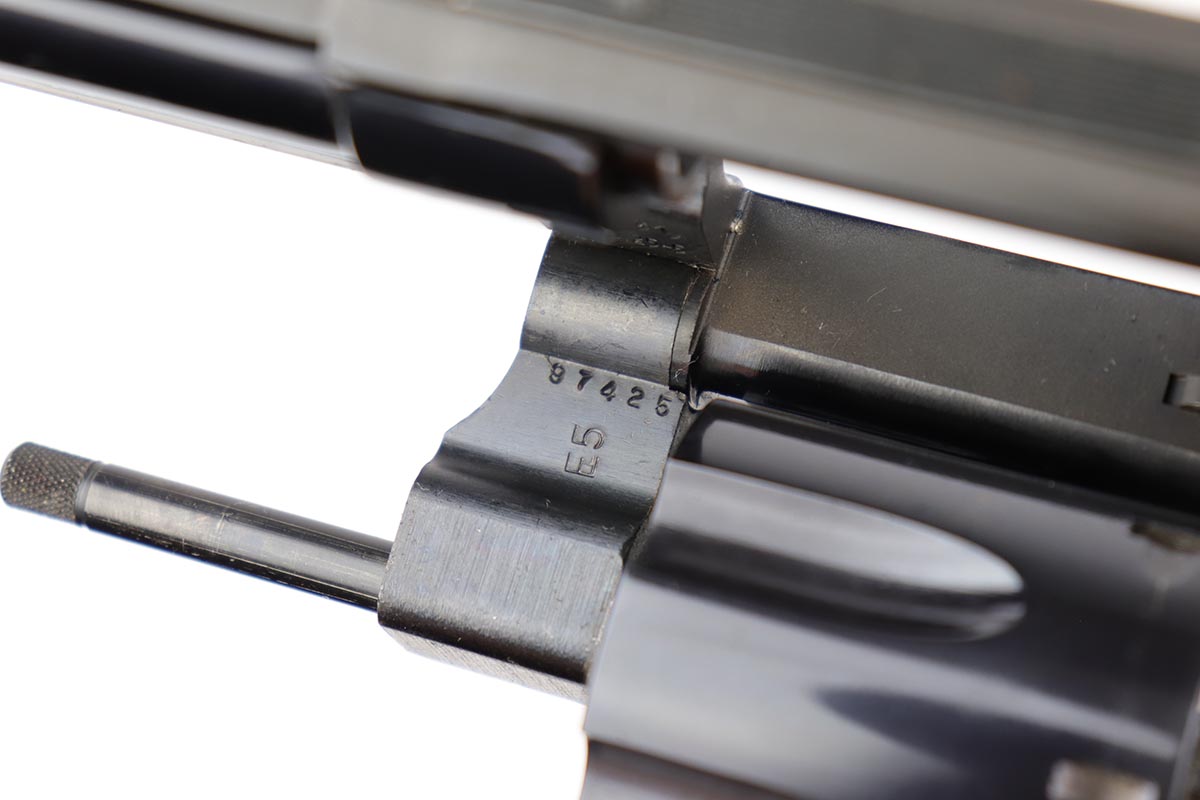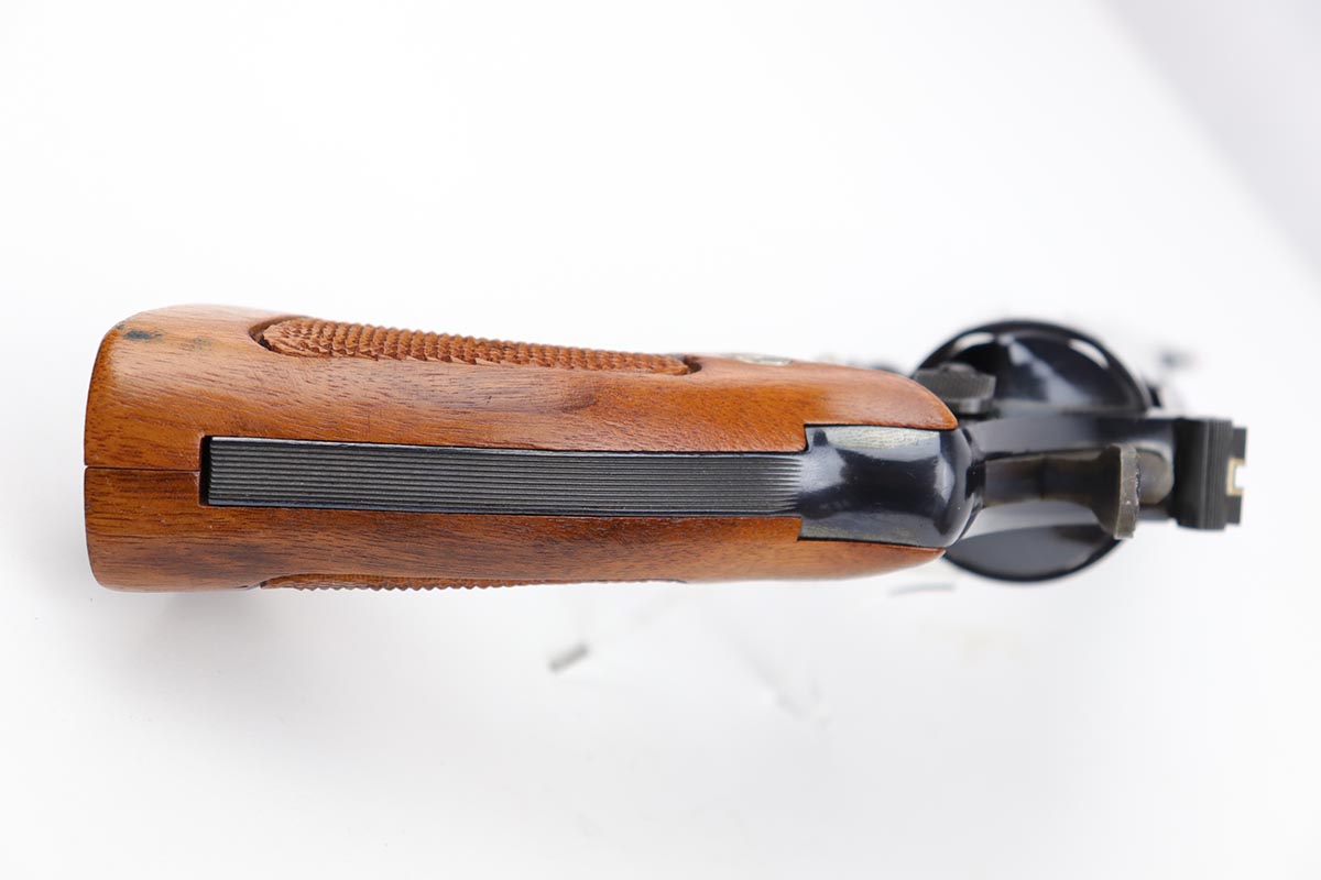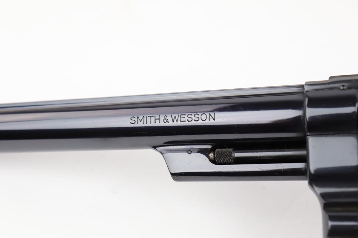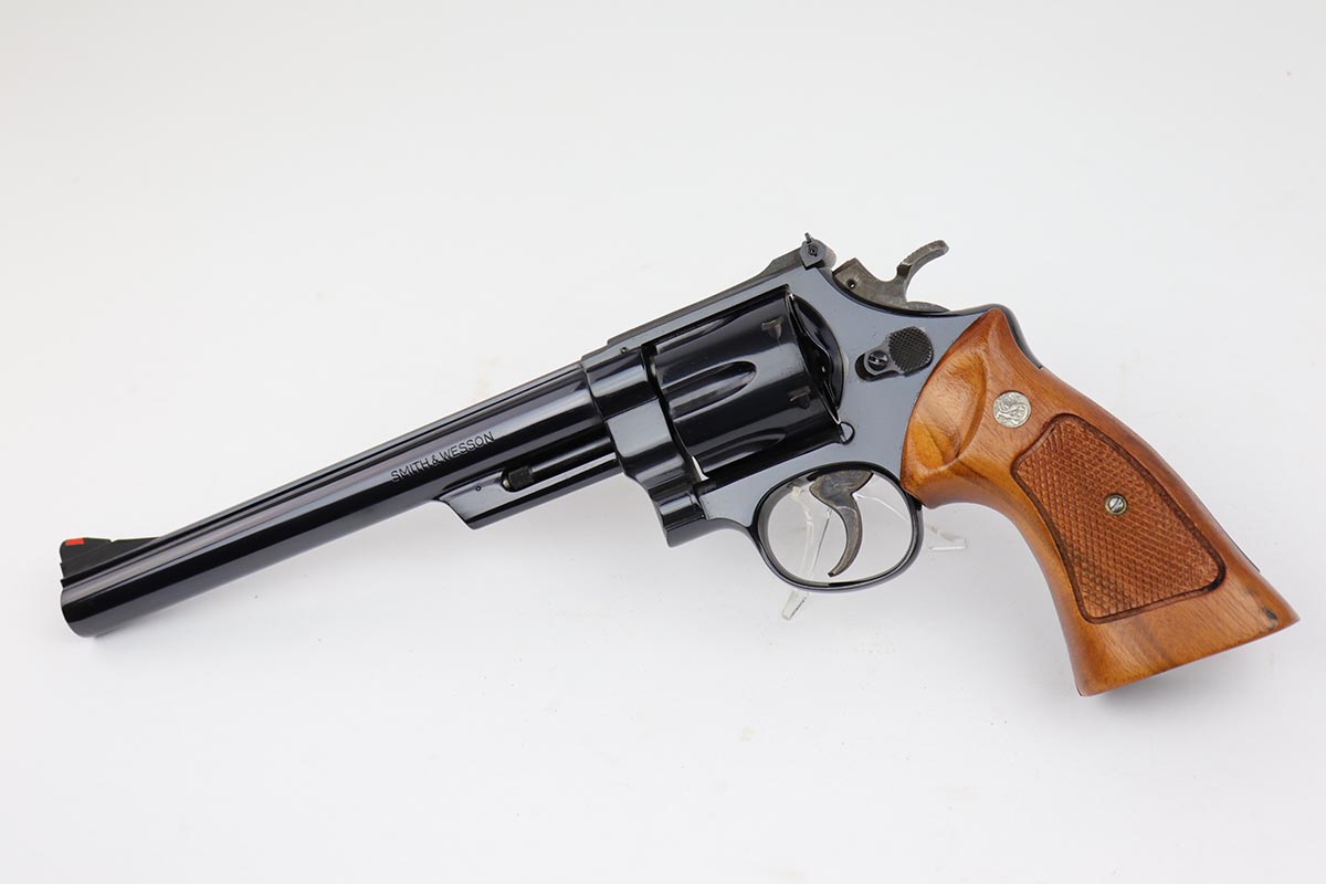 5/9/19 – This is a mint example of a Smith & Wesson model 25-5 revolver, chambered in .45 Colt, with 8 & 3/8 inch barrel. The revolver shows virtually no finish loss, with just a hint of roll mark on the cylinder. Perfect mechanics, bore and grips. Very nice case hardening on hammer and trigger. The revolver is accompanied by a very nice, wooden case and spare cleaning kit. This barrel length was used on later manufactured revolvers, so likely dates to the 1980s and requires an FFL.