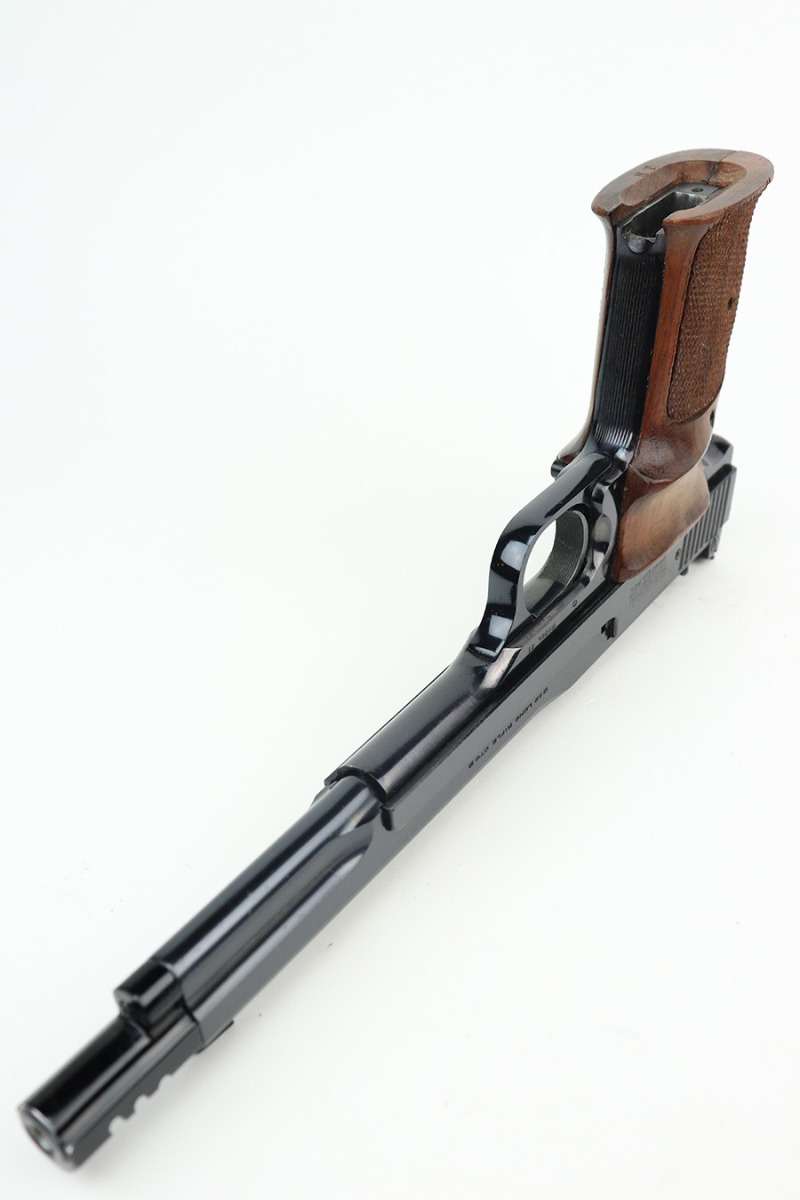 5/24/22 – This is a mint Smith & Wesson Model 41 that was made in the 1960’s and chambered in .22 LR. 7 inch barrel. All components are mint and original, including the bore. Beautiful target style grips with left side thumb rest. The current configuration also has a muzzle brake installed. Comes with two proper magazines.