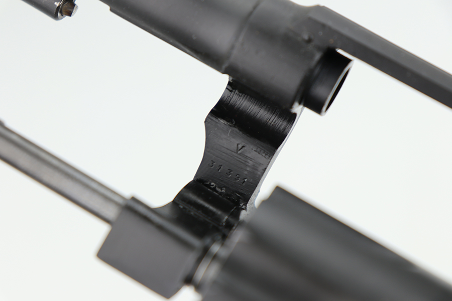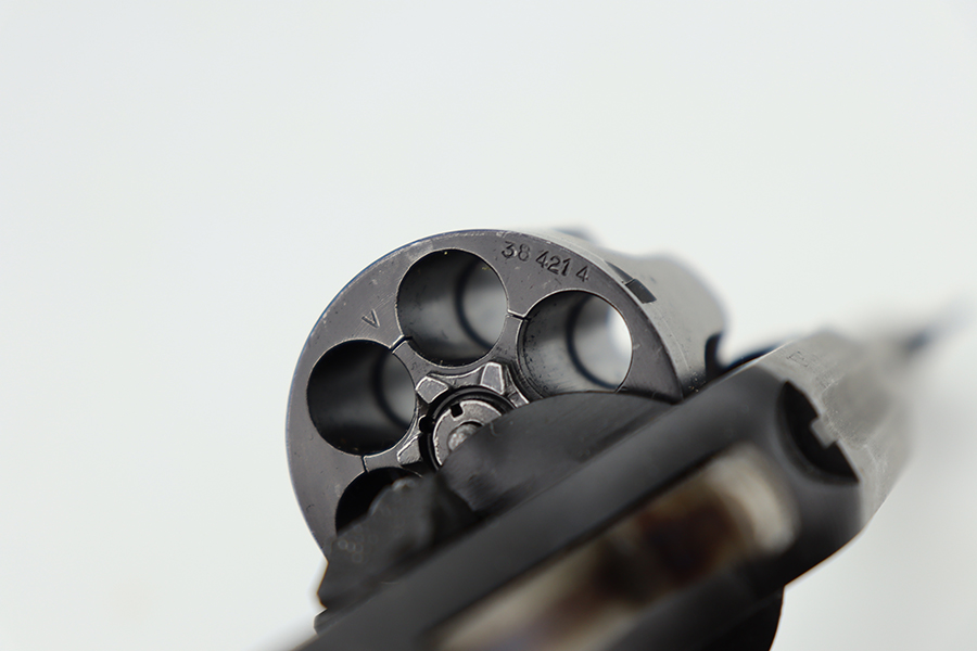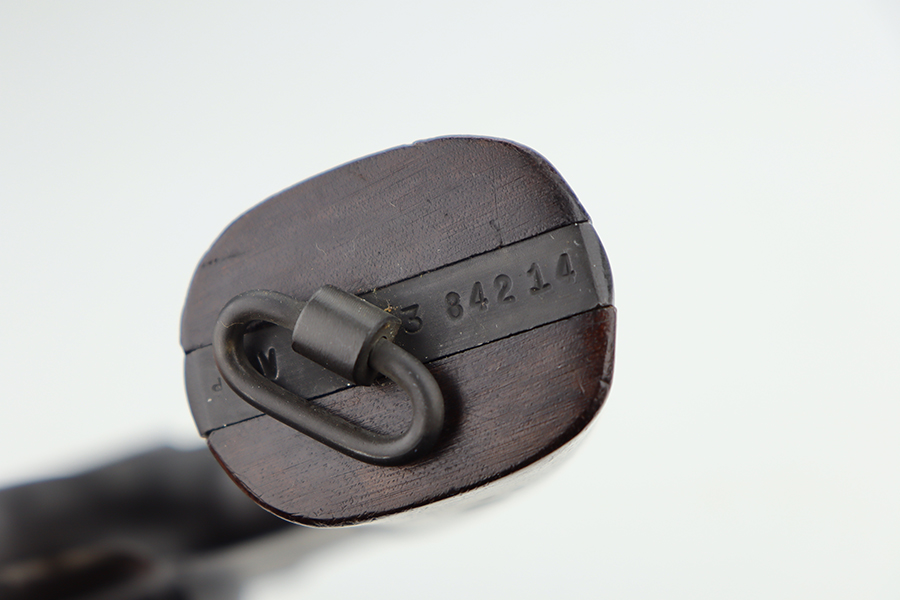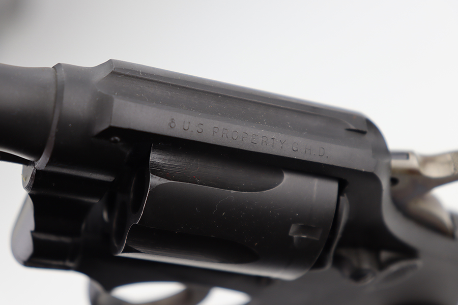5/30/24 – This is a mint example of a Smith & Wesson Victory Revolver from WW2. Chambered in .38 S&W. All matching with “US PROPERTY G.H.D.” with a flaming bomb on the top strap. The gun is in un-issued condition with no signs of wear. Fitted with period-correct wood grips – the right panel is numbered but mismatched. Mint bore.